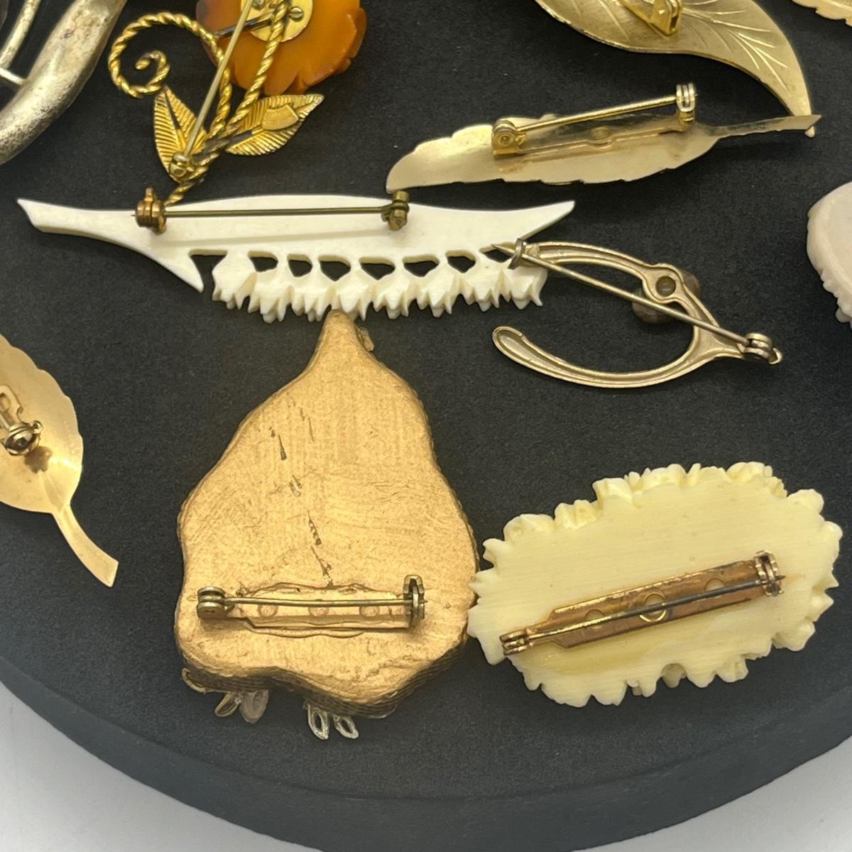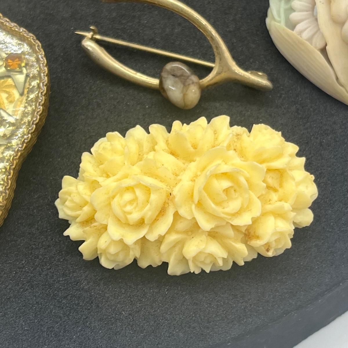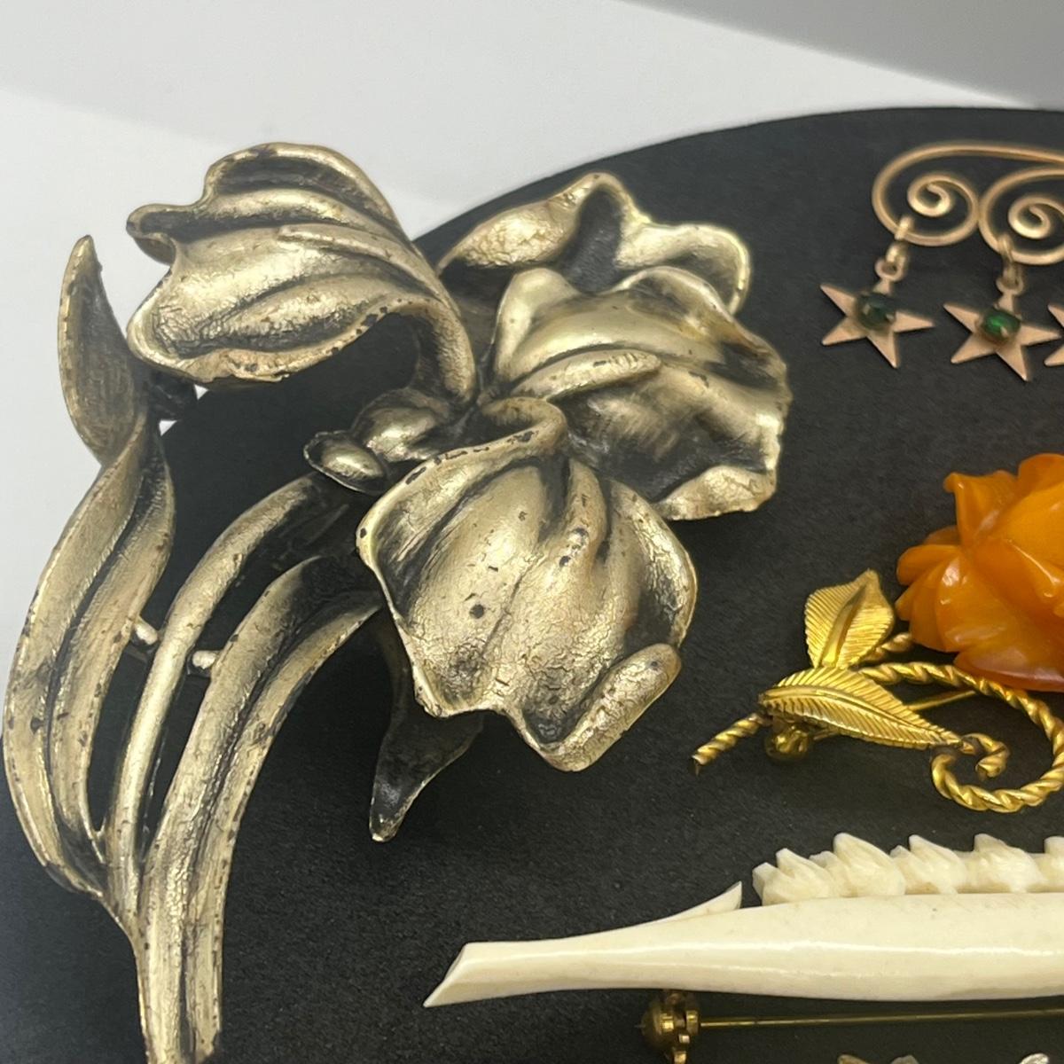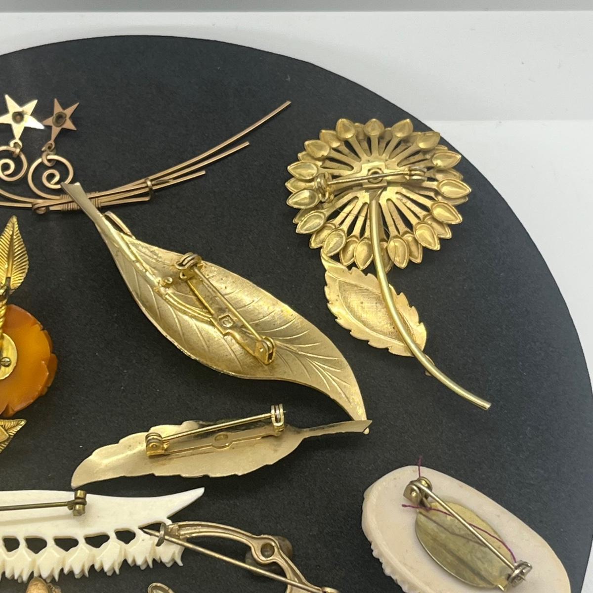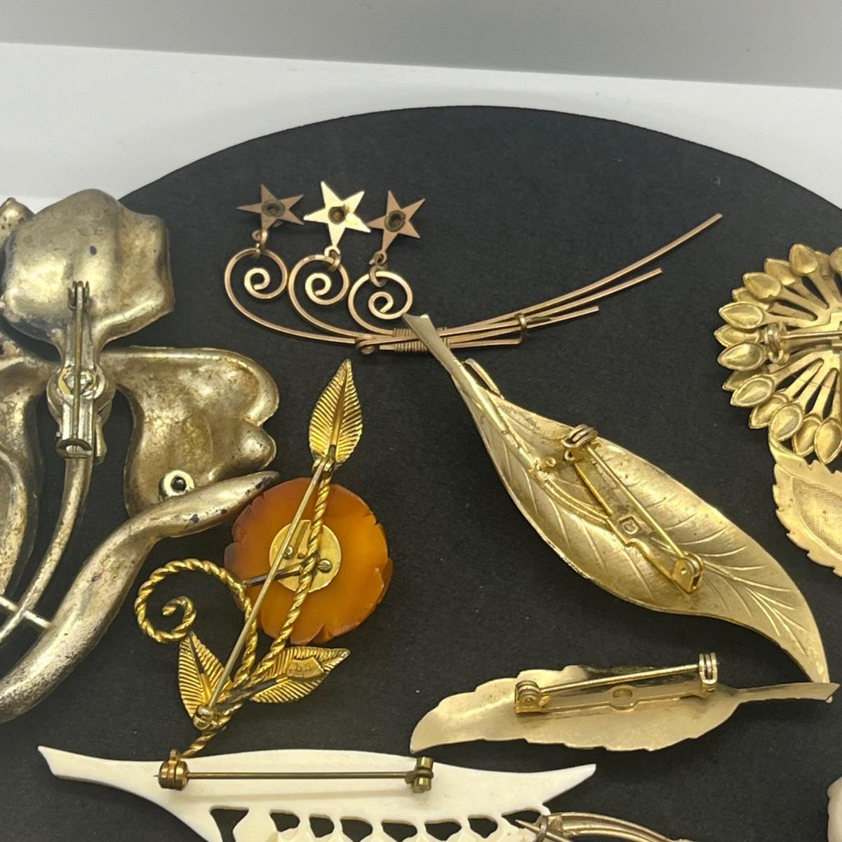 LOT 159J: 12K Gold Filled Rose Pin, Opal Leaf Pin, Wirework Pin and More!