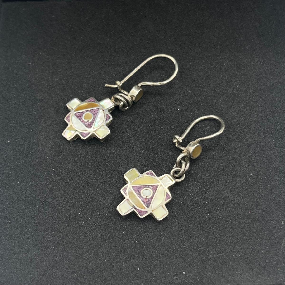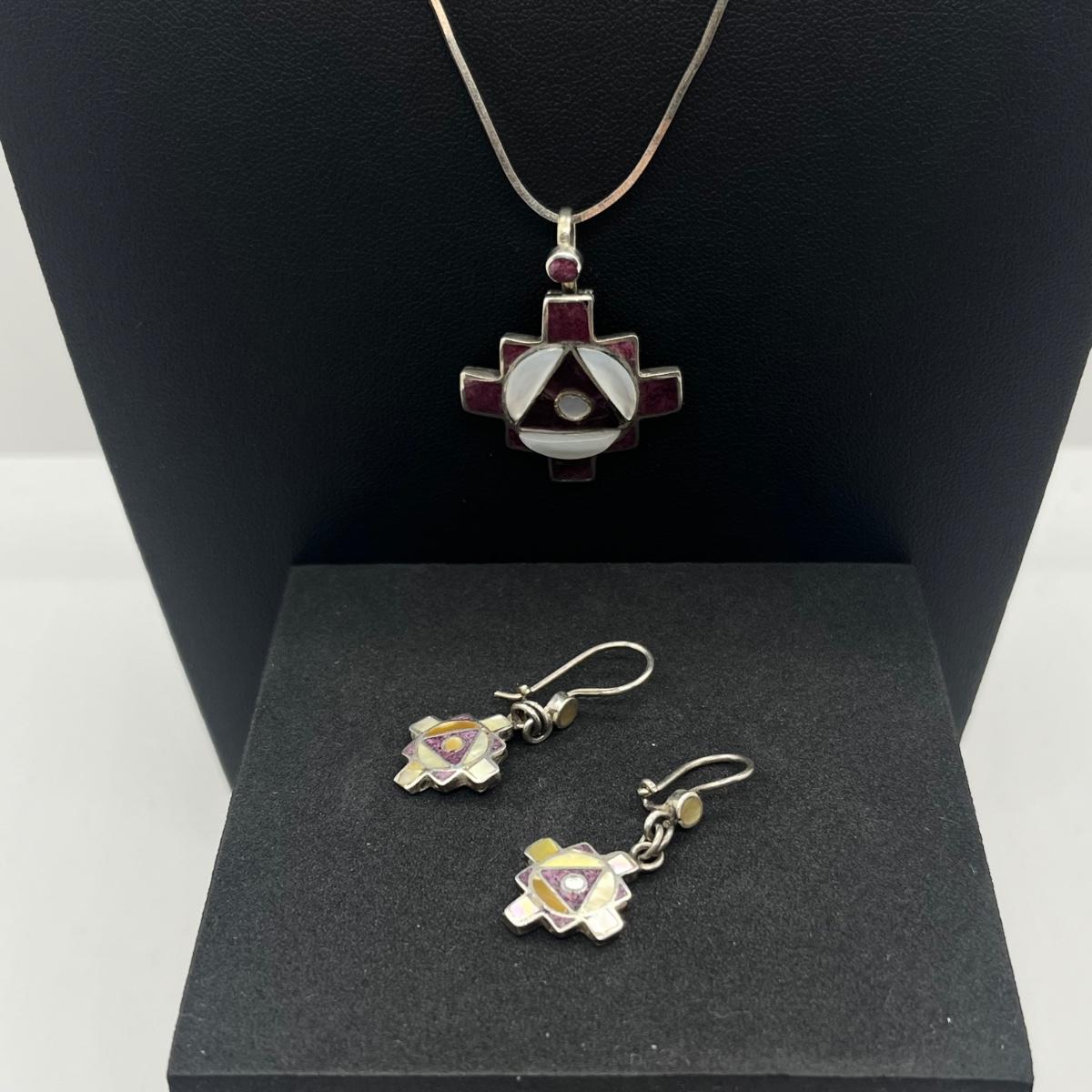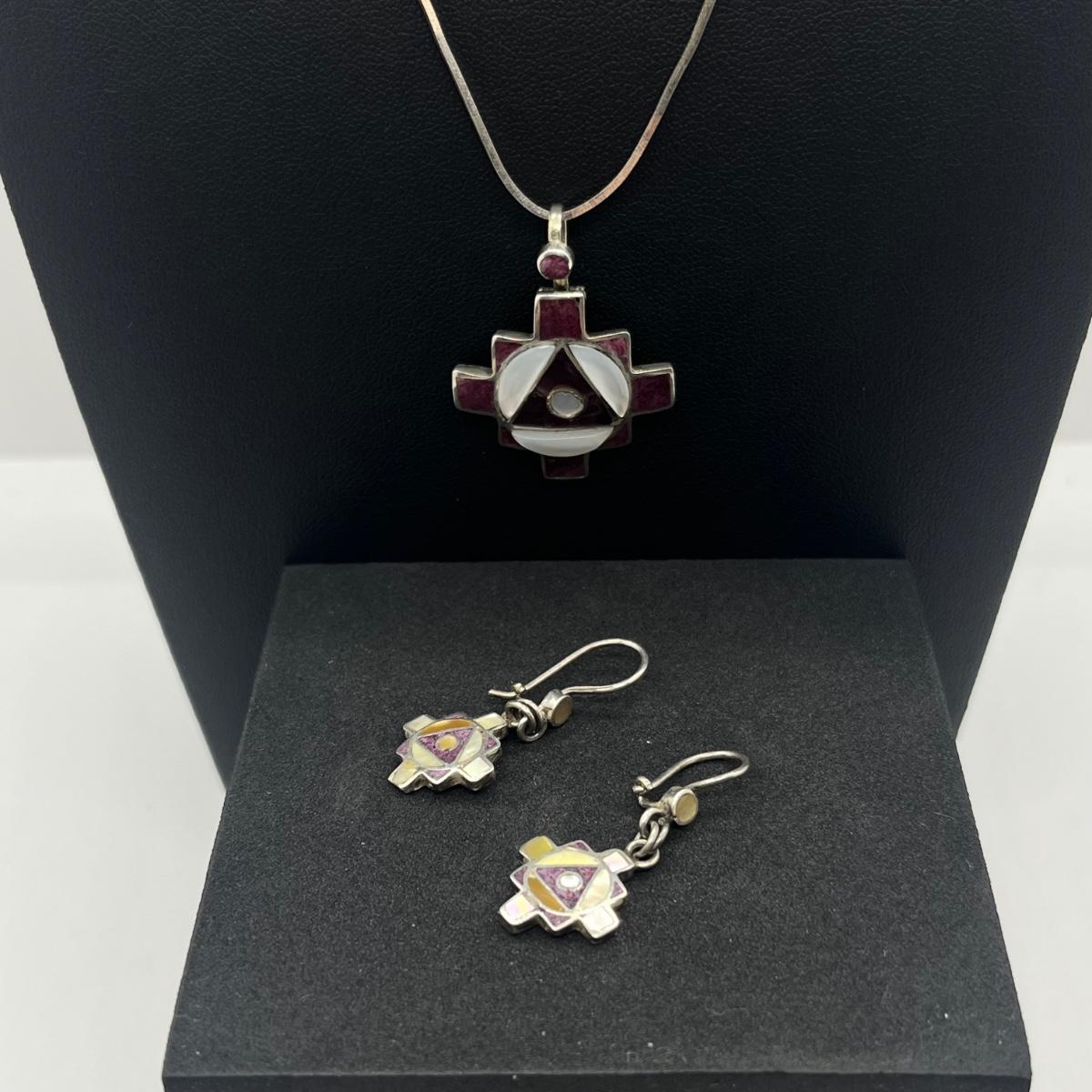 LOT 162J: Amaru Mayu Art Peruvian 950 Silver Earrings and Matching Pendant on 925 Sterling 18" Necklace - 12.3 GTW