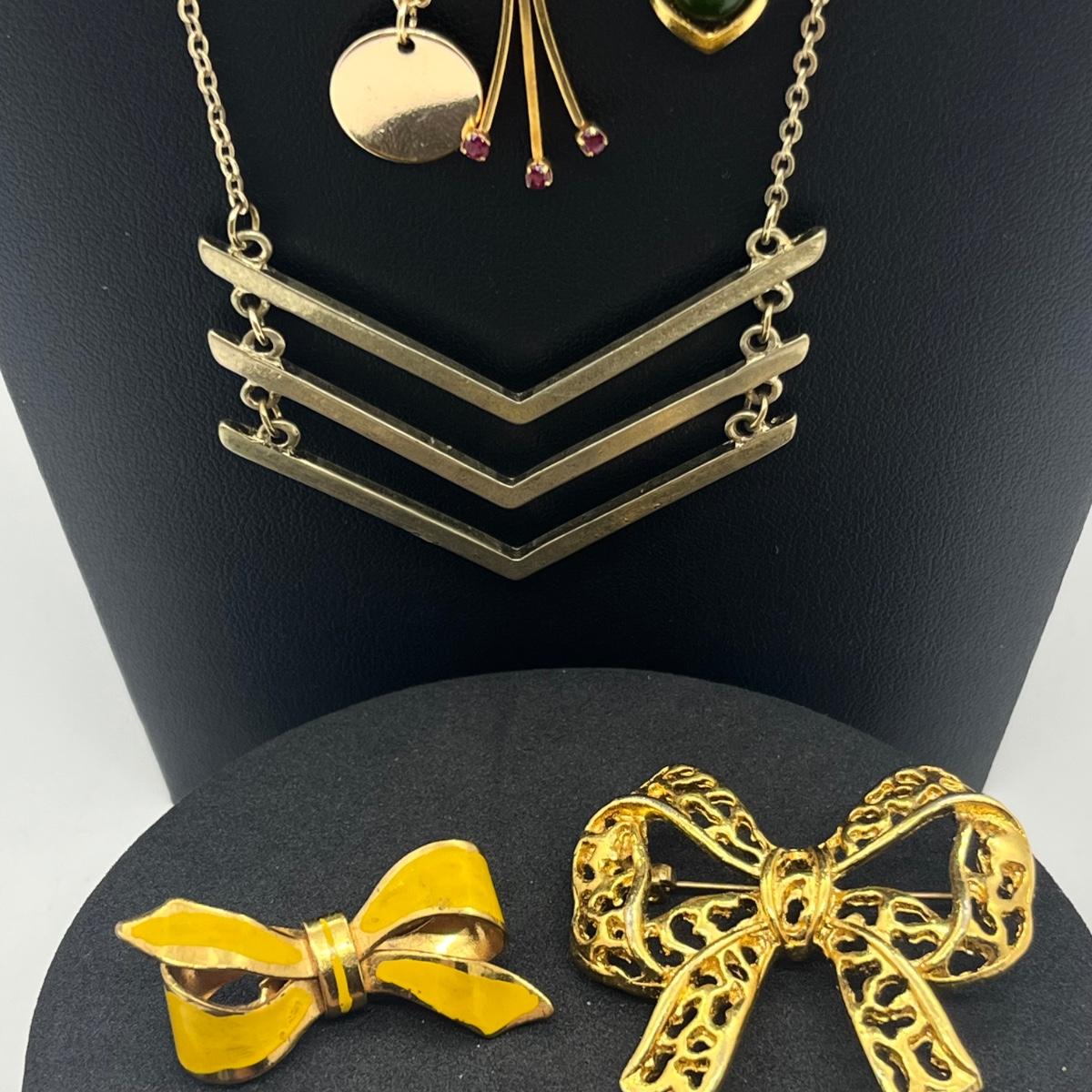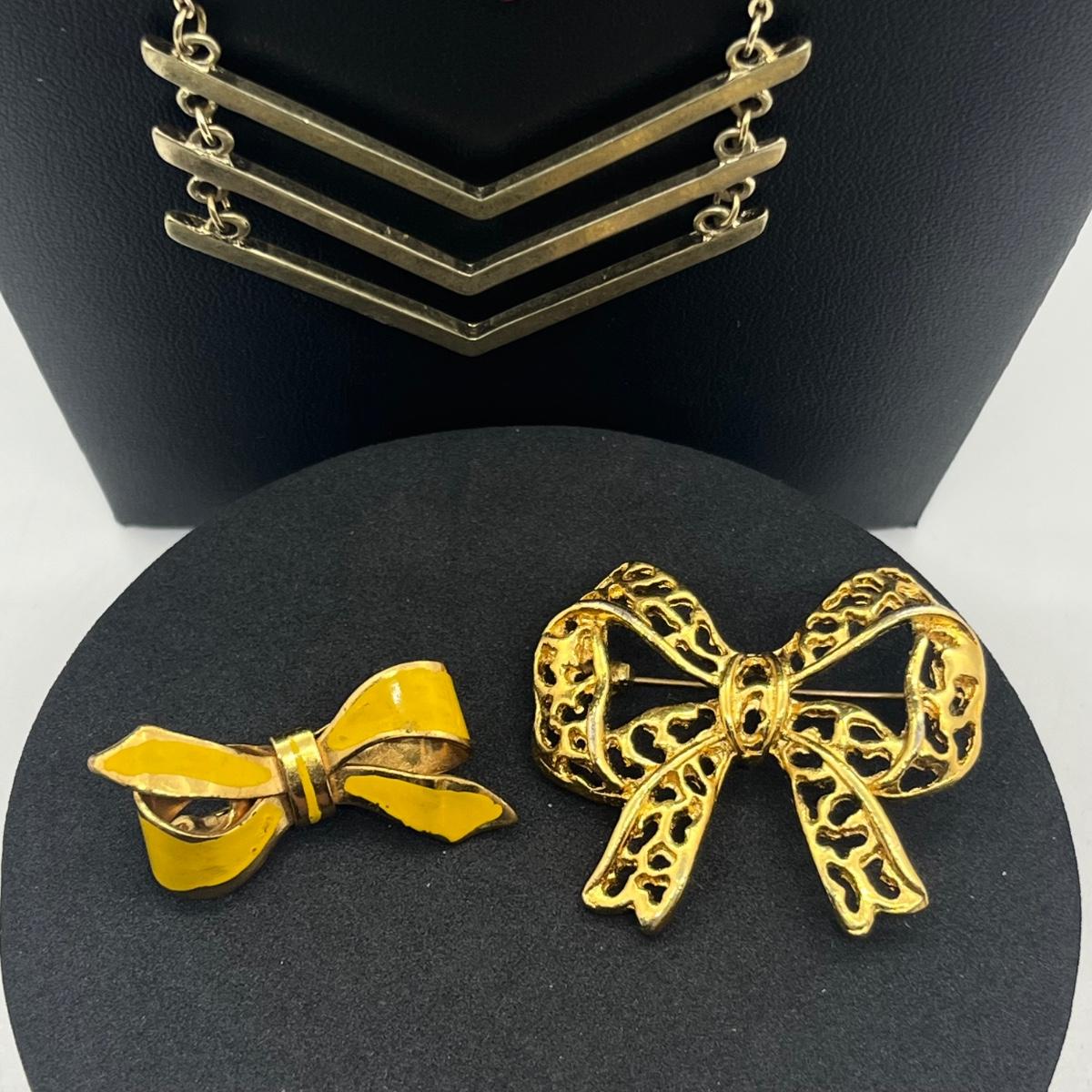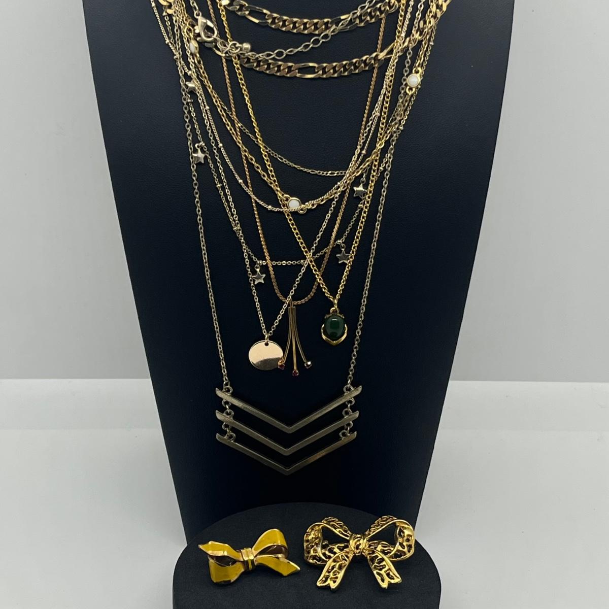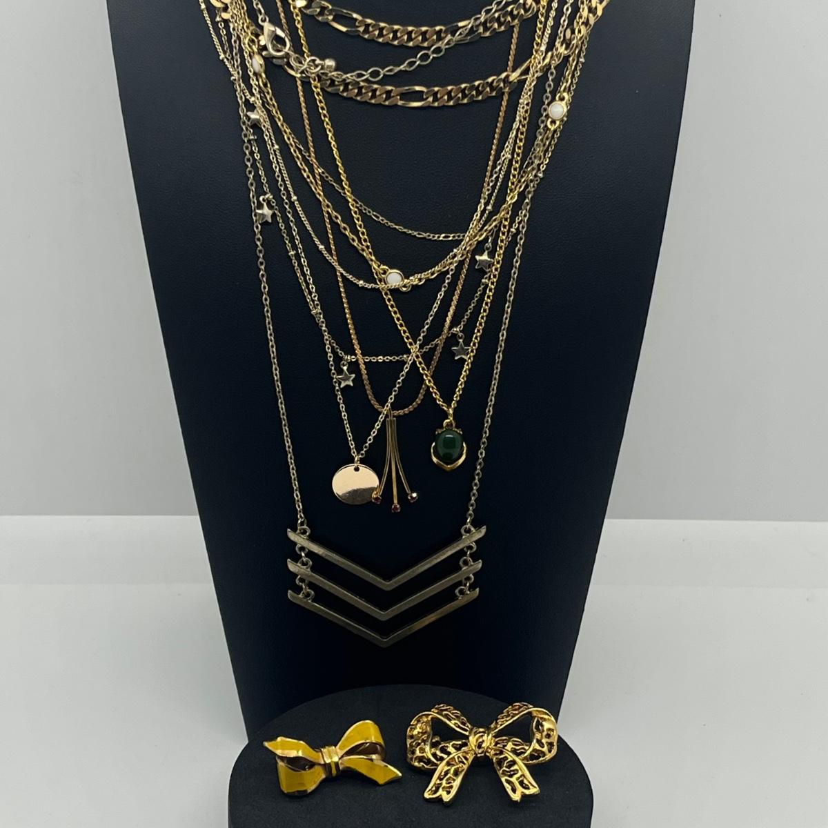 LOT 169J: Assorted Goldtone Necklaces PLUS Two Bow Pins: Avon and More!