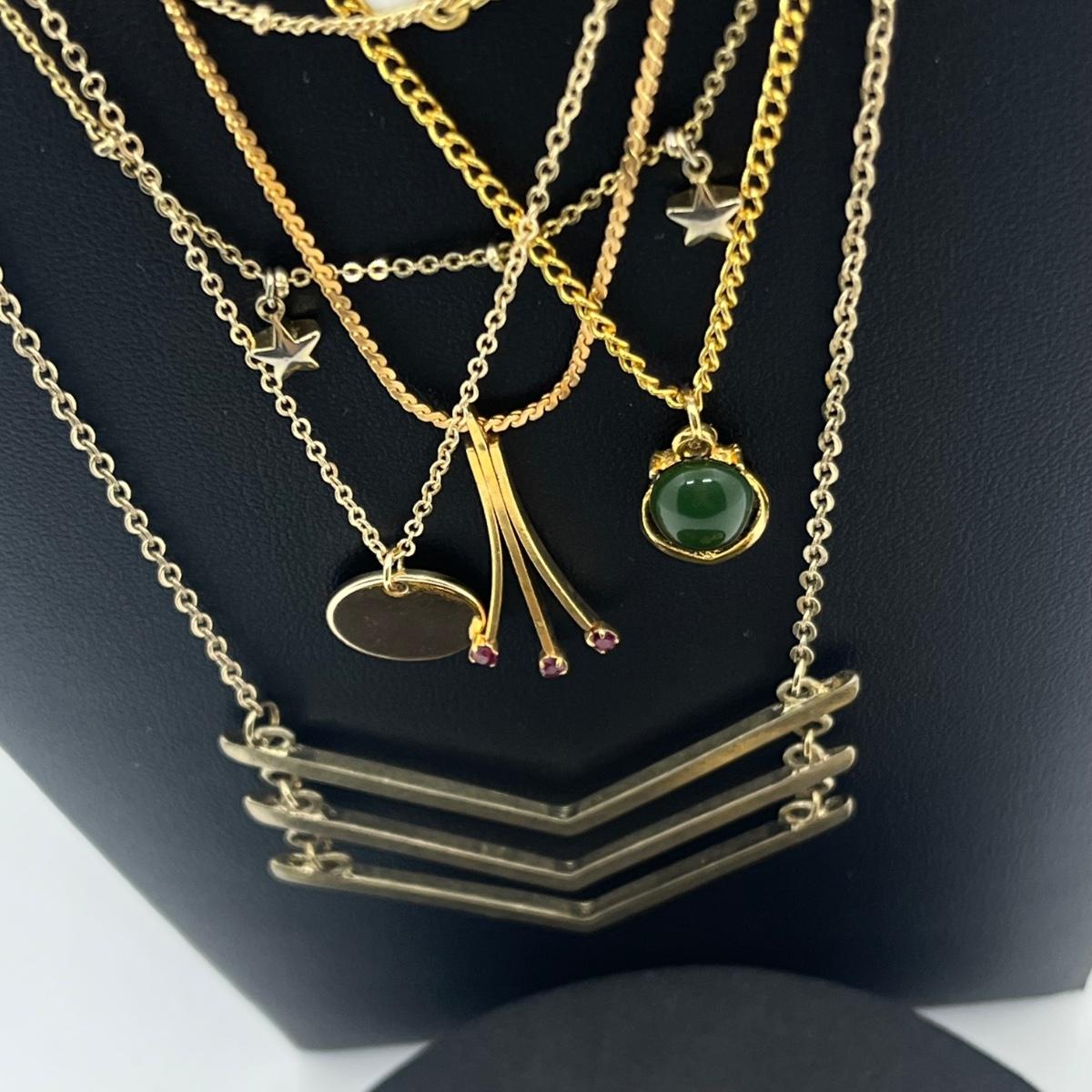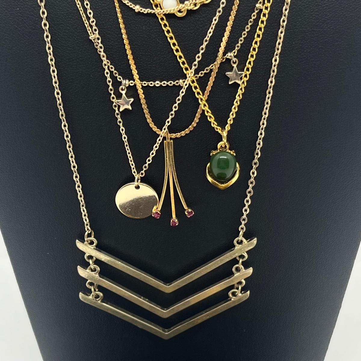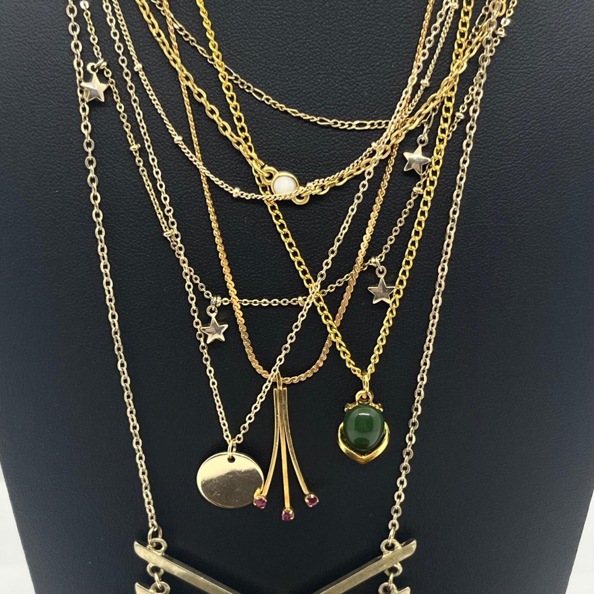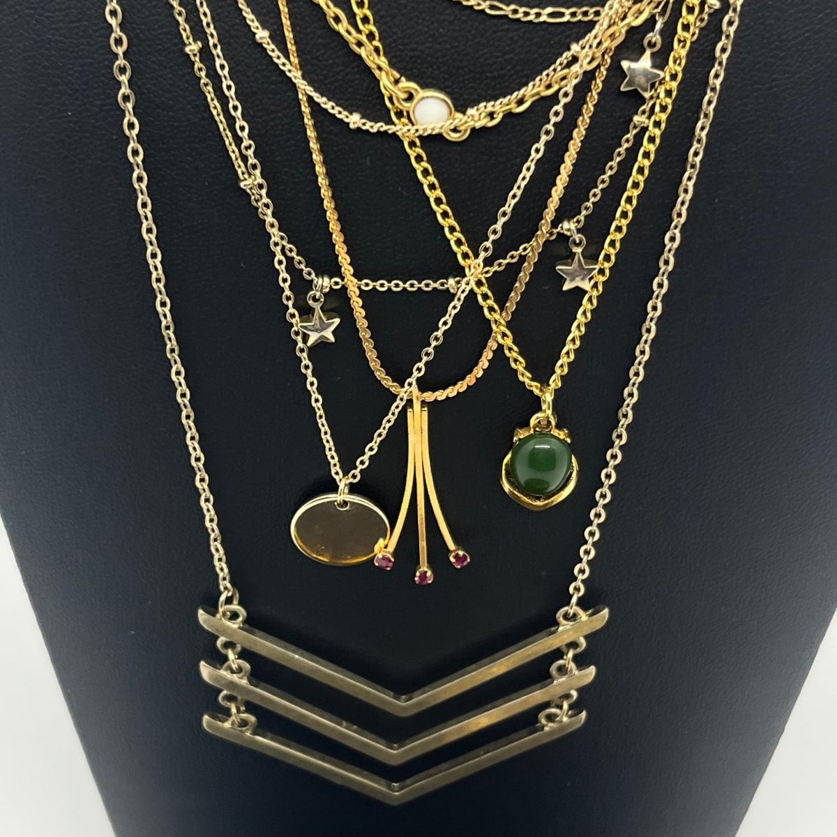 LOT 169J: Assorted Goldtone Necklaces PLUS Two Bow Pins: Avon and More!