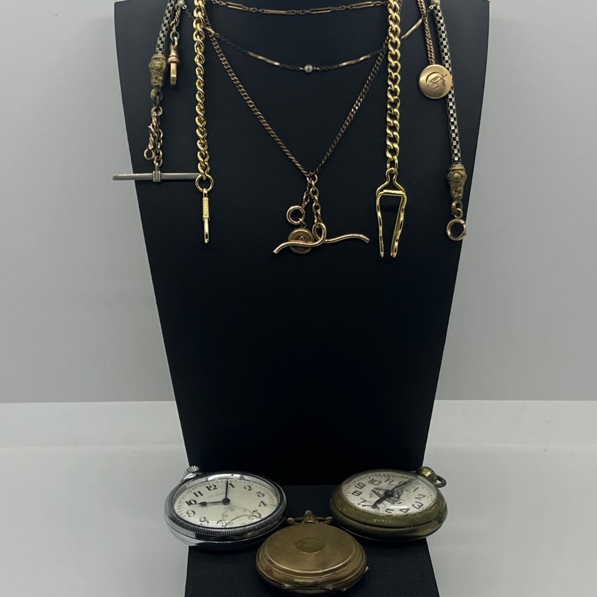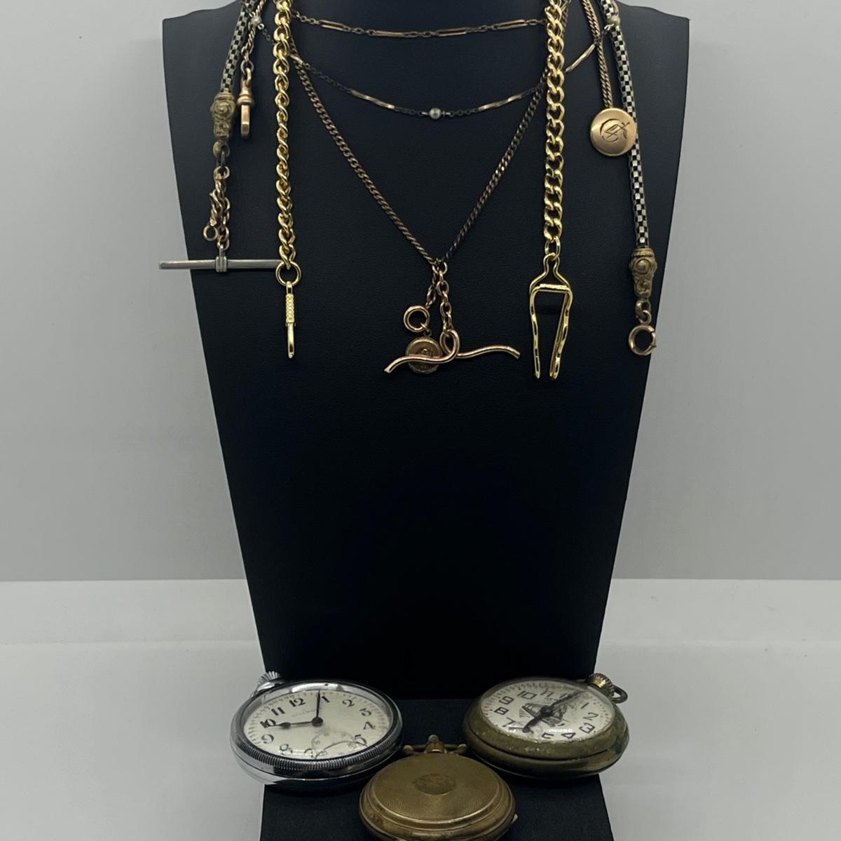 LOT 171J: Pocket Watches and Chains - For Craft or Repair (Non Working)