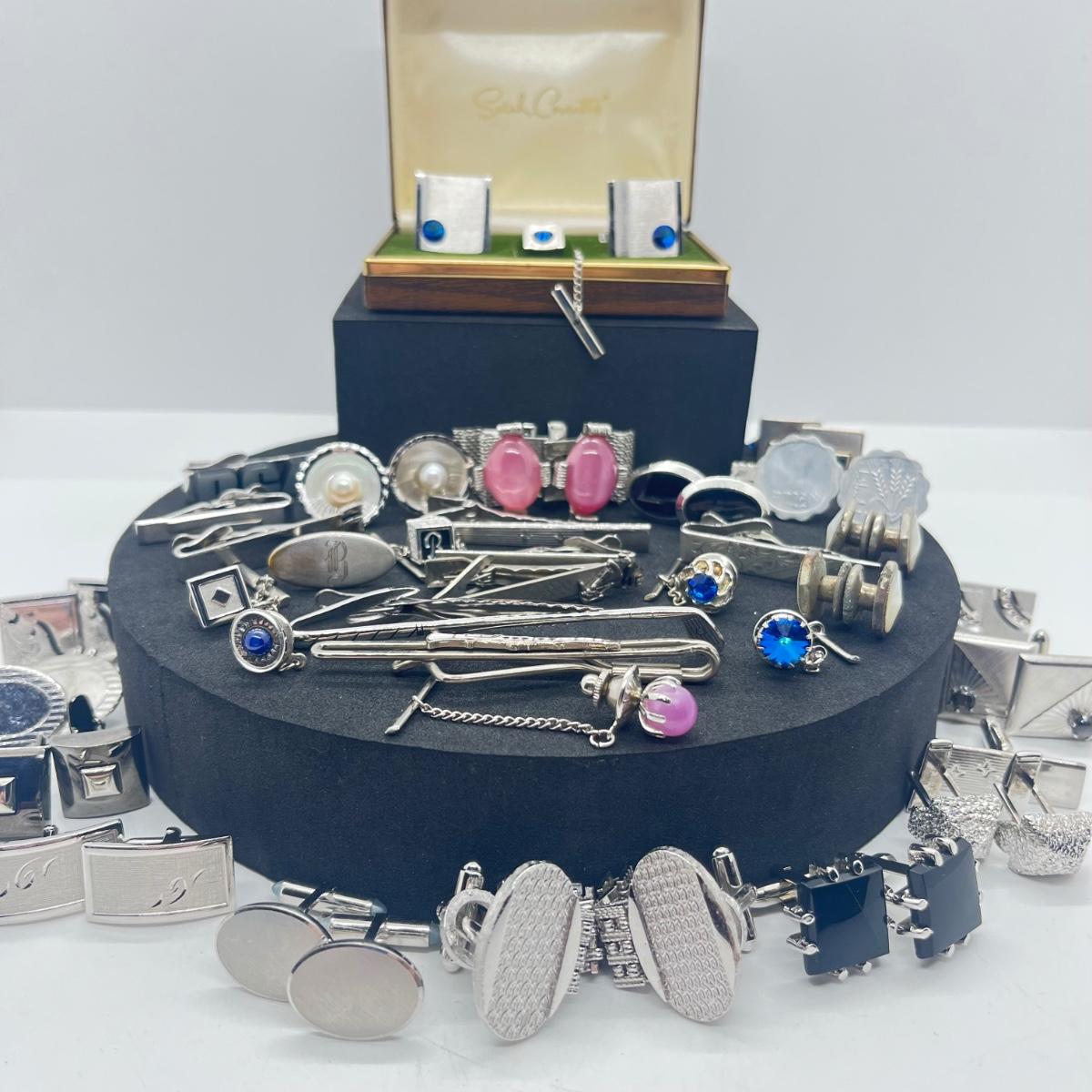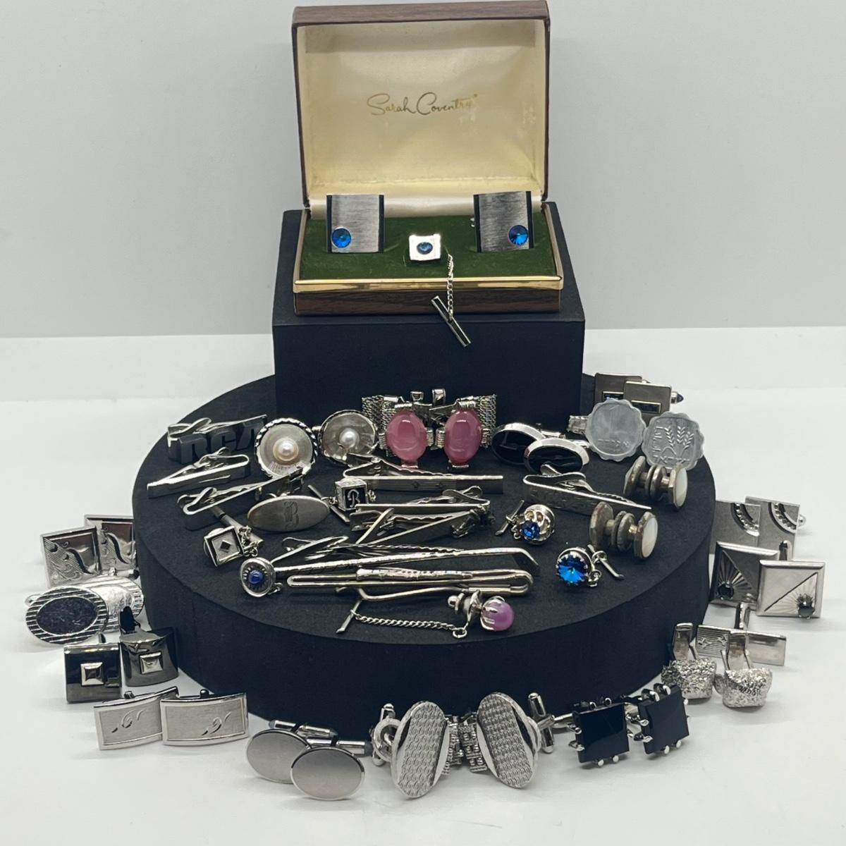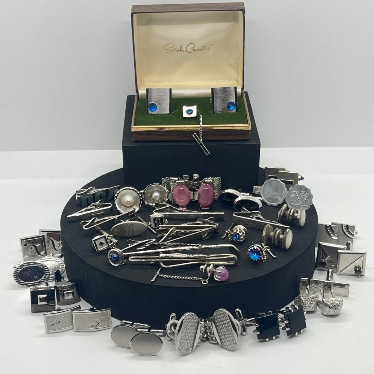 LOT 176J: Enormous Collection of Unique Tie Pins and Cufflinks Including A Beautiful Vintage Sarah Coventry Set, Swank, Anson and More!