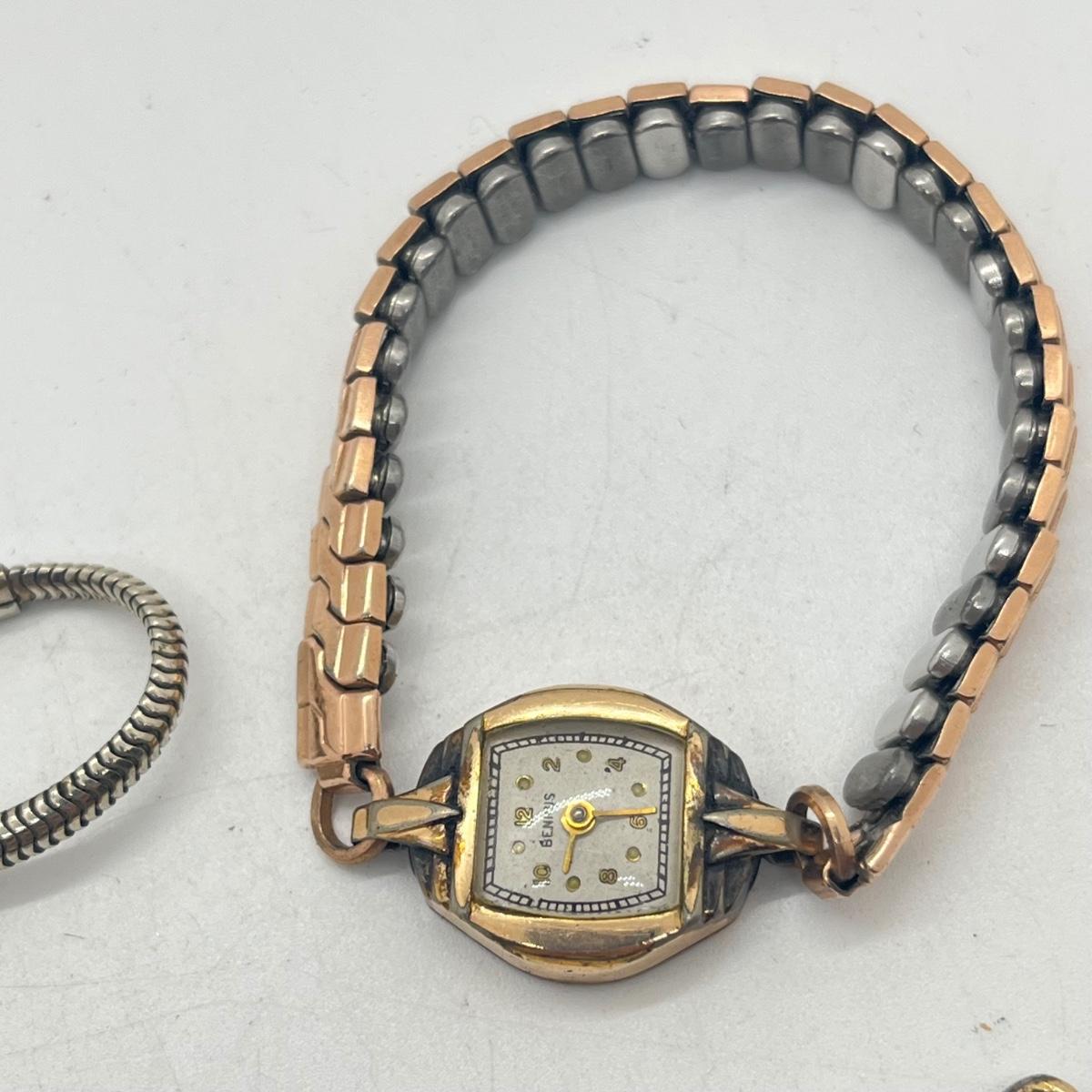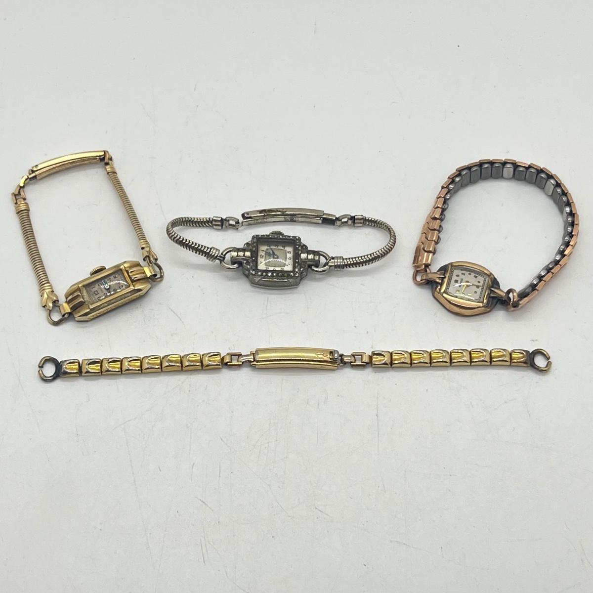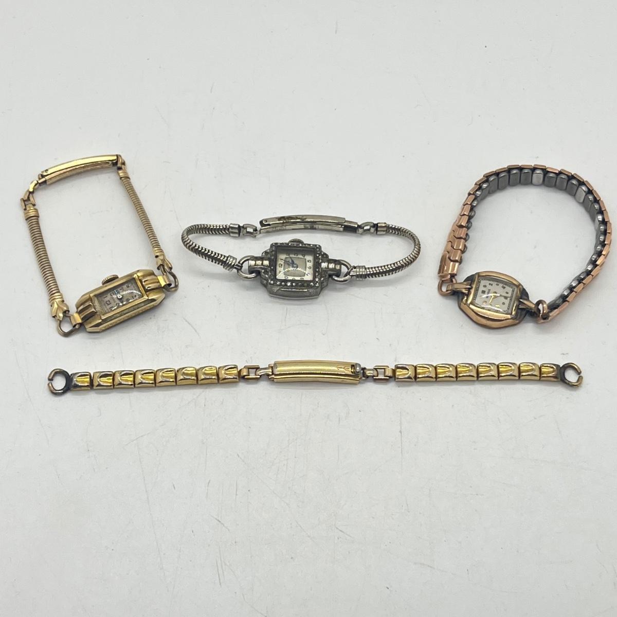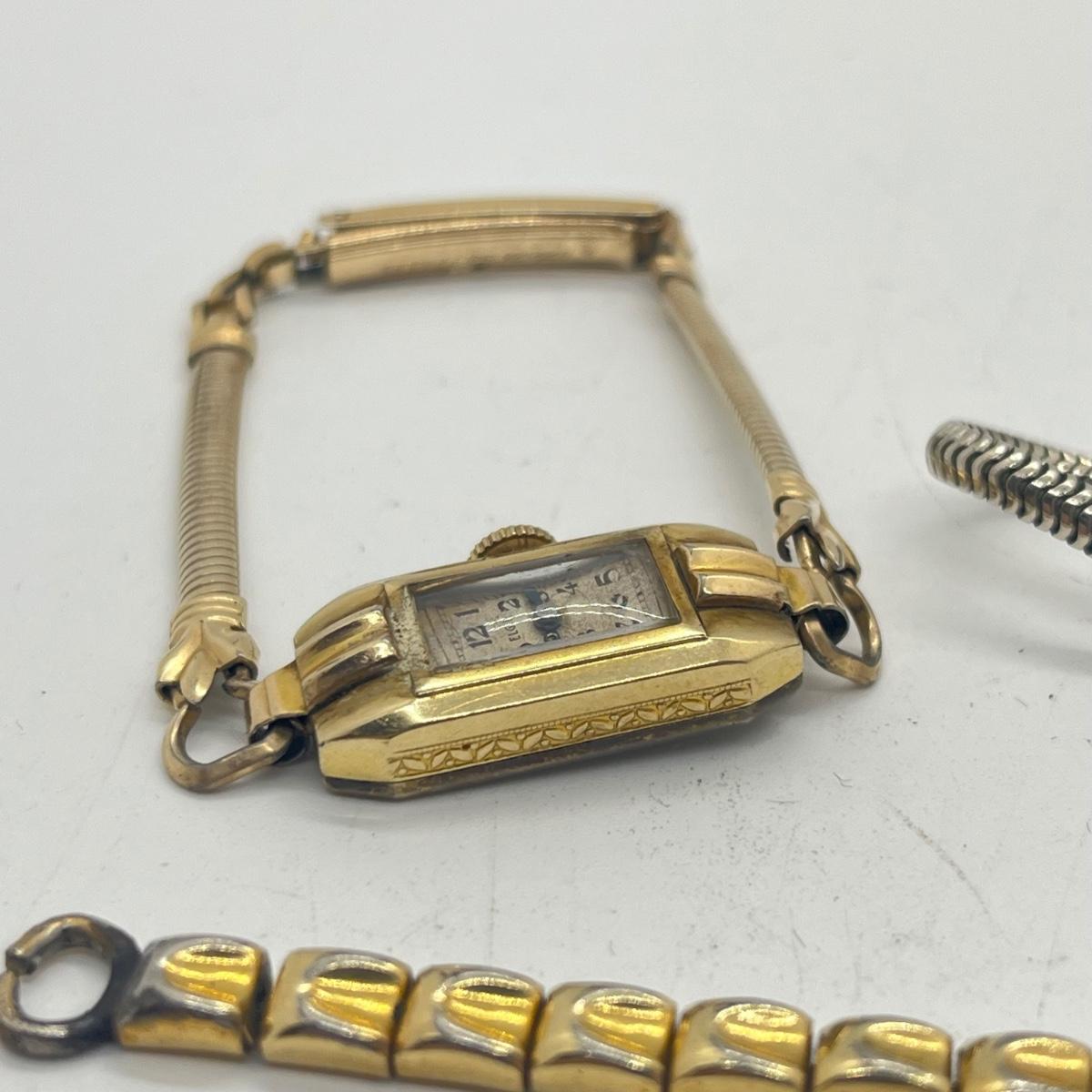 LOT 186J: Vintage Women's Gold Fill Mechanical Watches (Not Working) + Watch Band