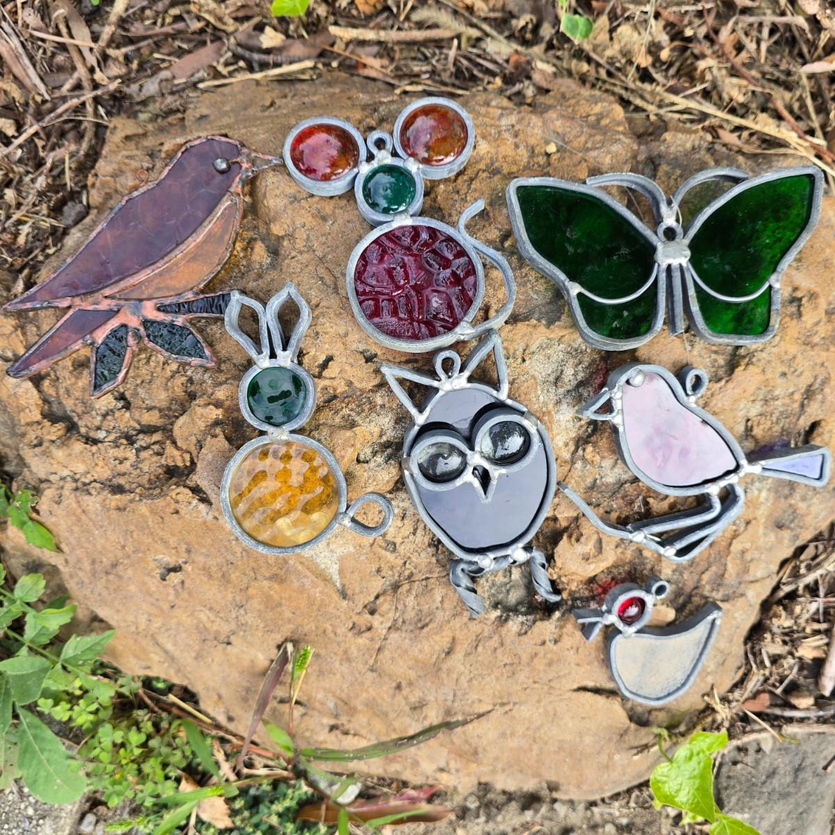 LOT 6 Stained Glass Suncatchers: Butterfly, Birds, Owl, Rabbit and Mouse