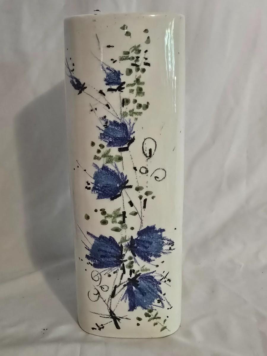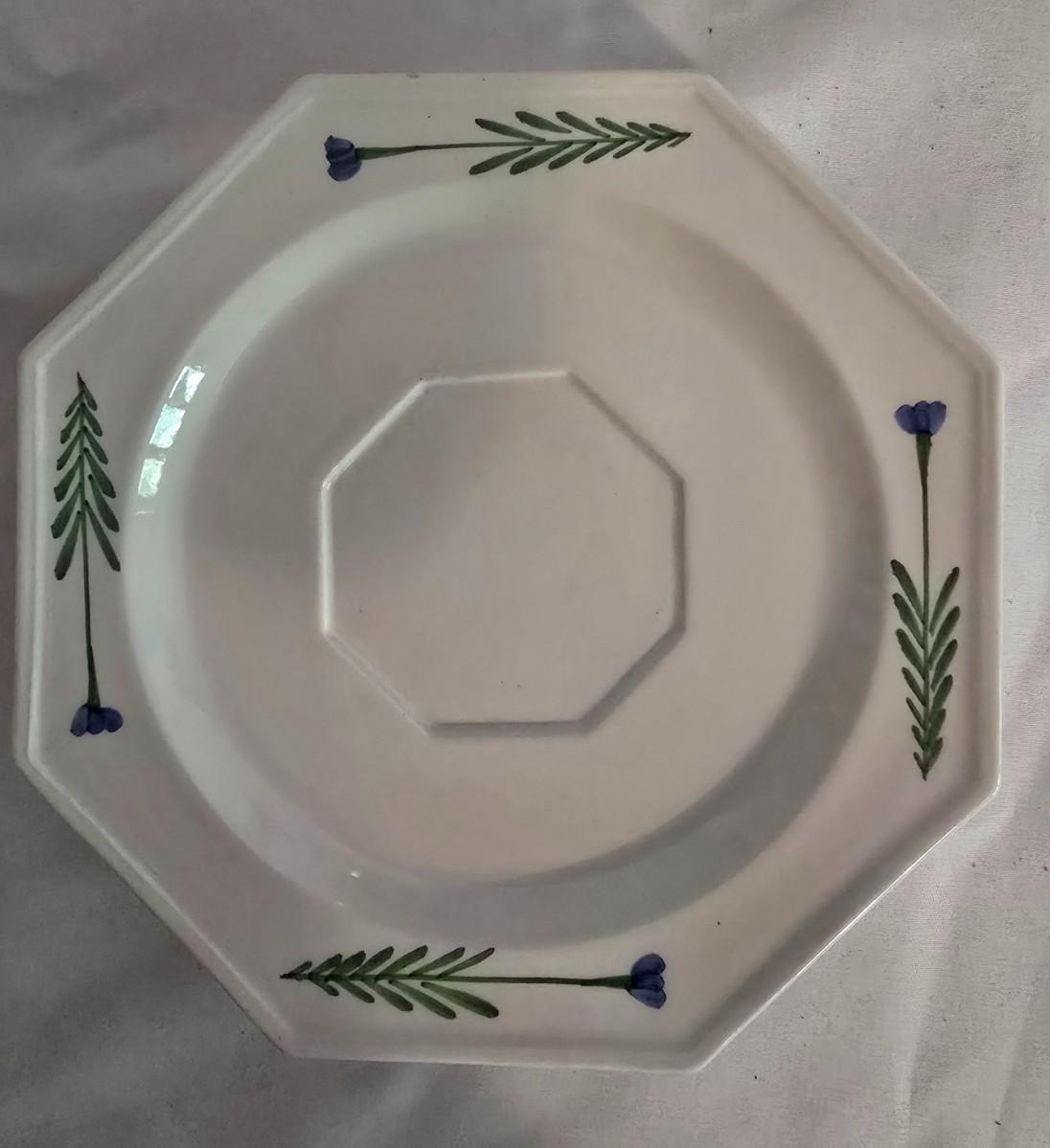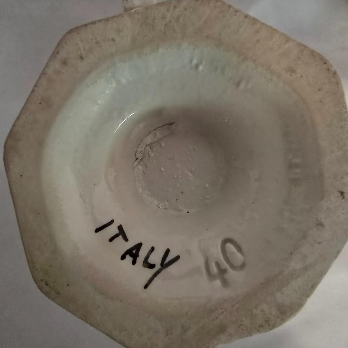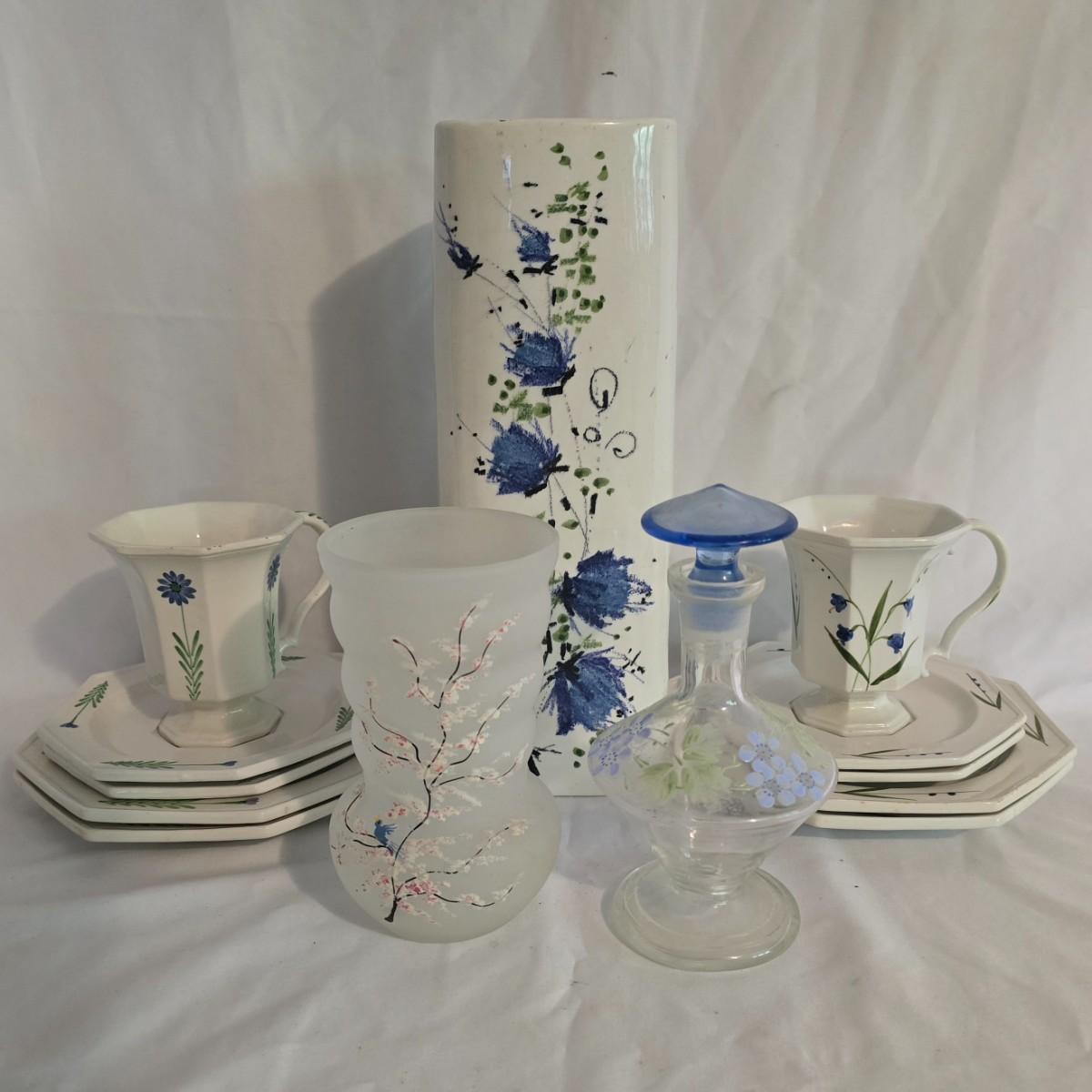 LOT 9: Hand Painted Italian Ceramic Vase, Plates, Cups and Saucers, with Glass Vases