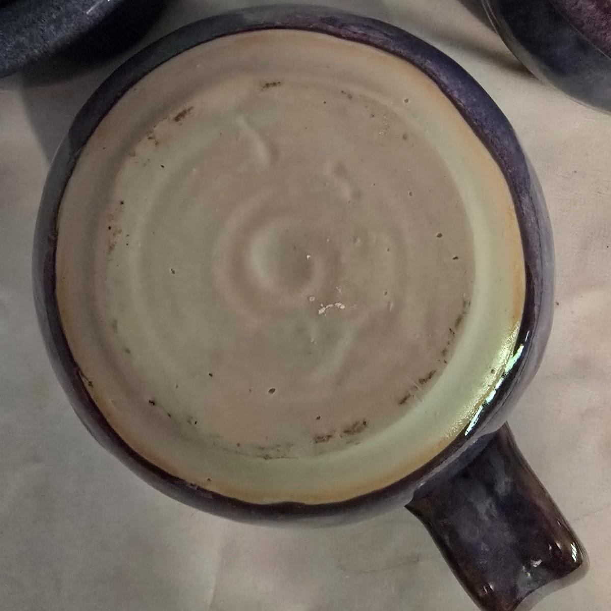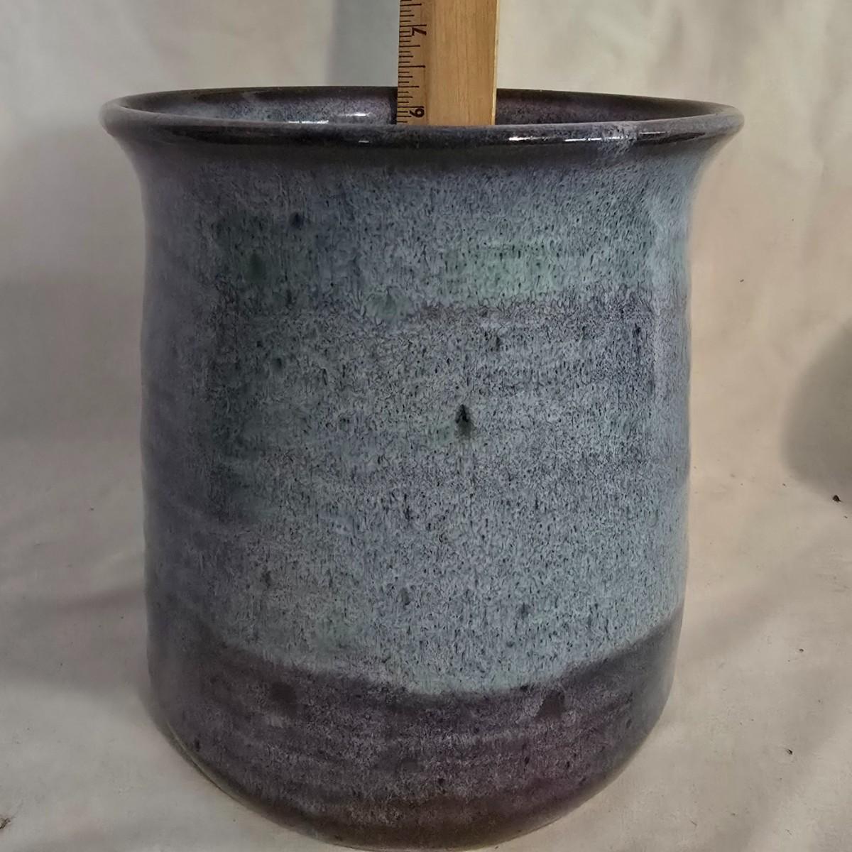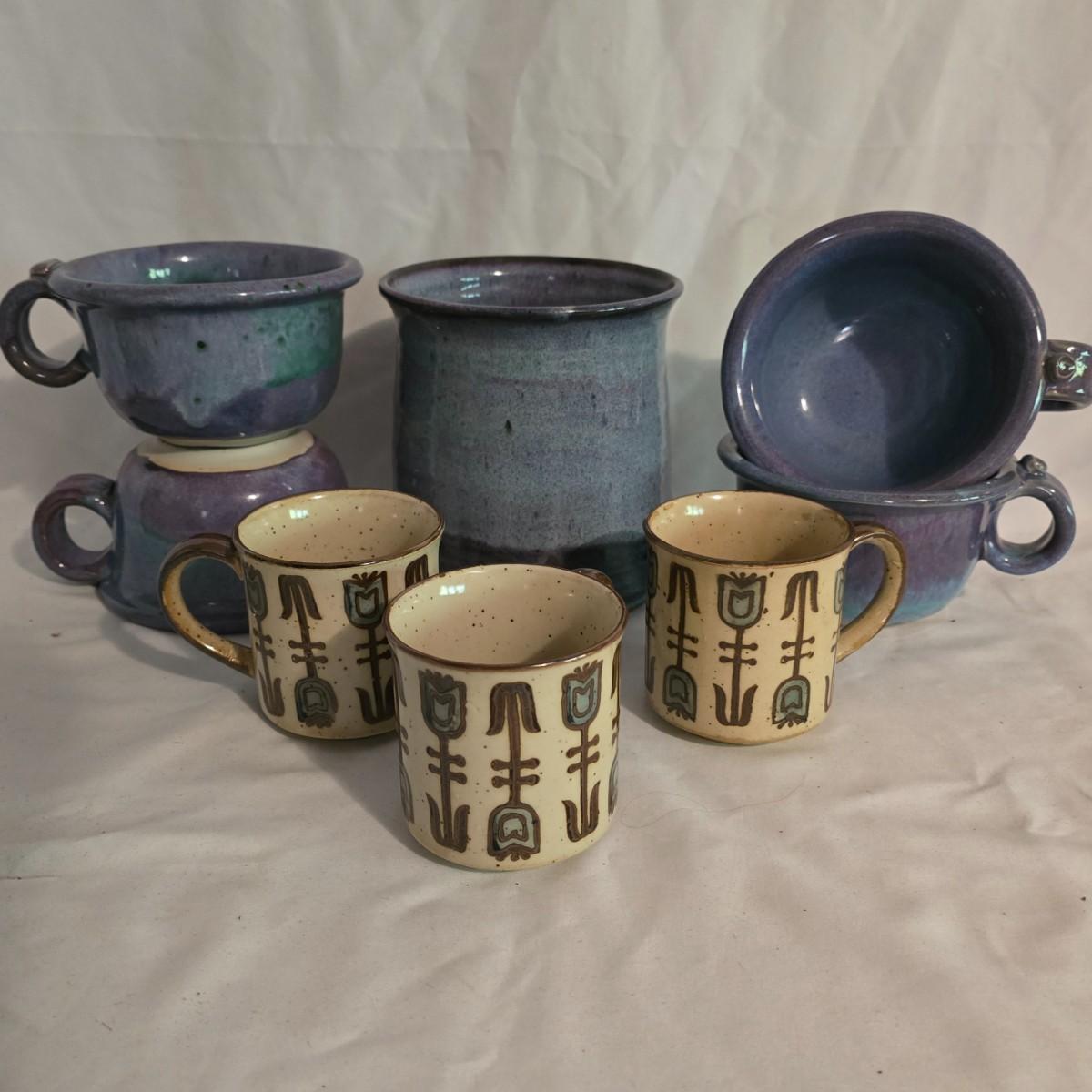 LOT 16: Pottery Utensil Holder with 4 Soup Mugs and 3 Stoneware Mugs