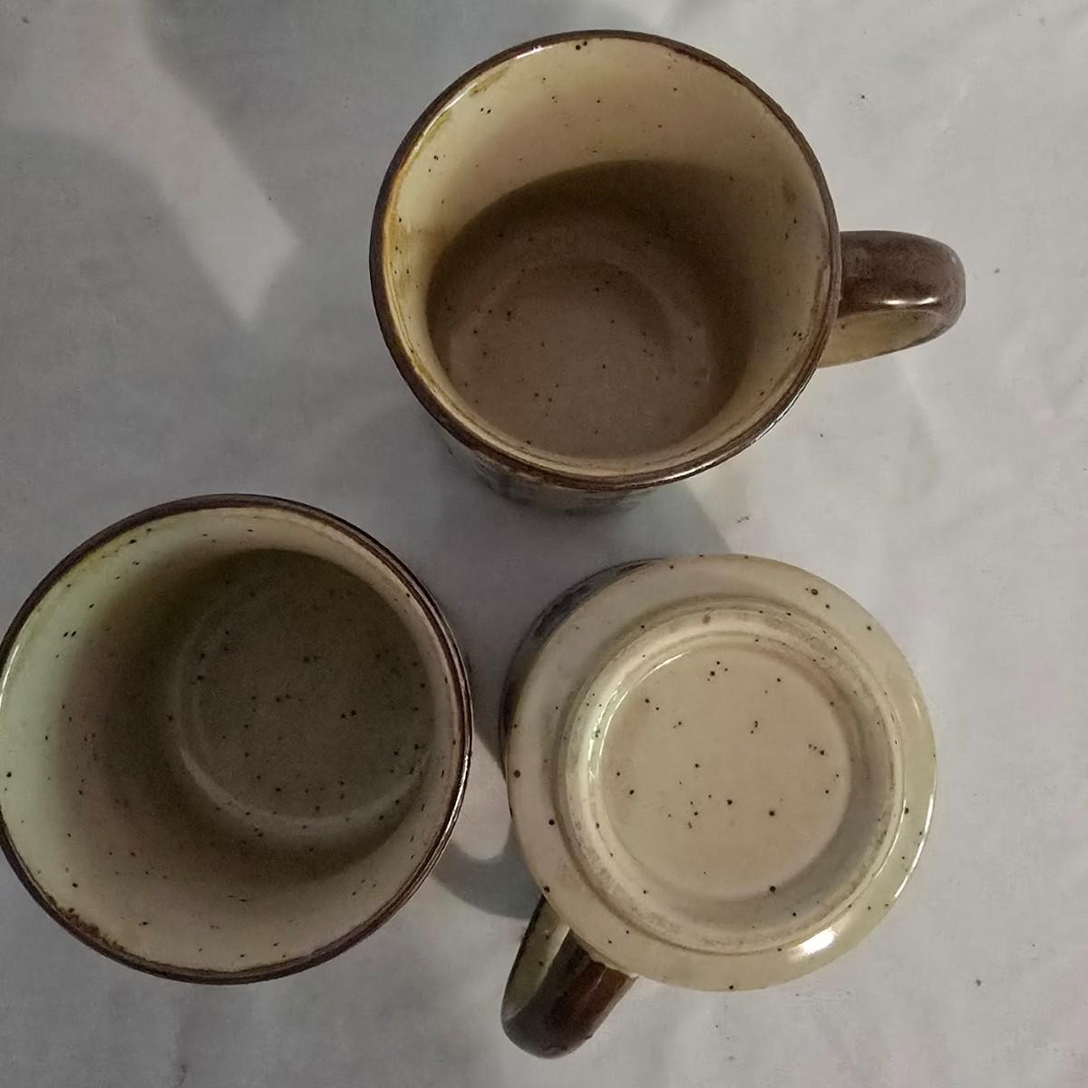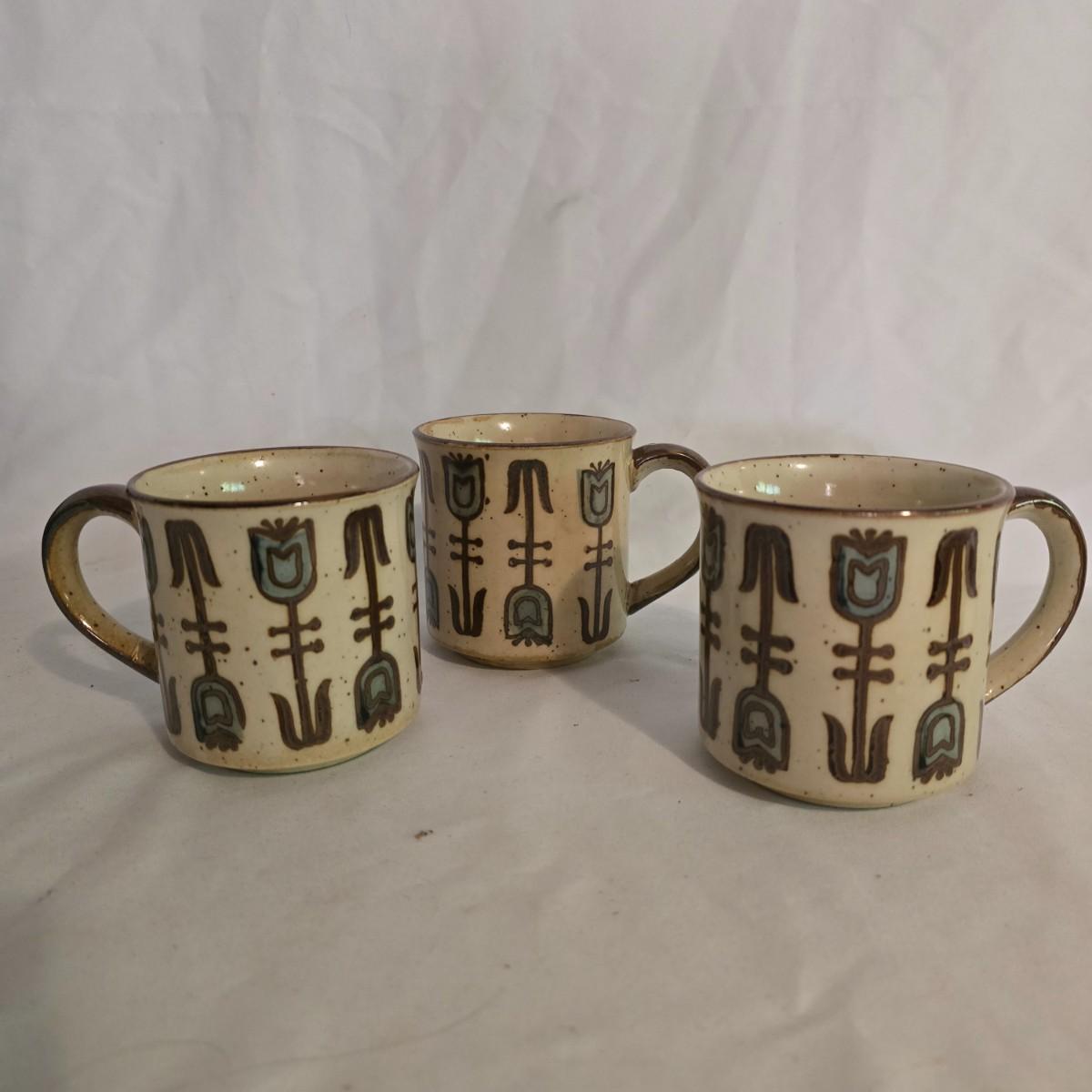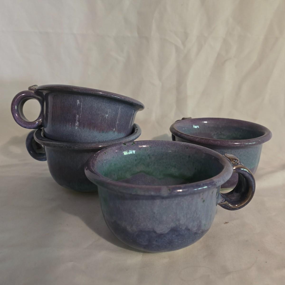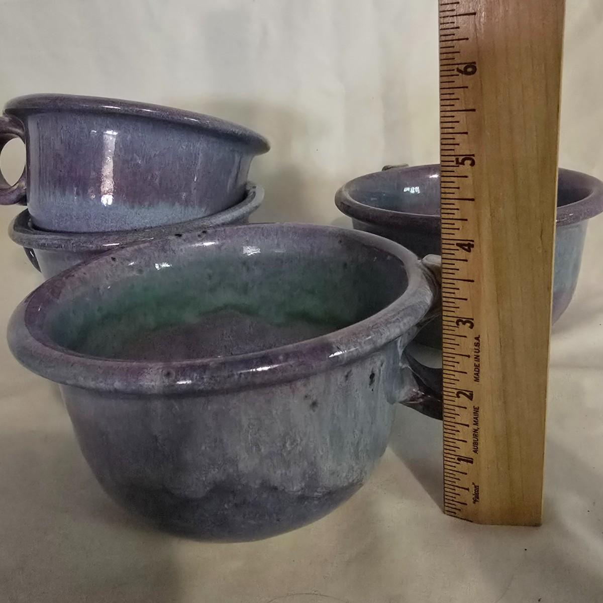 LOT 16: Pottery Utensil Holder with 4 Soup Mugs and 3 Stoneware Mugs