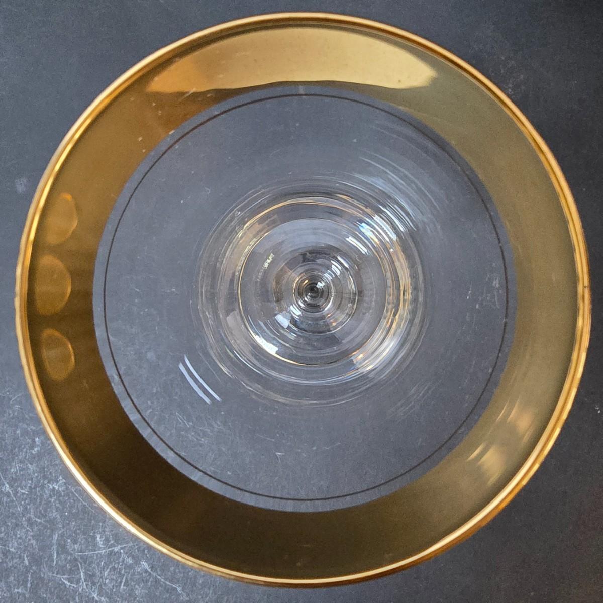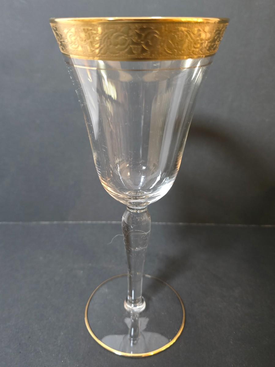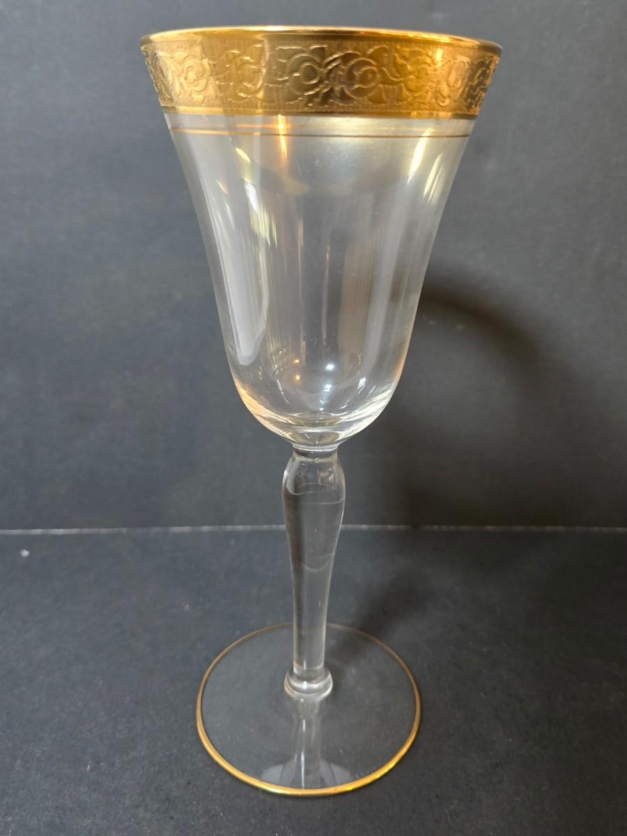 LOT 20: Gold Rimmed Crystal Stem Glasses, Set of 12, 8" tall