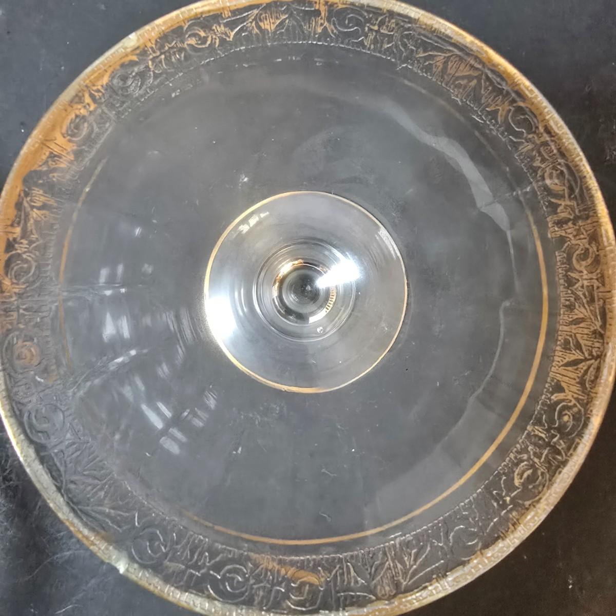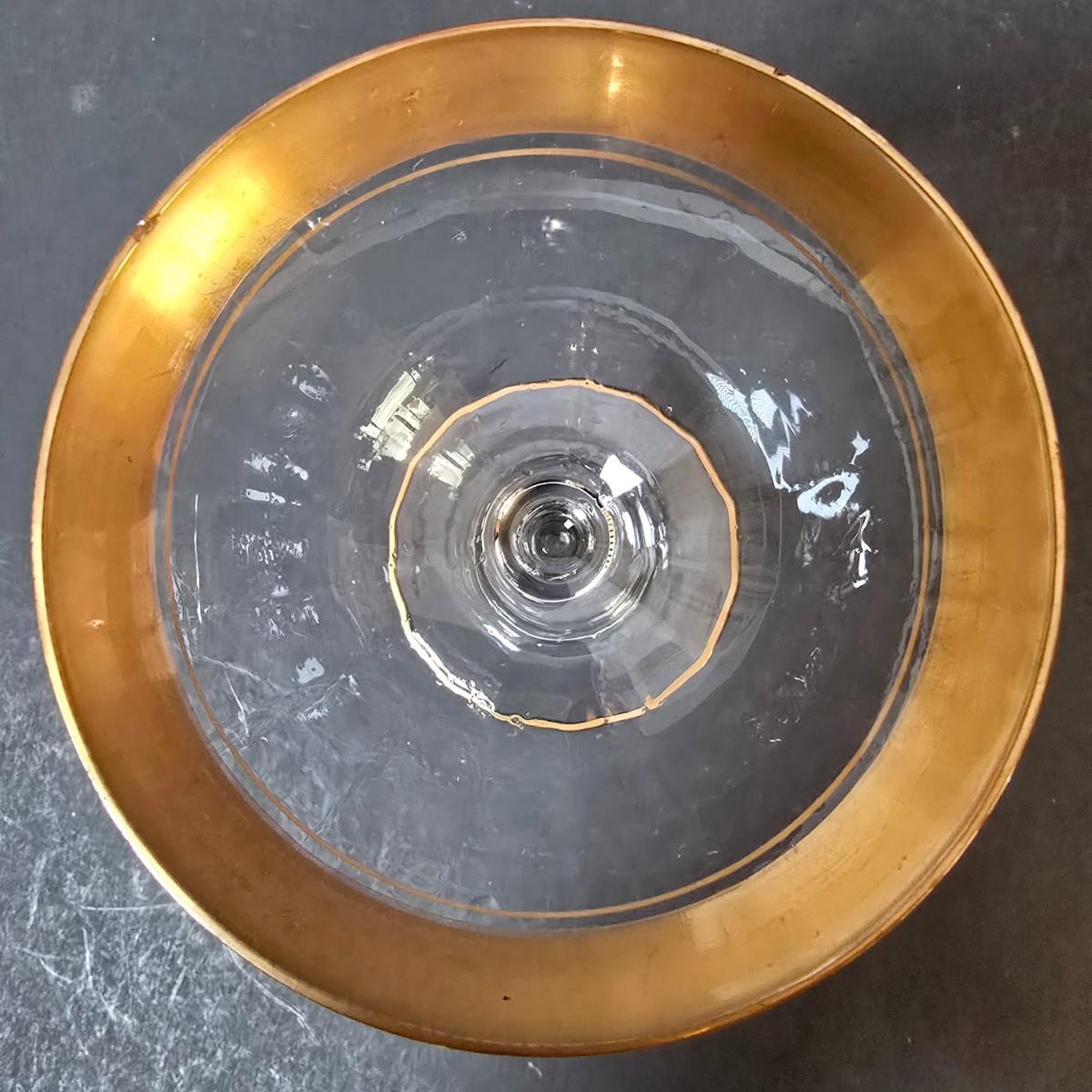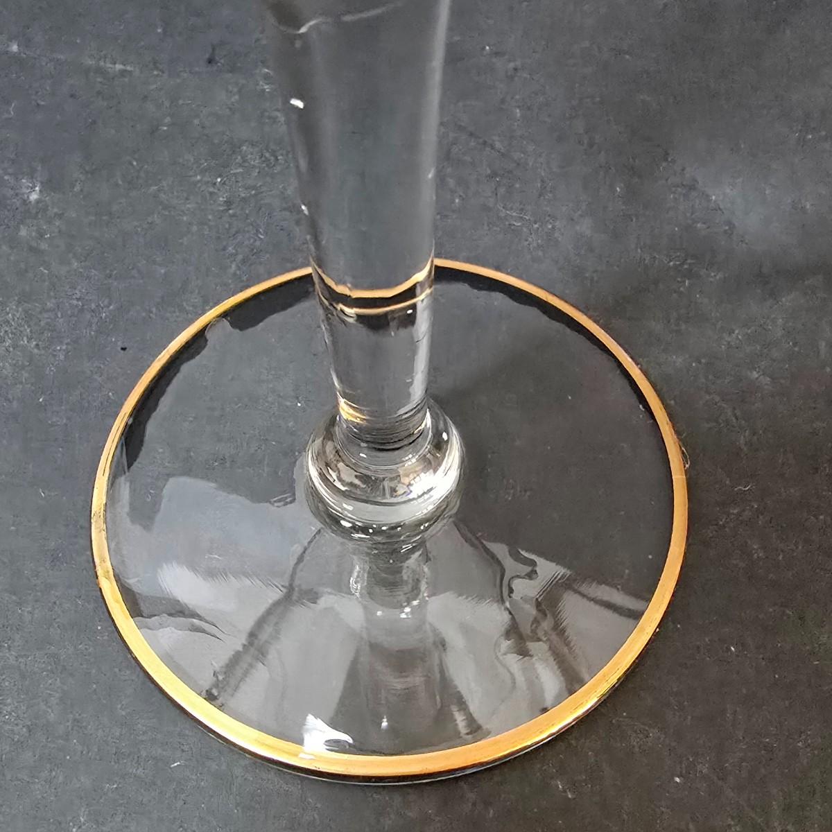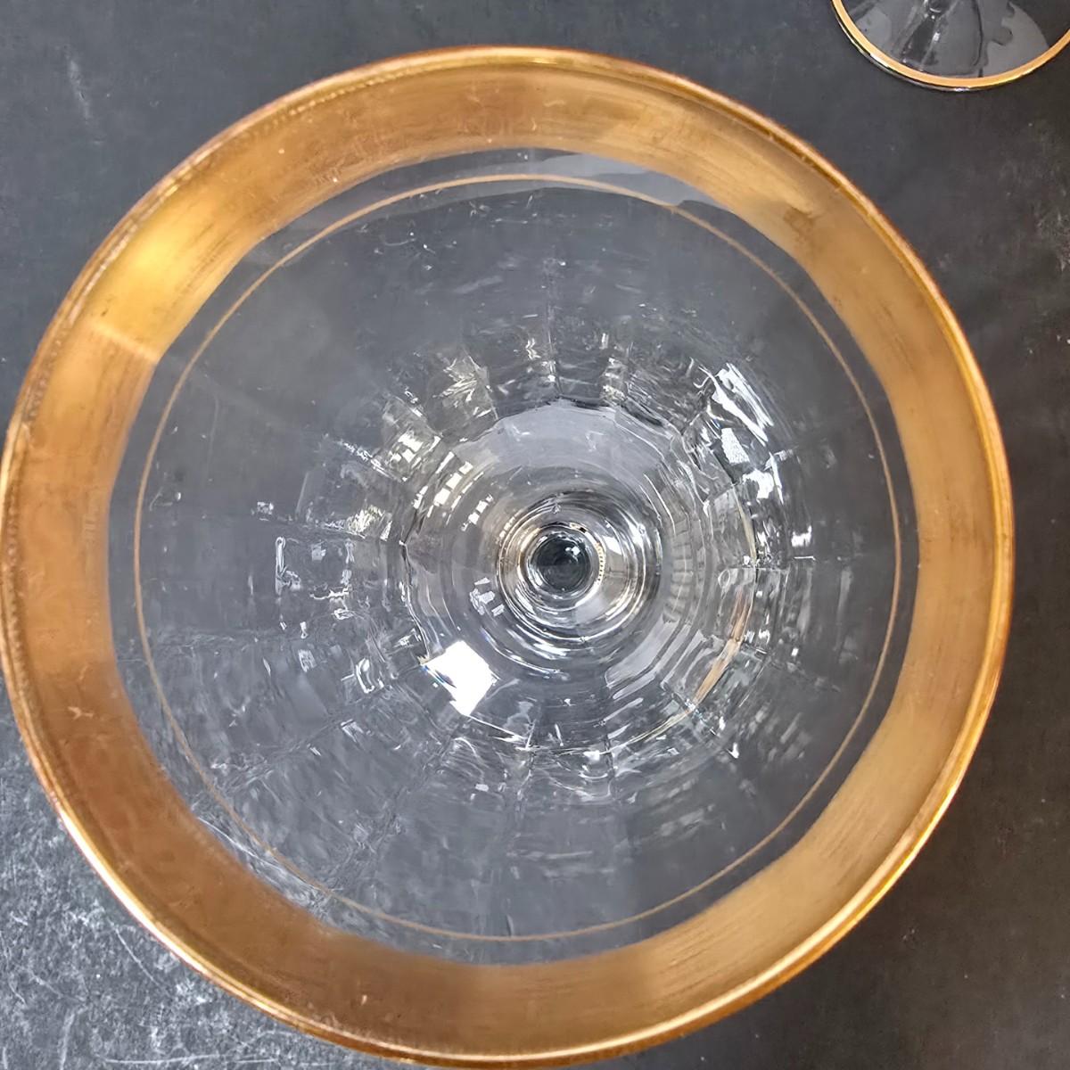 LOT 21: Gold Rimmed Crystal Stem Glasses, Two sets of 7