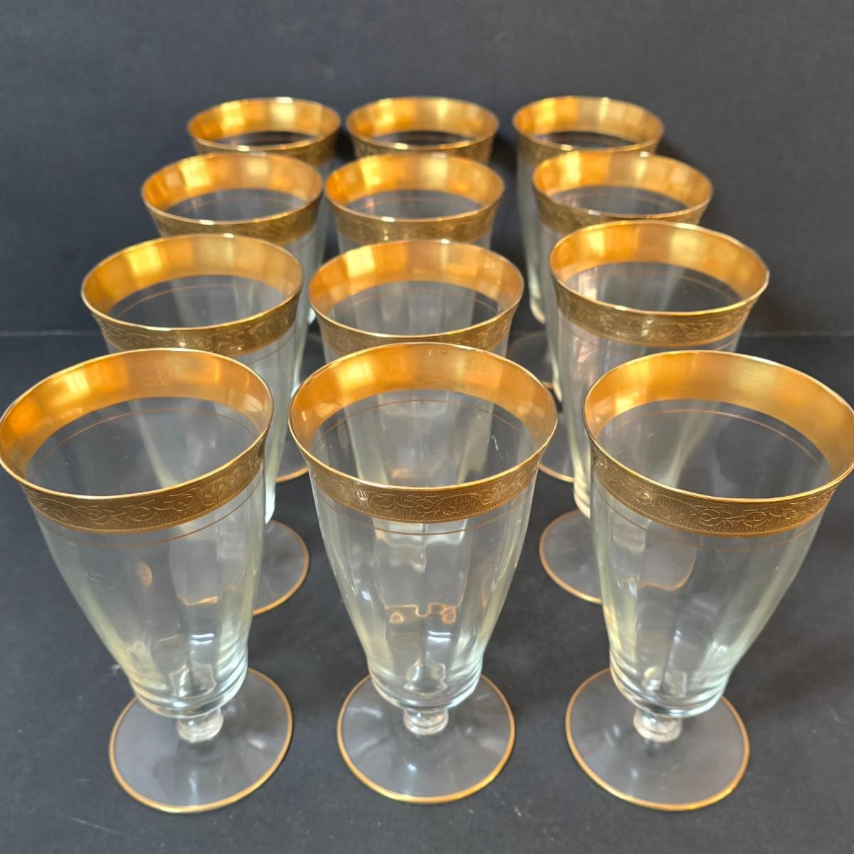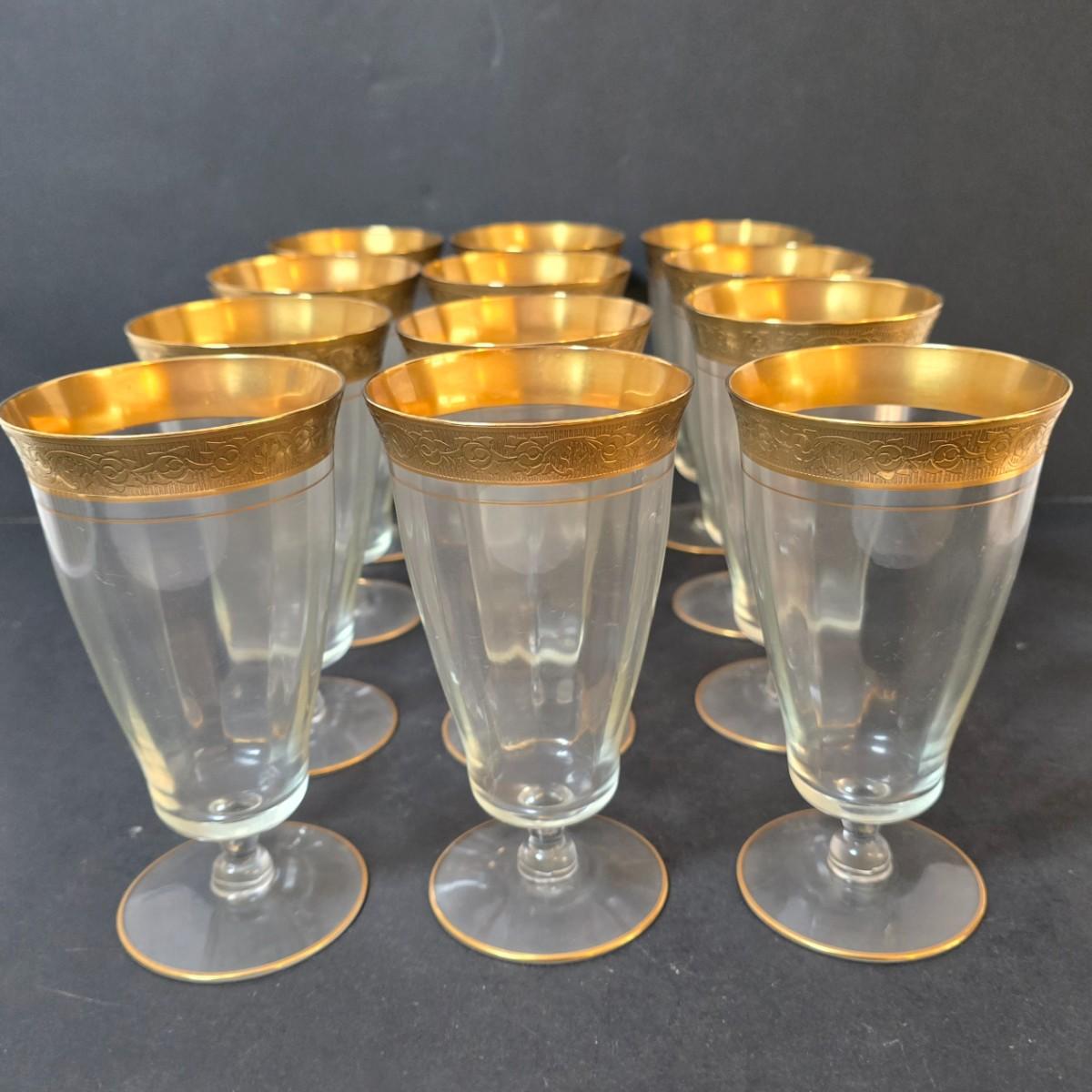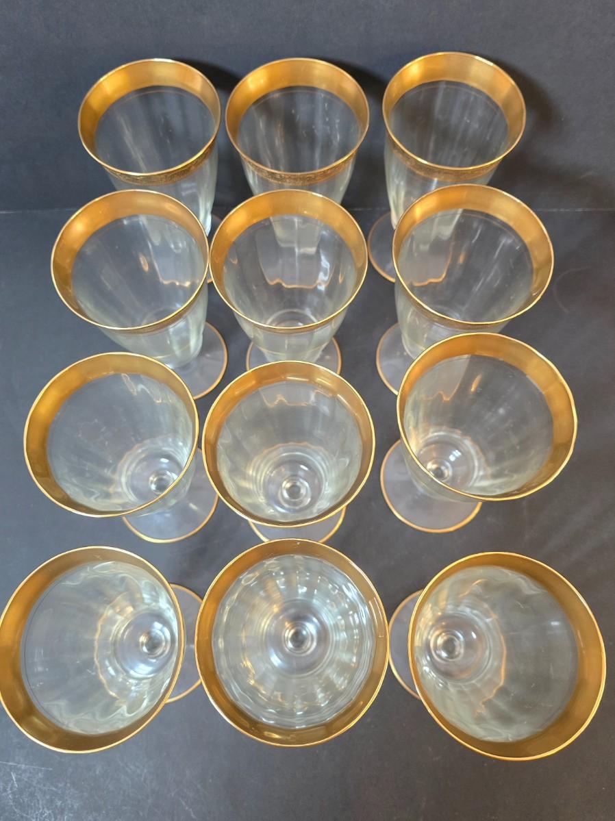 LOT 23: Gold Rimmed Crystal Stem Glasses, Set of 12, 6" tall