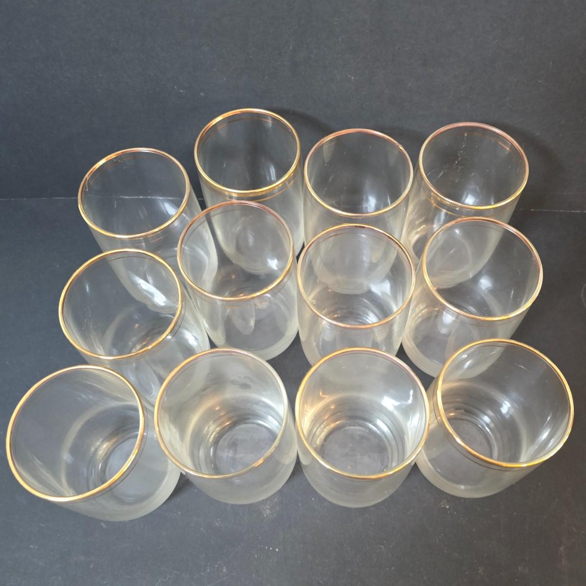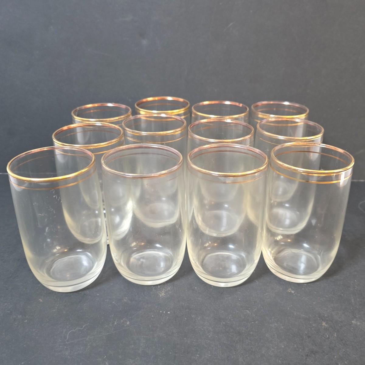 LOT 25: Gold Rimmed Crystal Glasses, Set of 12, 4 1/2" tall