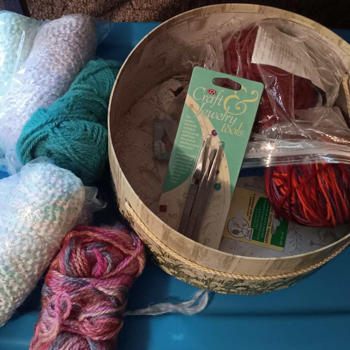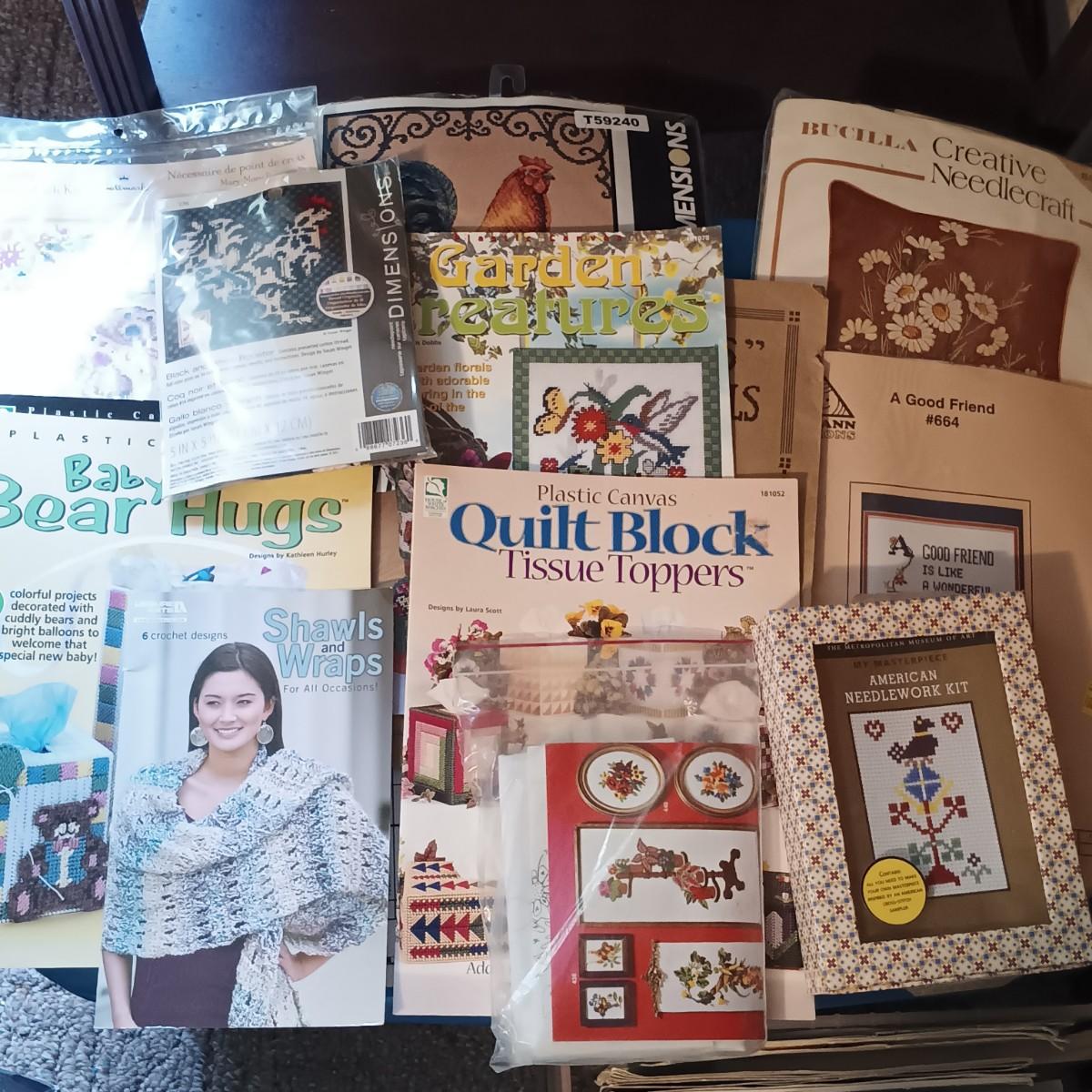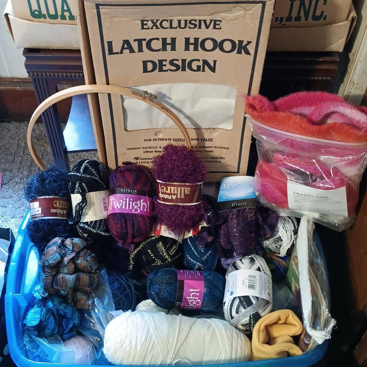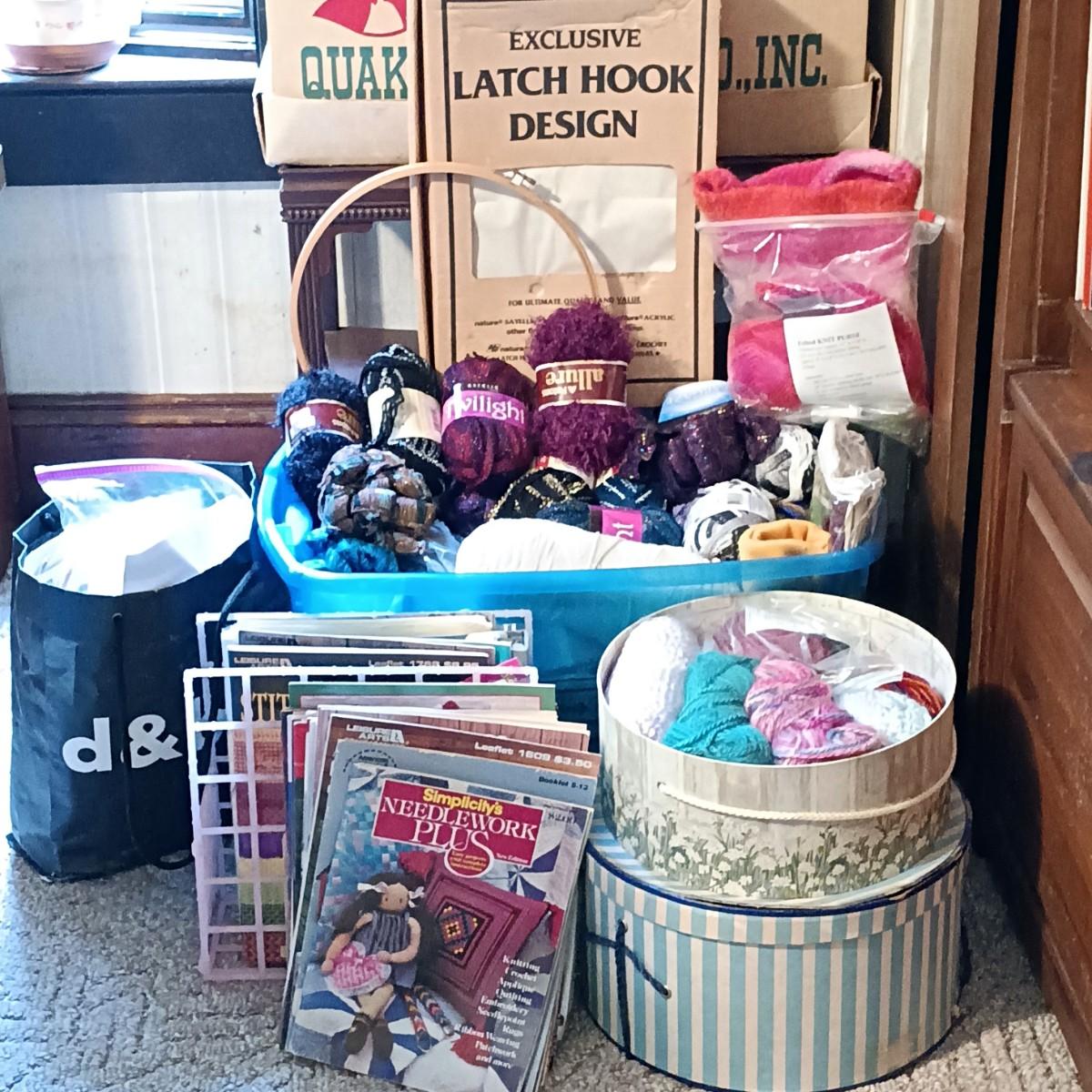 LOT 42: Large Collection of Knitting Supplies, Crafting Magazines, Latch Hook Accessories & More
