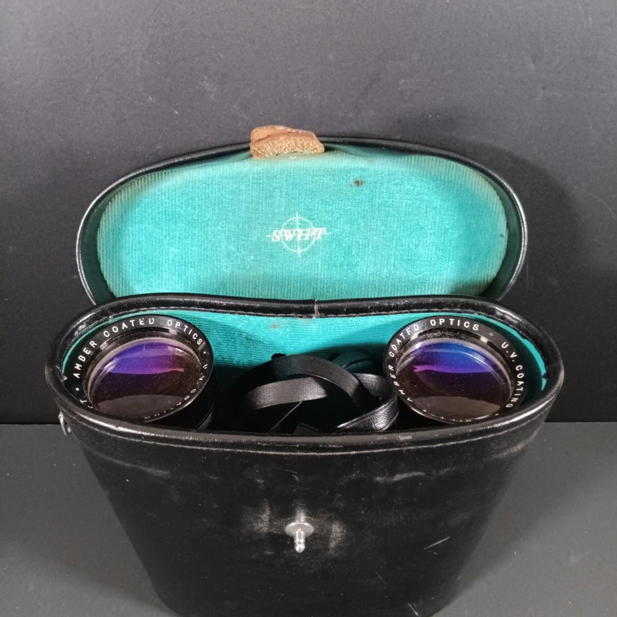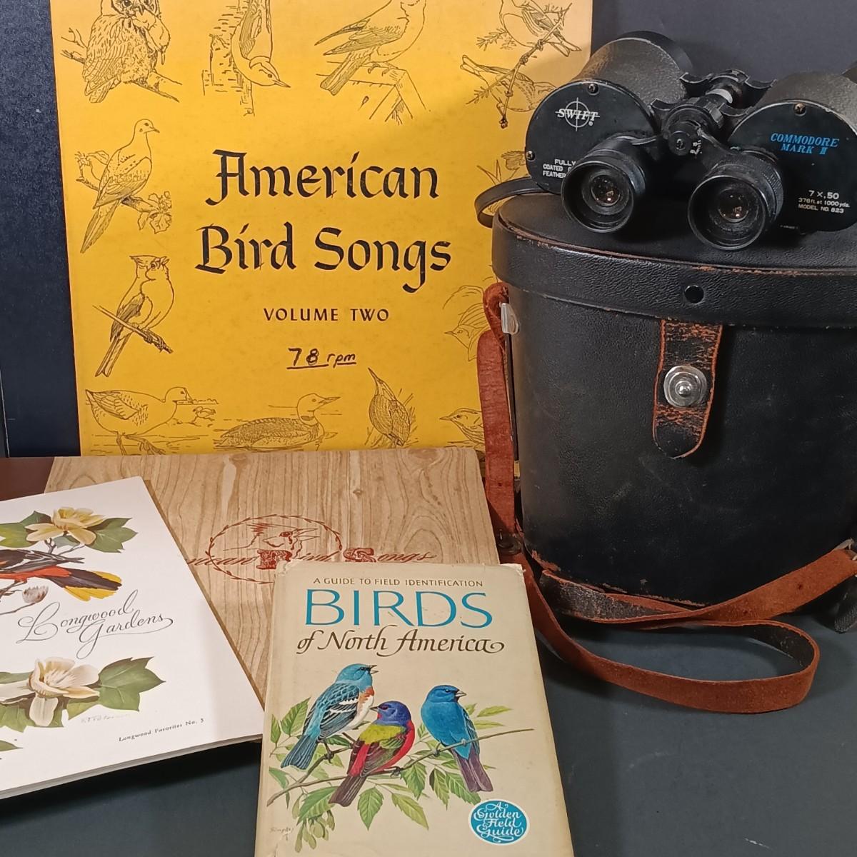 LOT 51: Swift 7x,50 and Burton 7x50 Binoculars with American Bird Songs Records & Bird Books