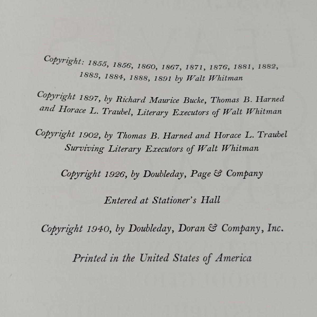 LOT 54: Walt Whitman's Leaves of Grass 1940 Doubleday Press Edition, 1953 First Edition Poetry and Life & More