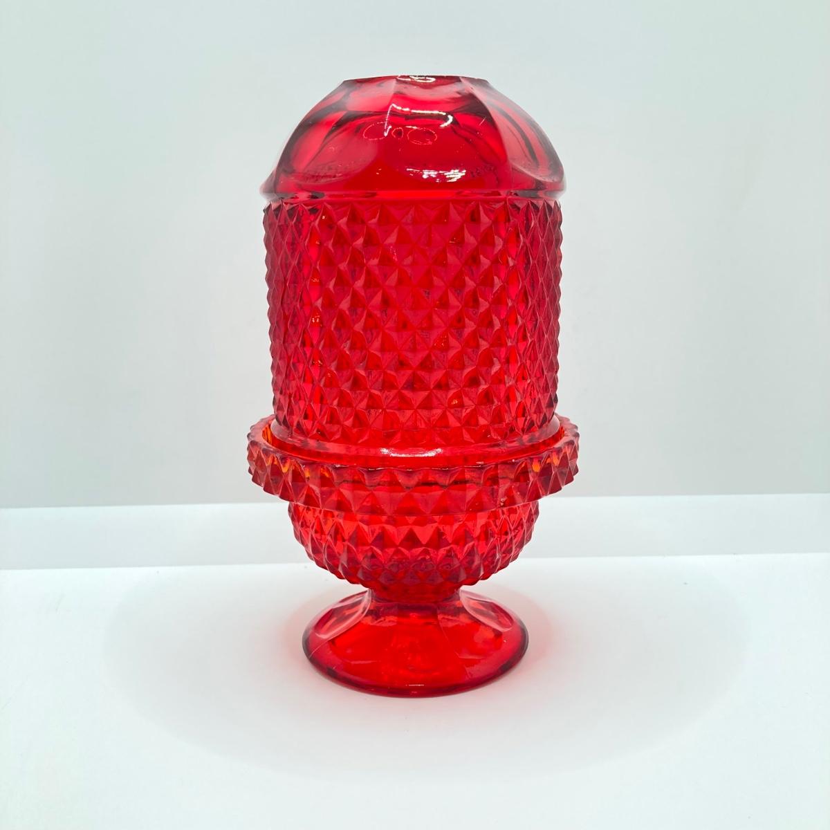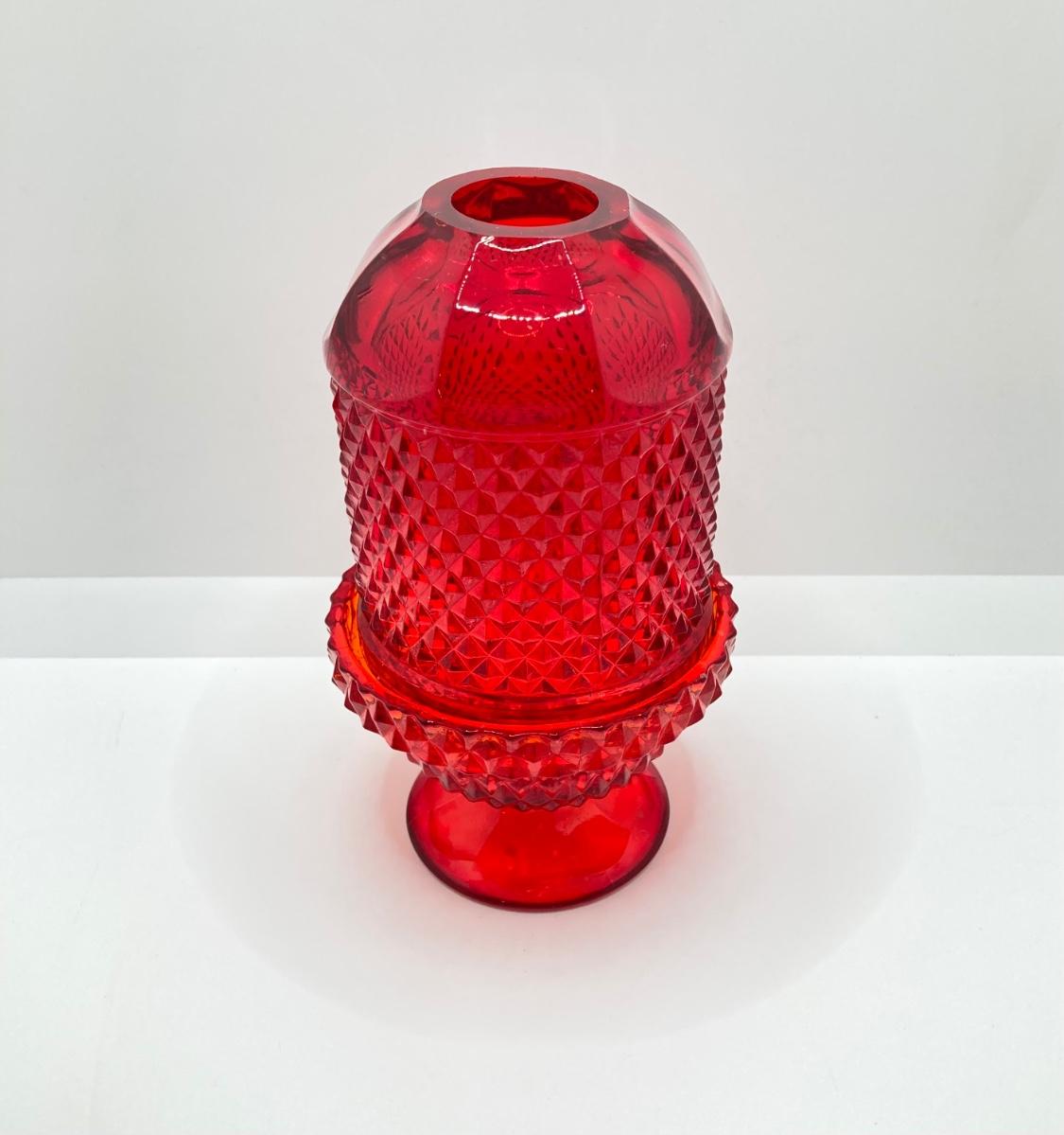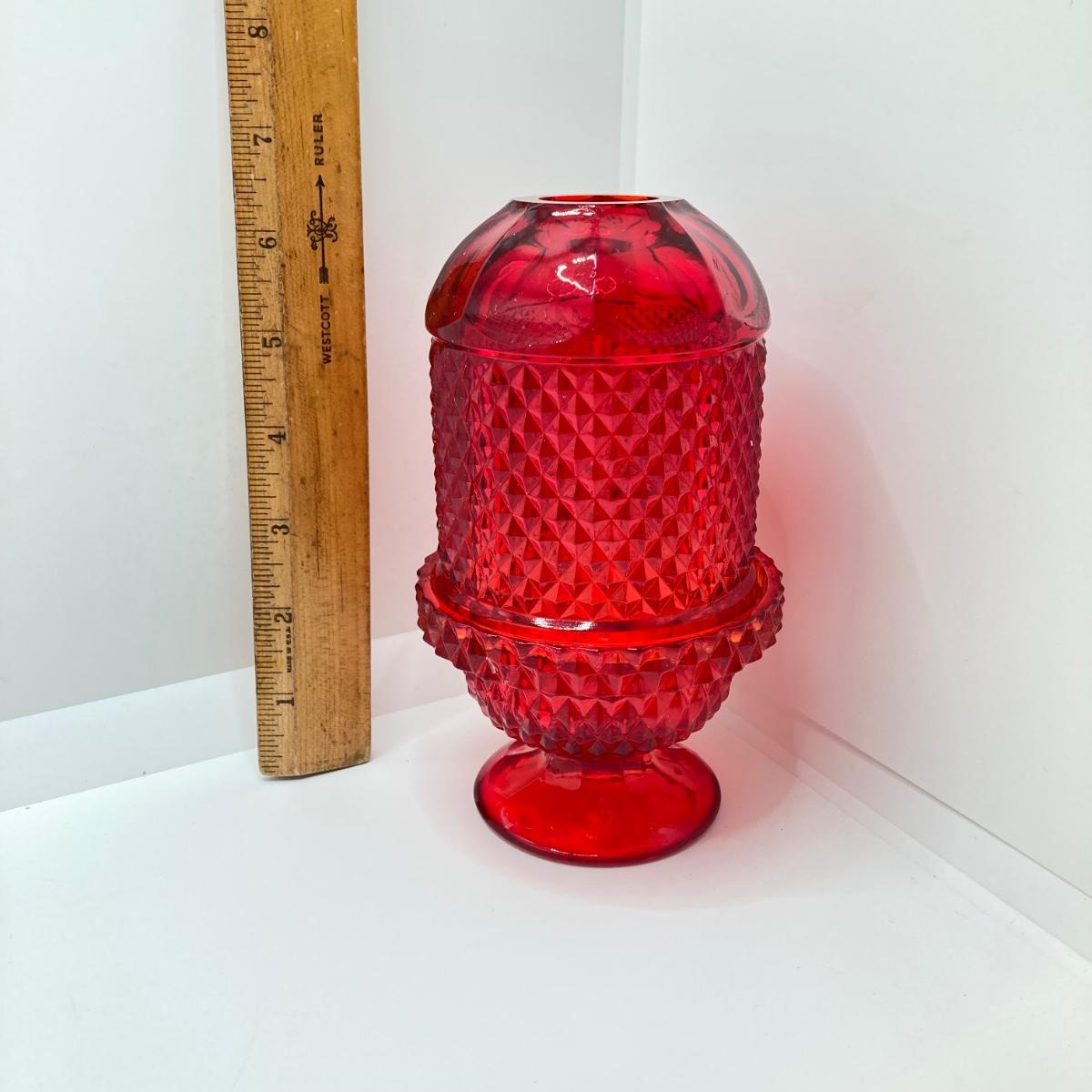 LOT 72: Beautiful Vintage Viking Glass Ruby Red Diamond Point Fairy Lamp