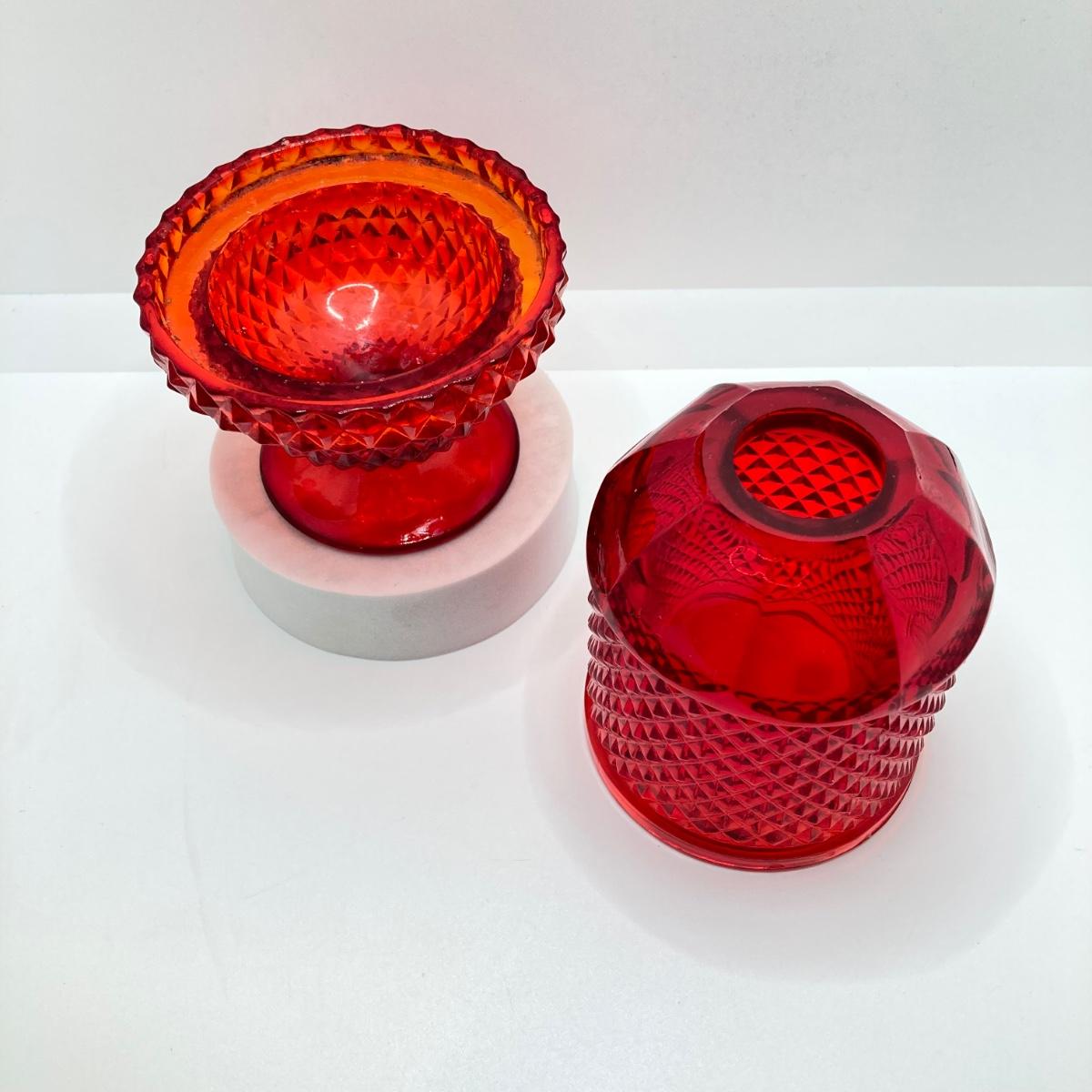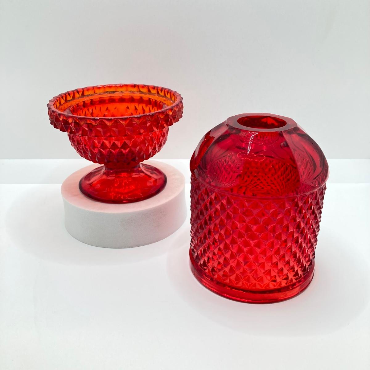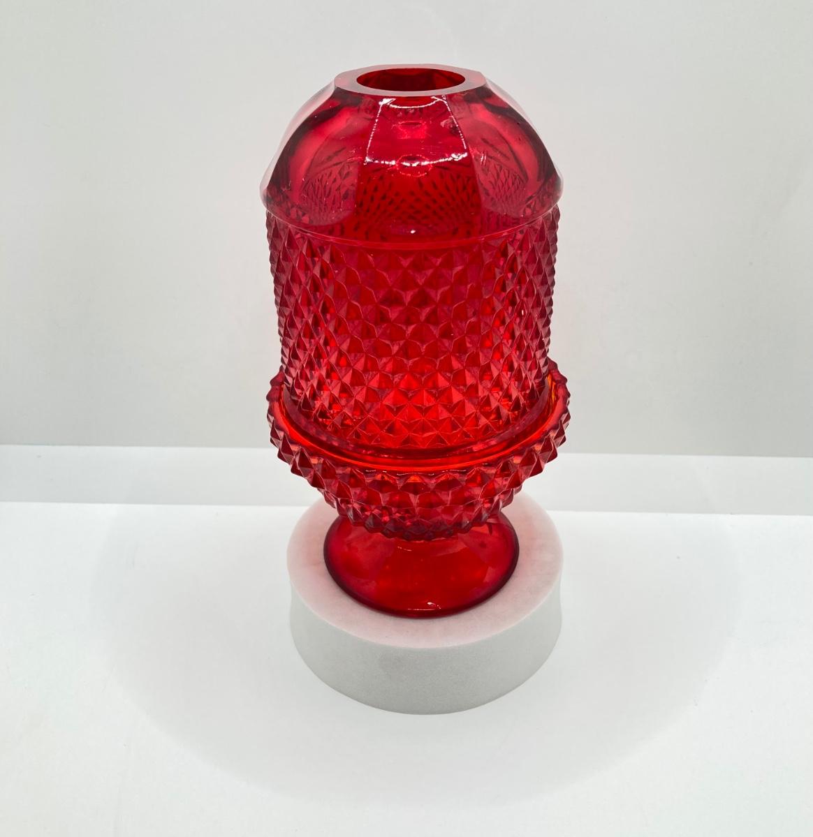 LOT 72: Beautiful Vintage Viking Glass Ruby Red Diamond Point Fairy Lamp