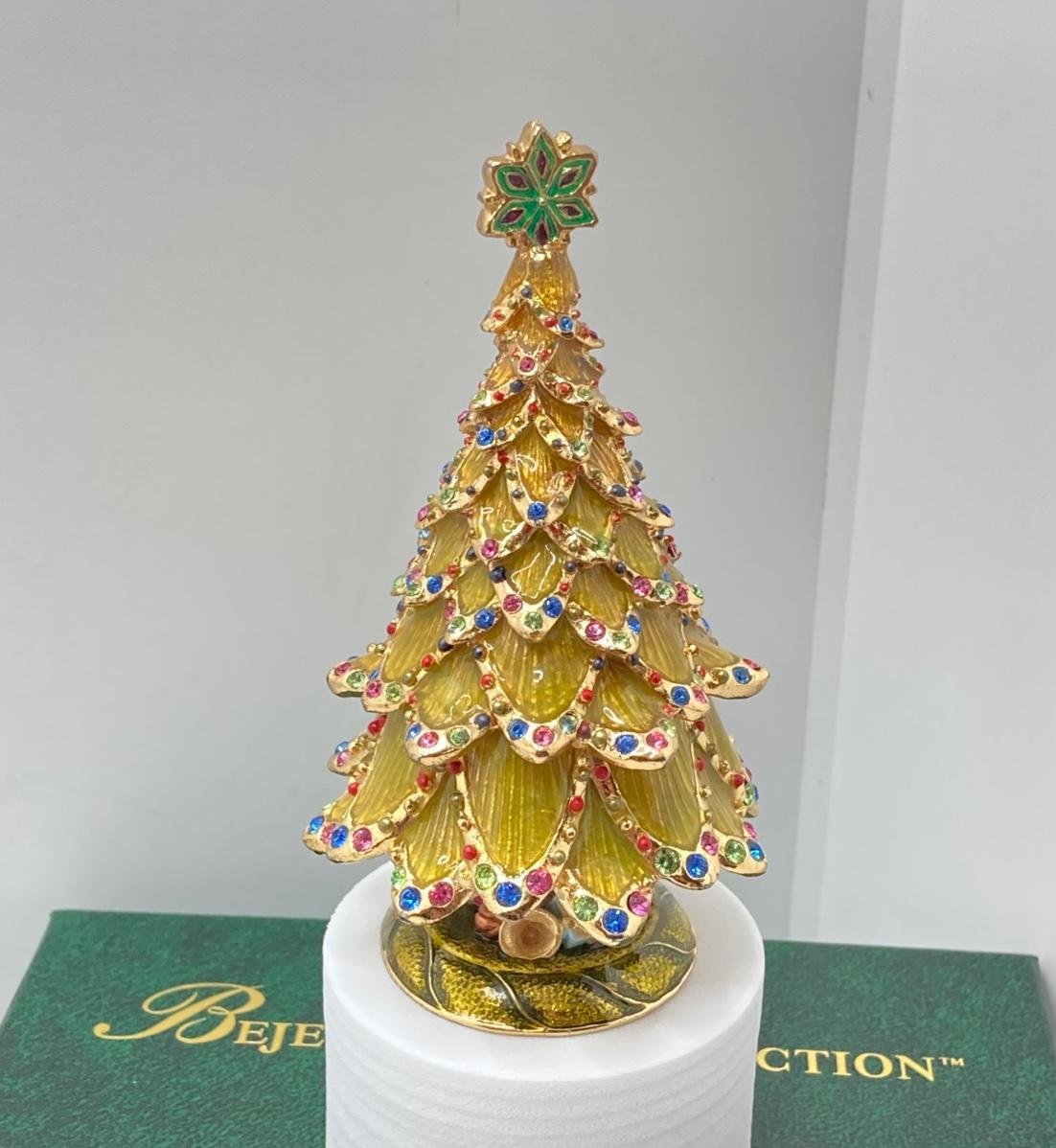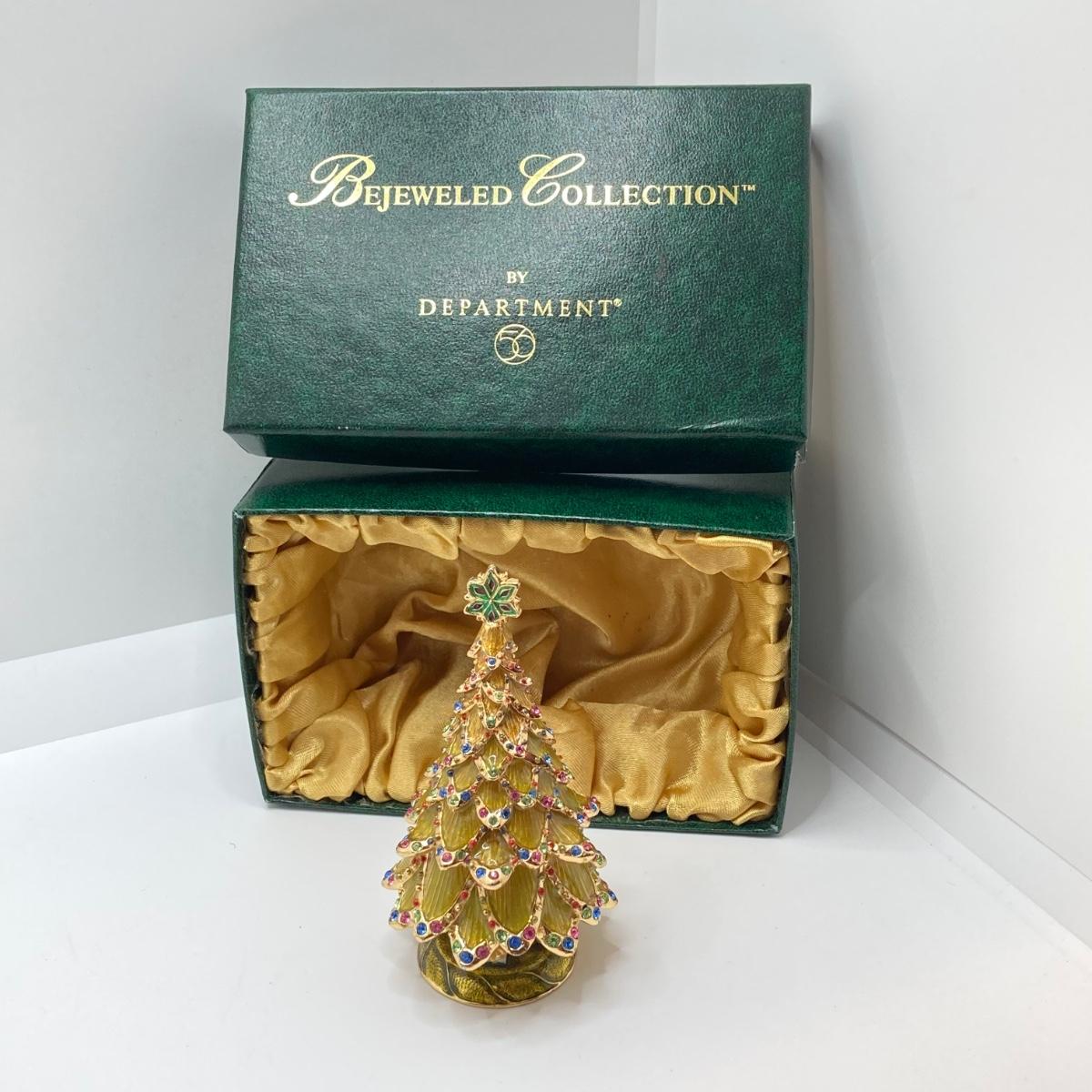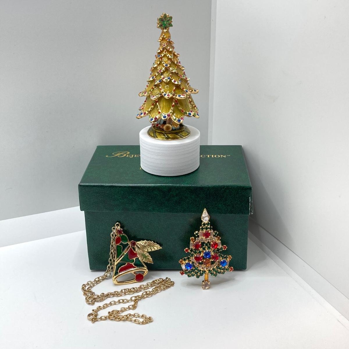 LOT 73: "Bejeweled Collection" by Department 56 Christmas Tree Box with Holiday Necklace and Pin