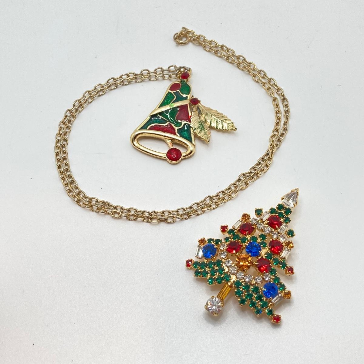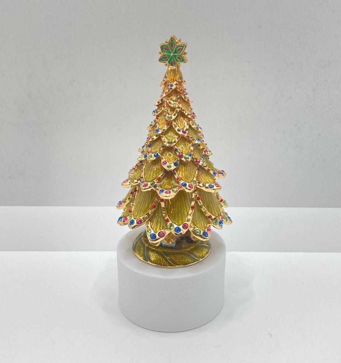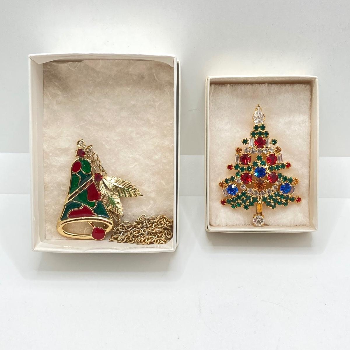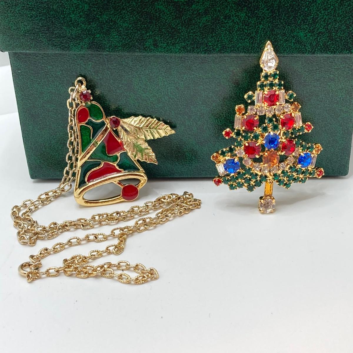 LOT 73: "Bejeweled Collection" by Department 56 Christmas Tree Box with Holiday Necklace and Pin