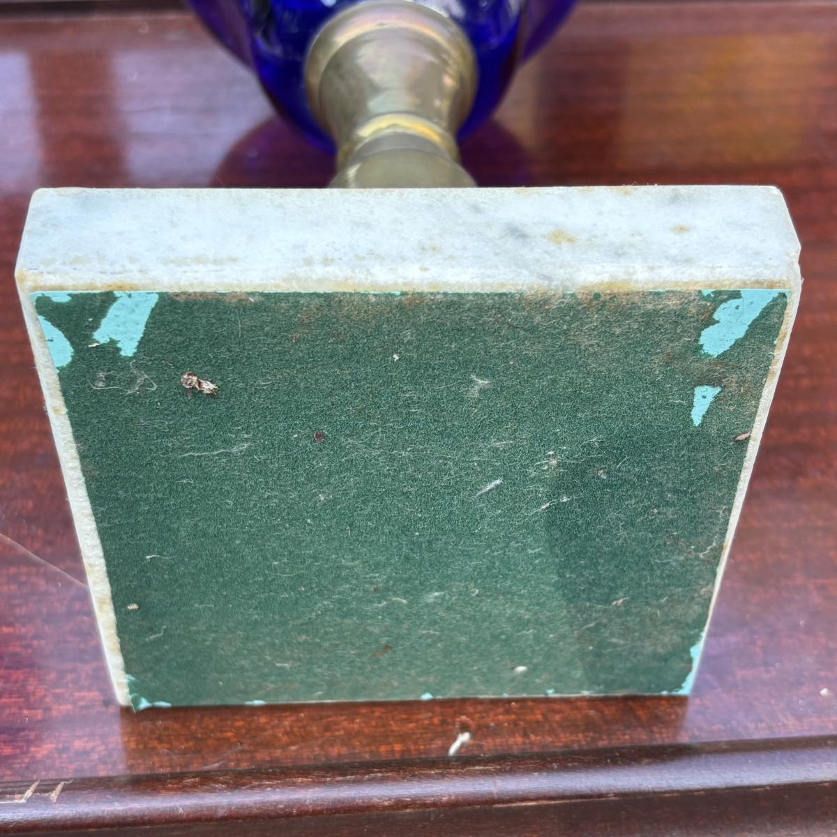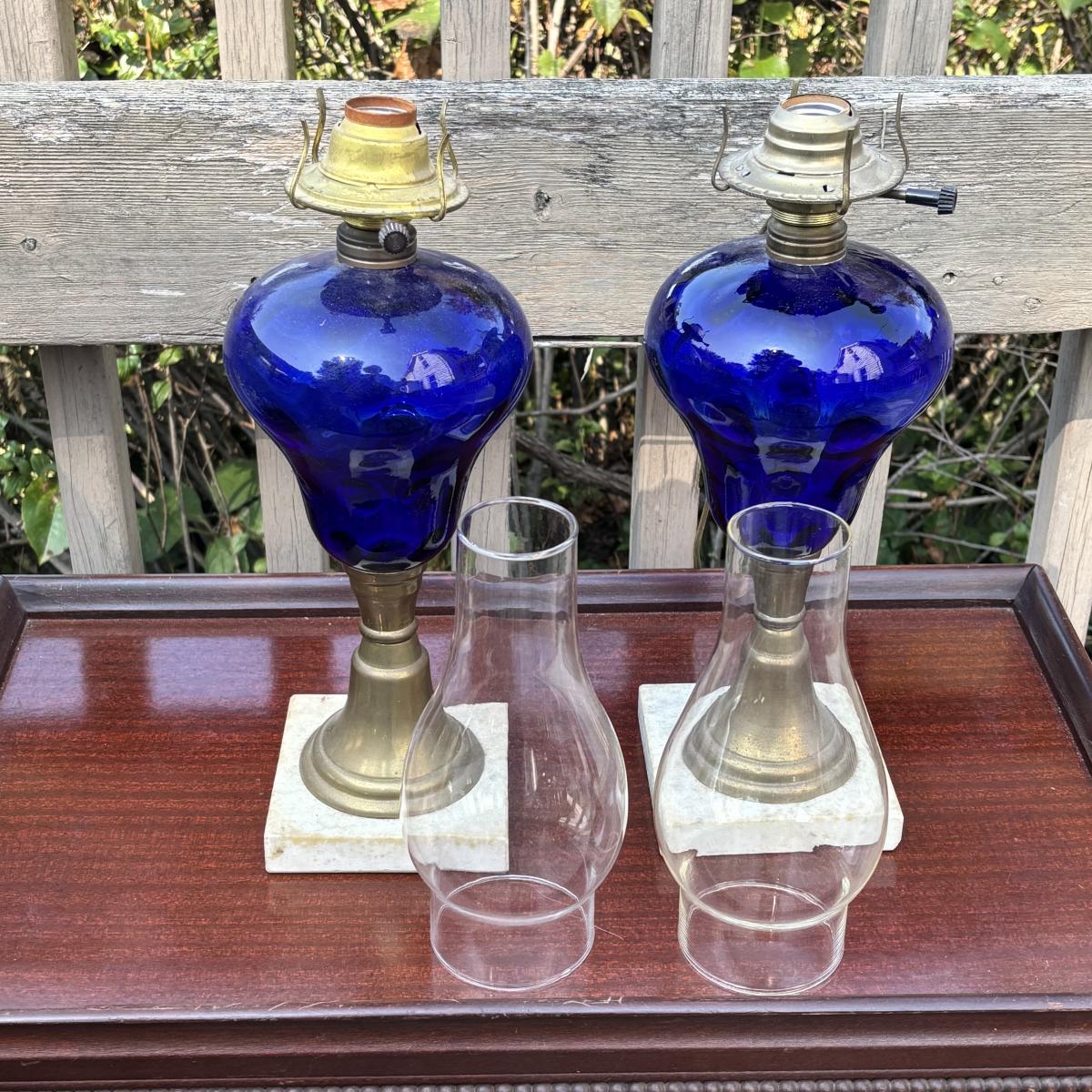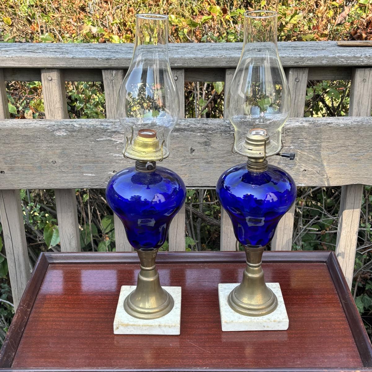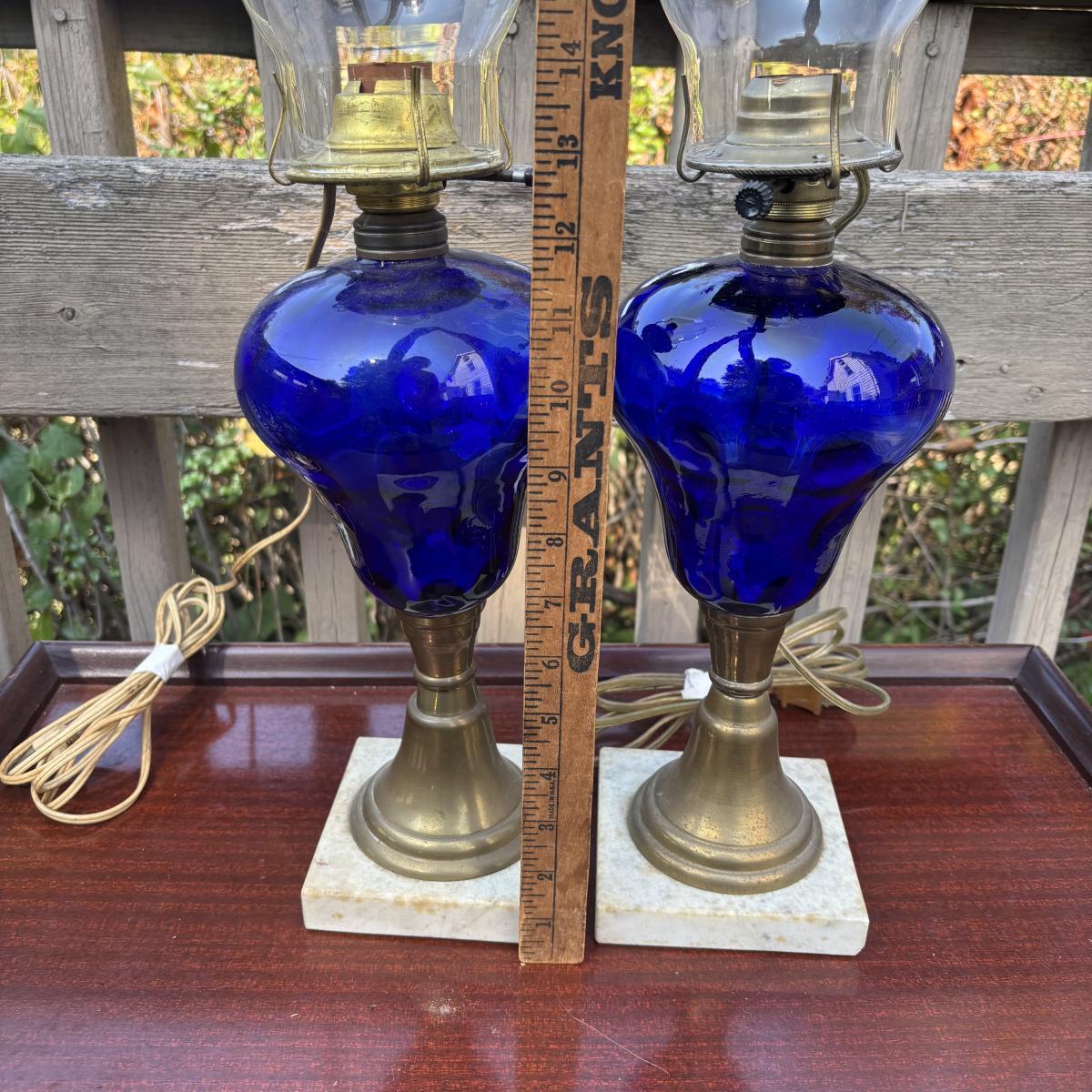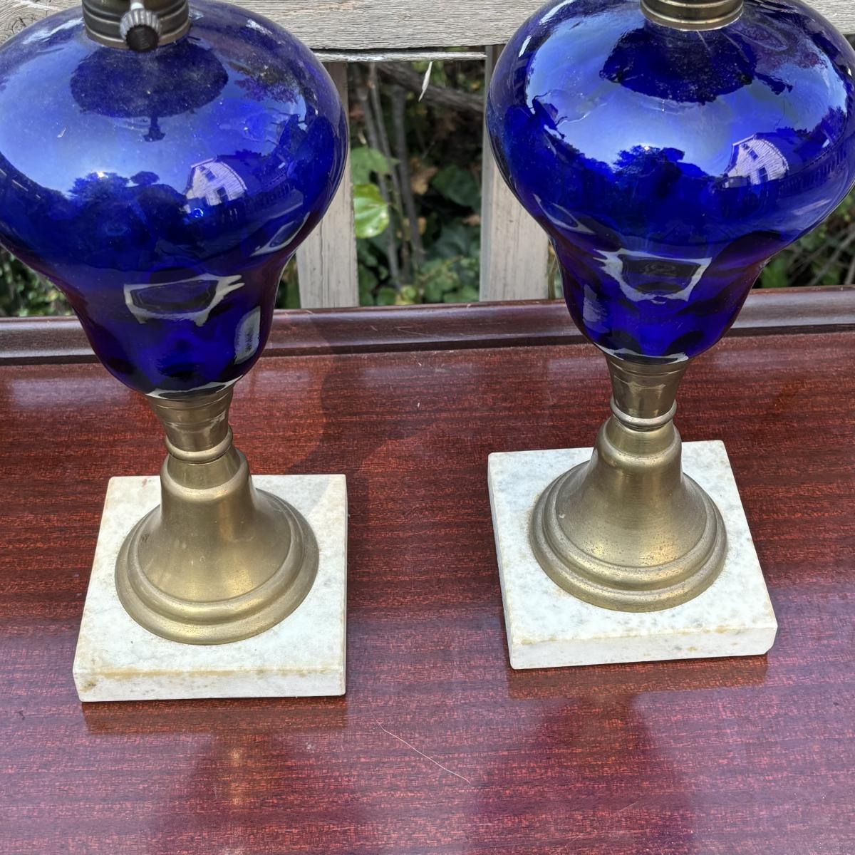 LOT 82: Beautiful Colbalt Blue Lamps on Marble Bases
