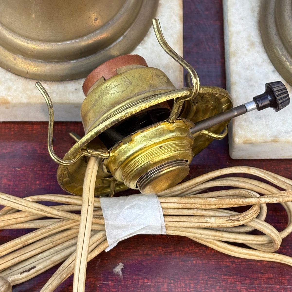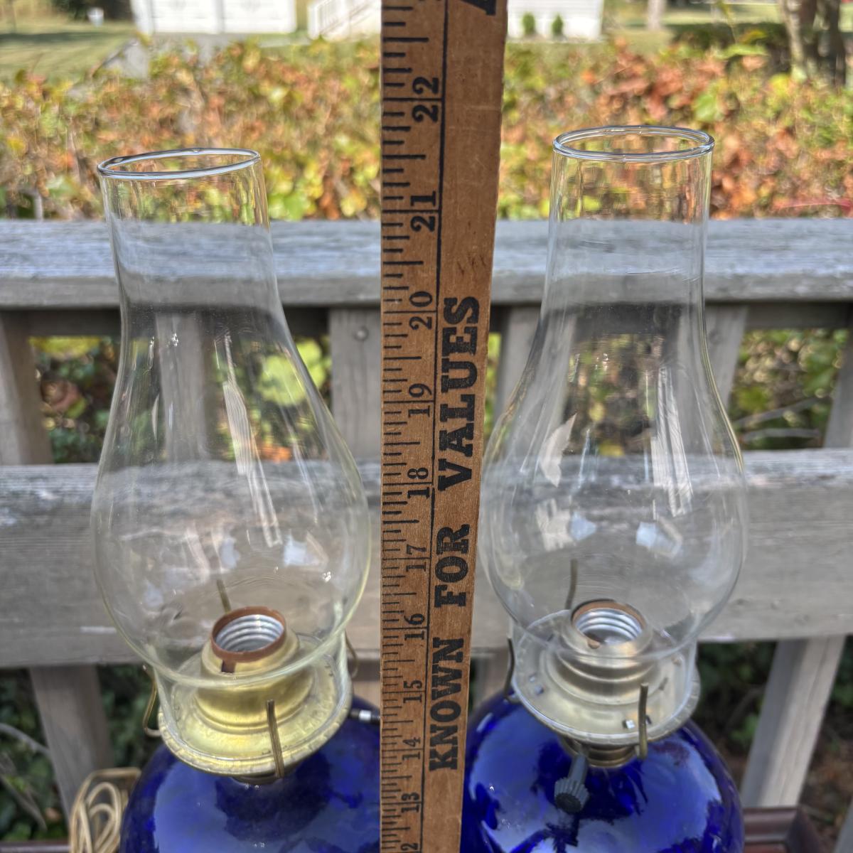 Lamps are electric however they are believed to be oil lamps (or parts of) as the electrical socket can be removed and replaced with the burner/wick as shown.
