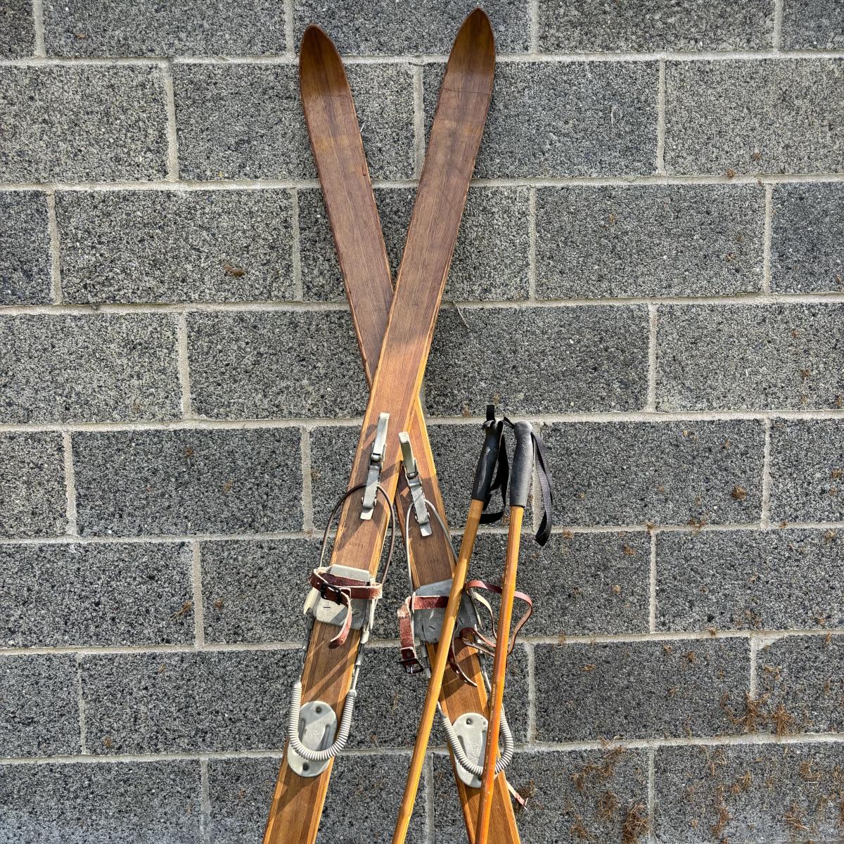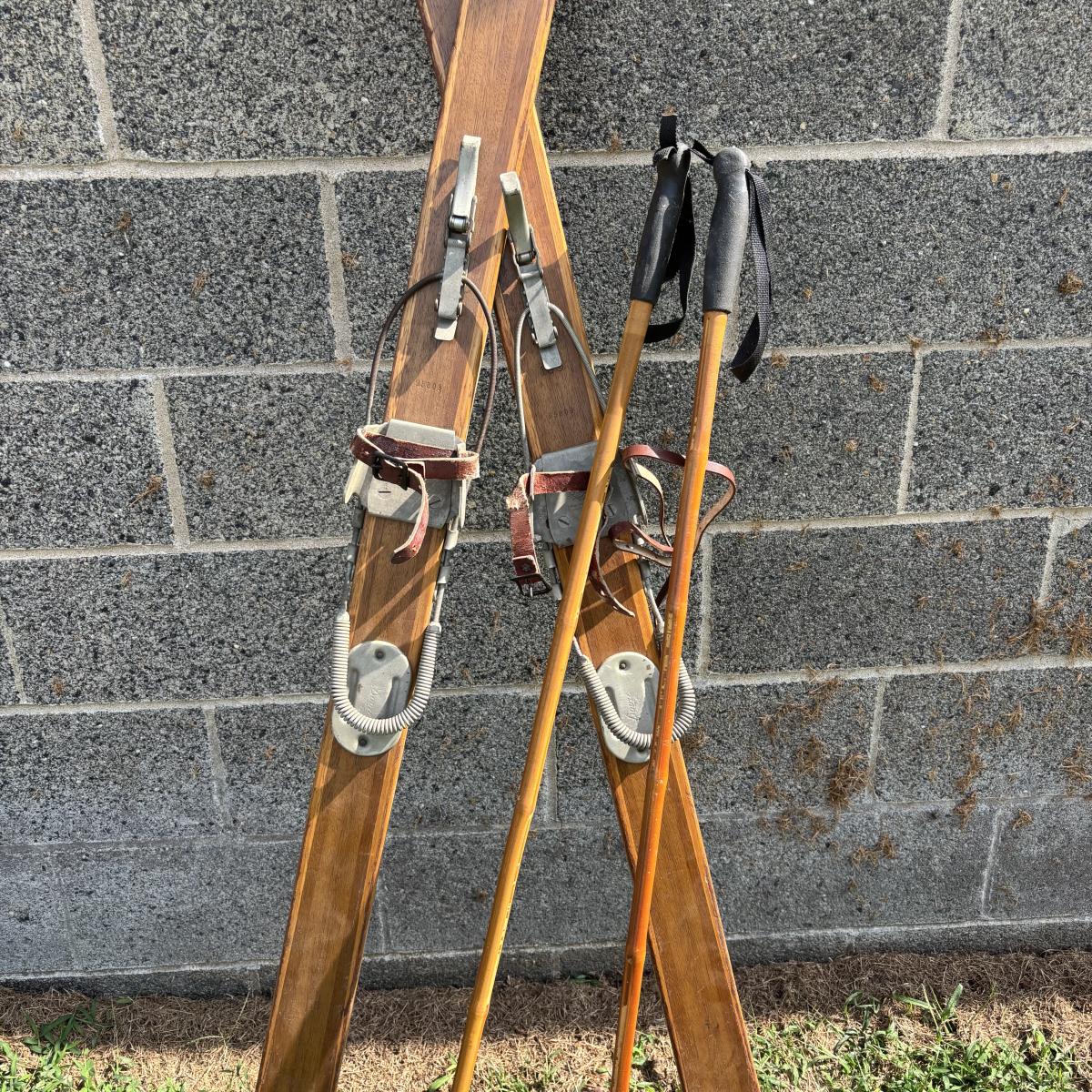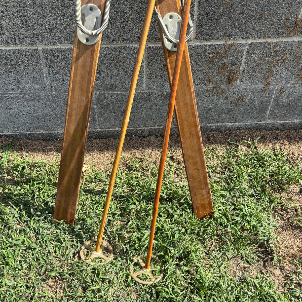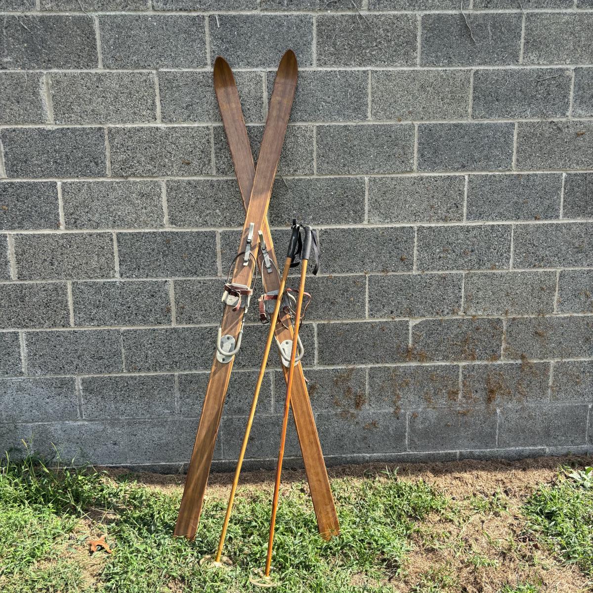 LOT 86: Vintage Wooden Skis w/Dovre Bindings and Bambo Ski Poles