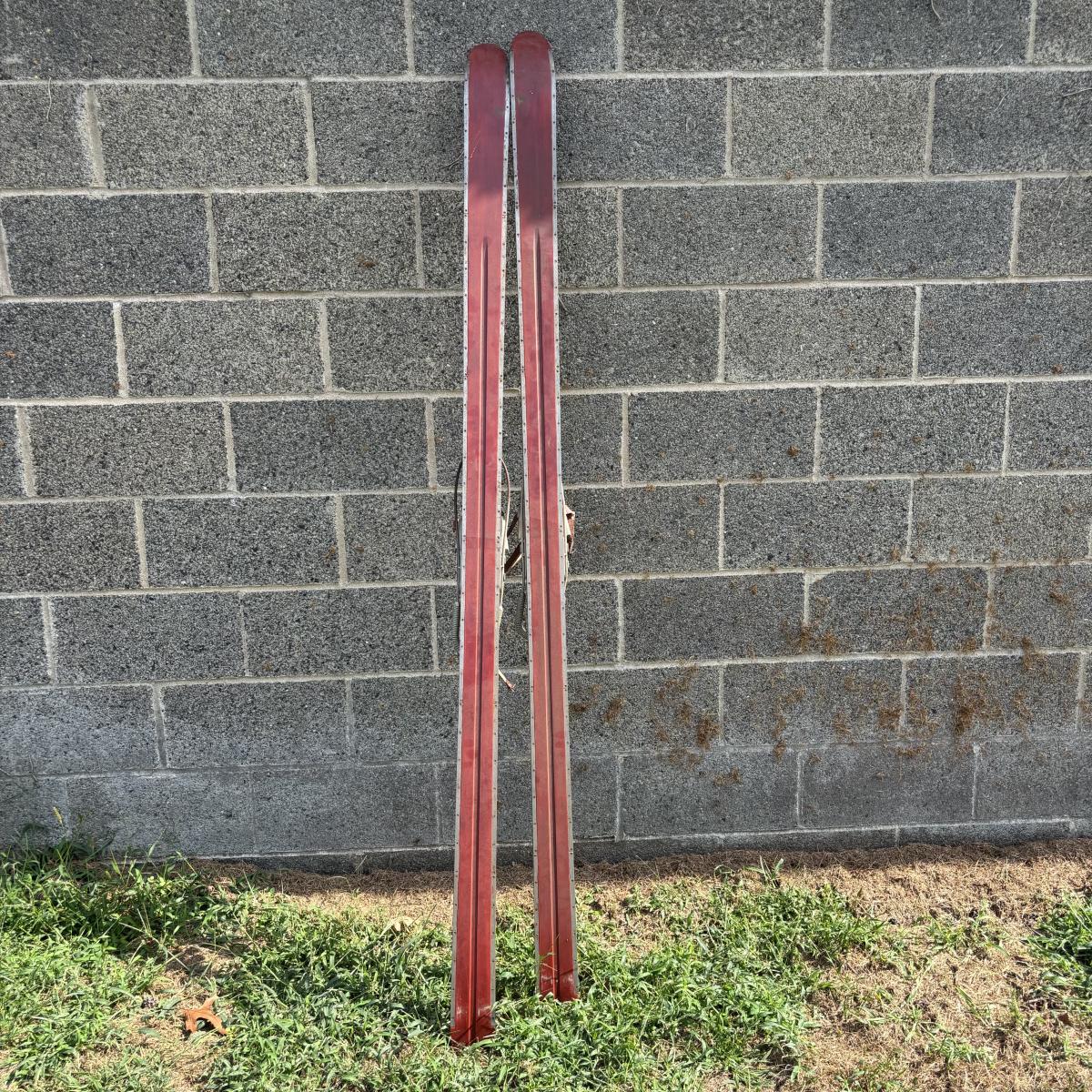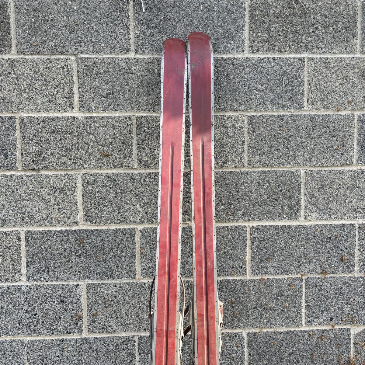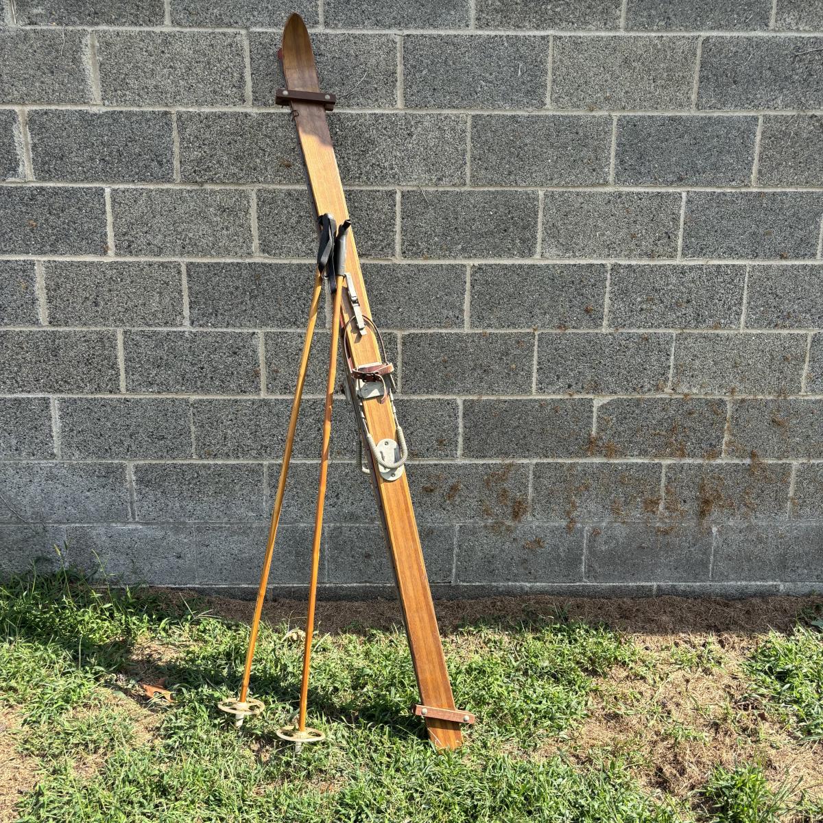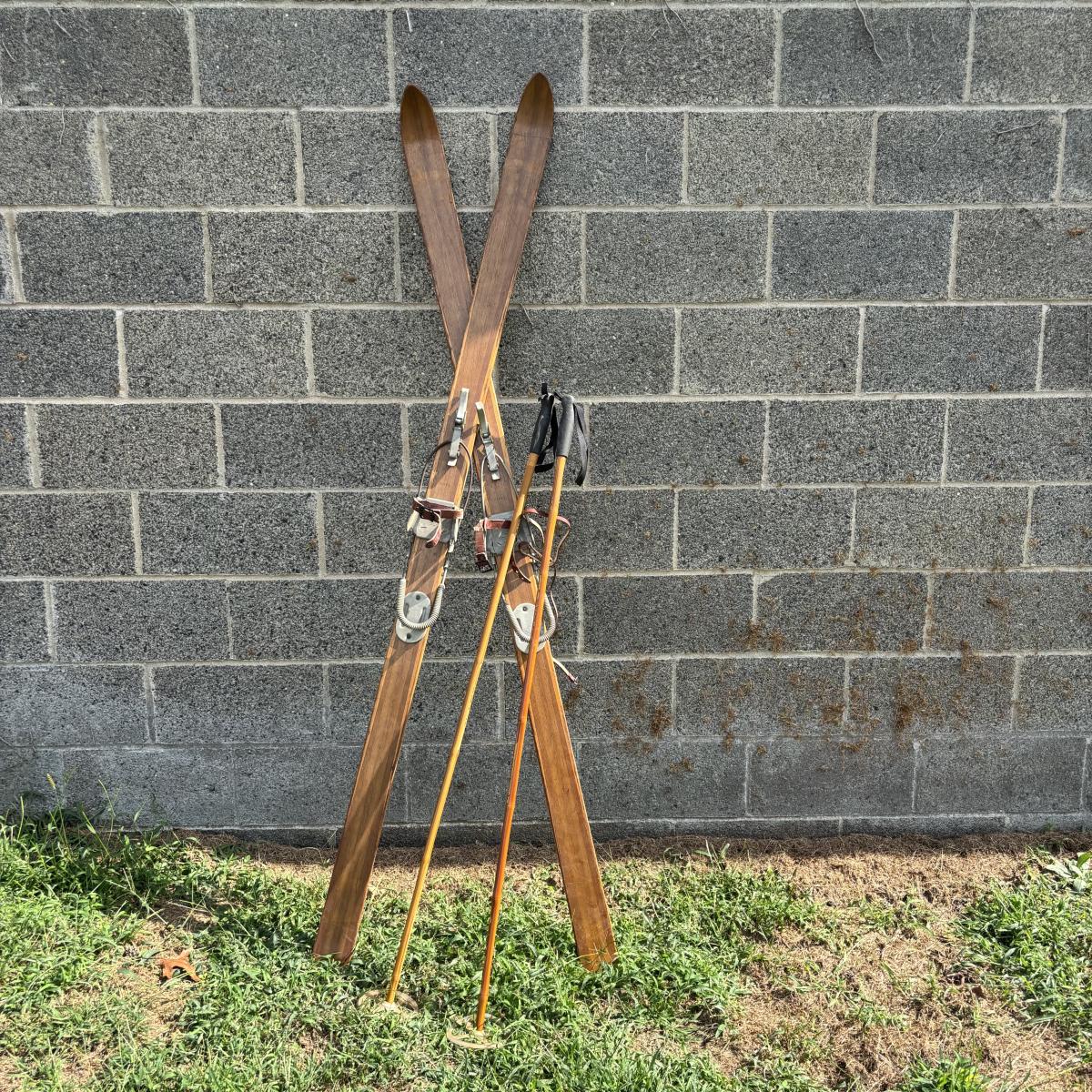 LOT 86: Vintage Wooden Skis w/Dovre Bindings and Bambo Ski Poles