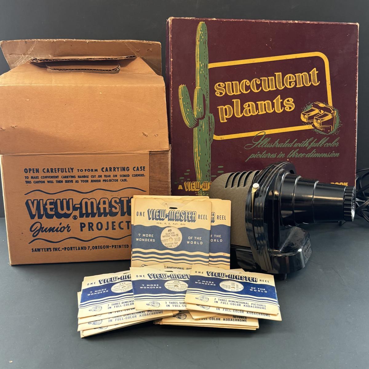 LOT 89: View Master Junior Projector & Wonders of the World Slides including Succulent Plants in Original Box-W. Taylor Marshall