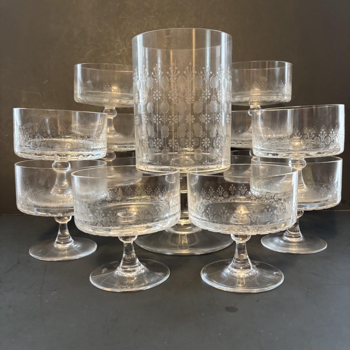 LOT 99: Vintage Rosenthal "Romance" Crystal Collection: Champagne/Sherbert Glasses (12), Trifle/Sherbert Bowl