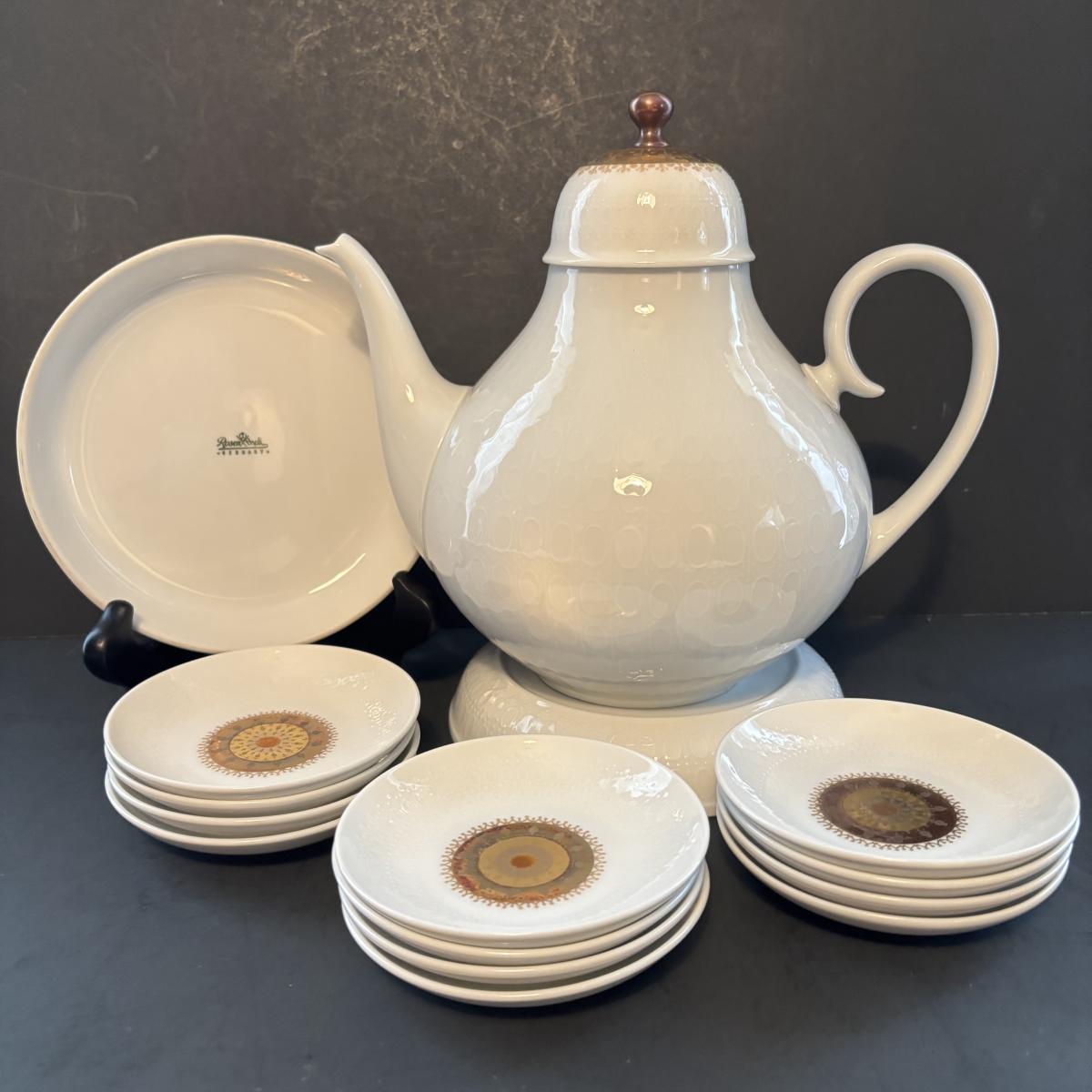 LOT 102: Vintage Rosenthal Romance Collection: Teapot, Studio Line Trinket Trays/Small Serving (12), Trivets (2)