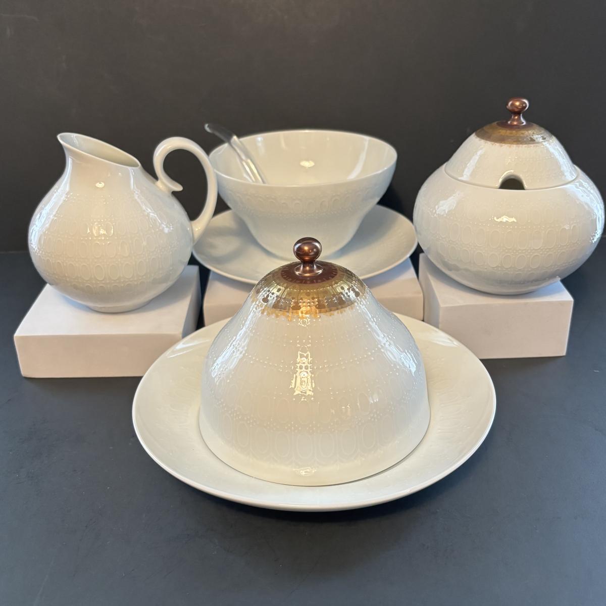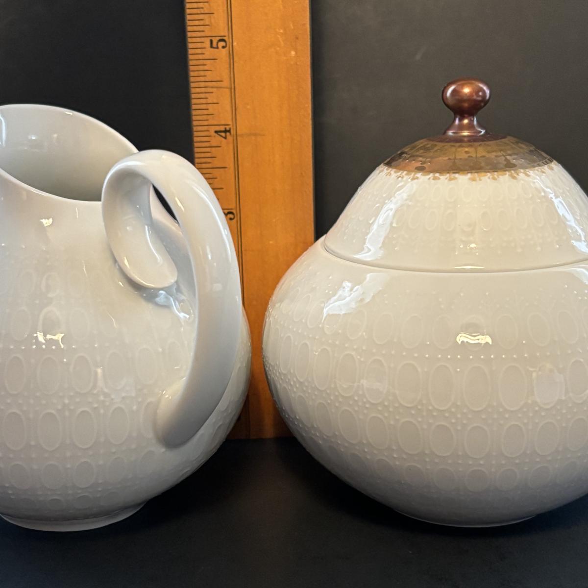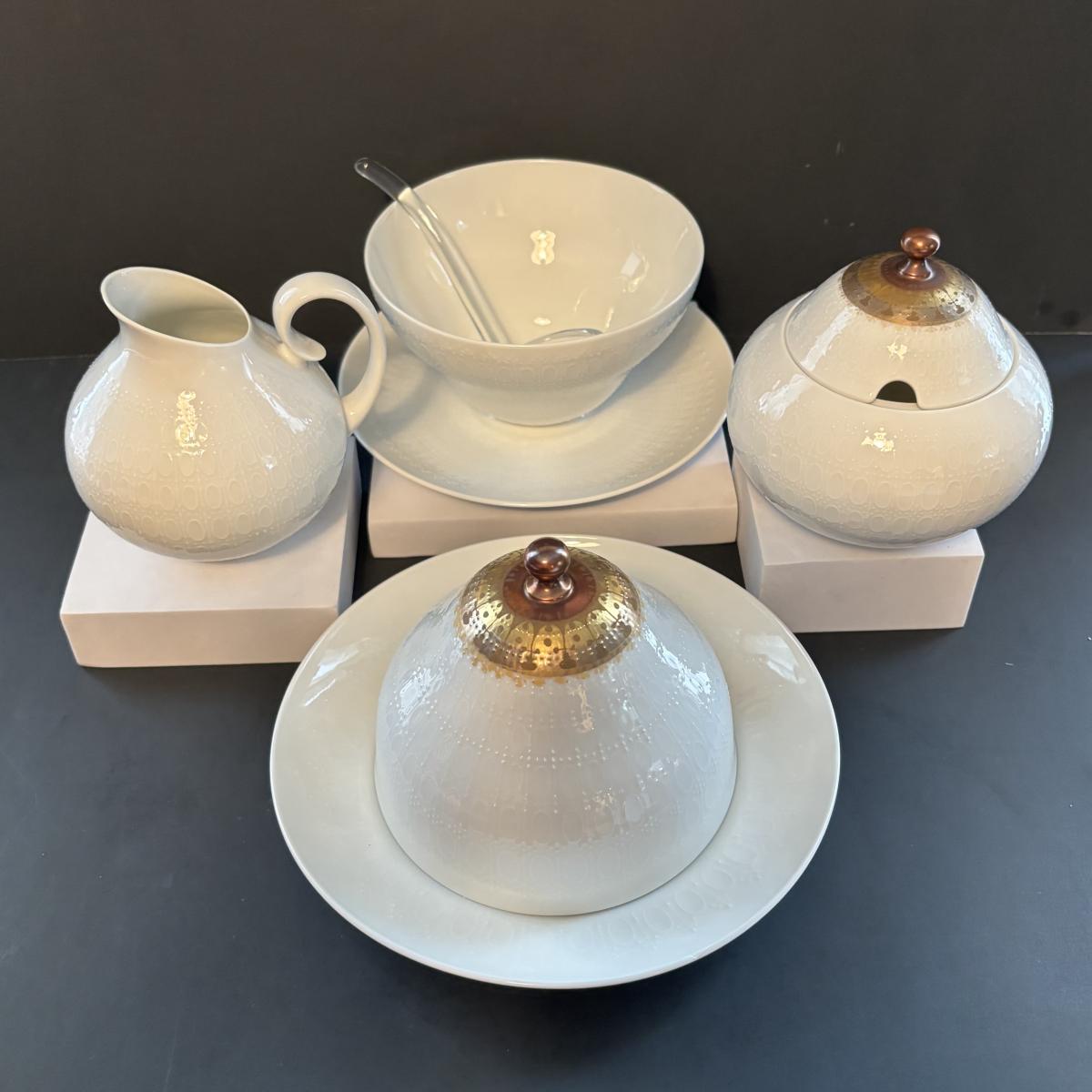 LOT 103: Vintage Rosenthal " Romance" Collection: Studio Line Cream & Sugar Set, Continental Cover Butter Dish & Gravy Boat w/Attached Underplate