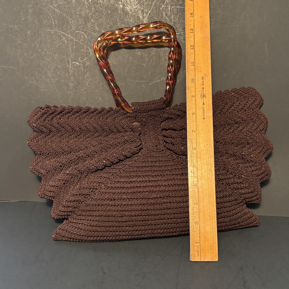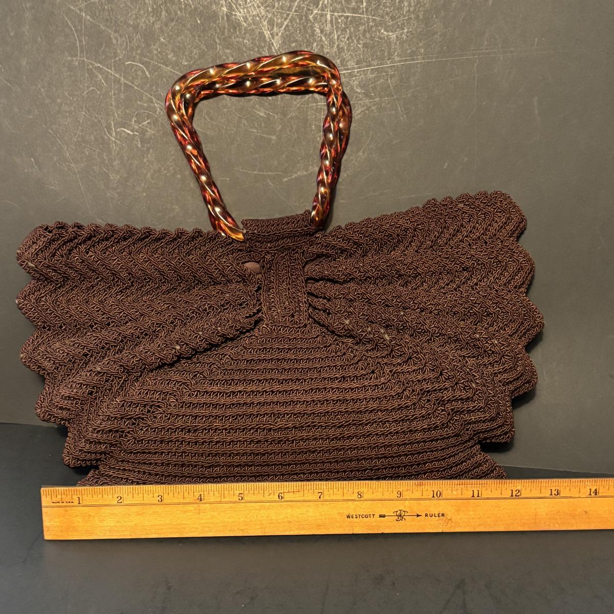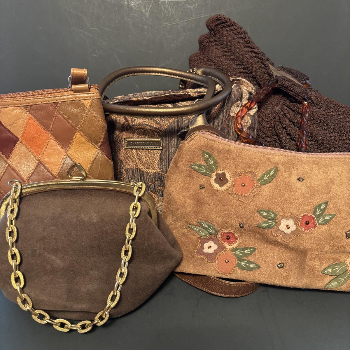LOT 108: Caribbean Bag Joe, Patchwork Crossbody Bag, Cappelli Straworld Light Brown Suede Purse, Faux Suede Purse, Brown Crochets Bag w/Lucite Handles