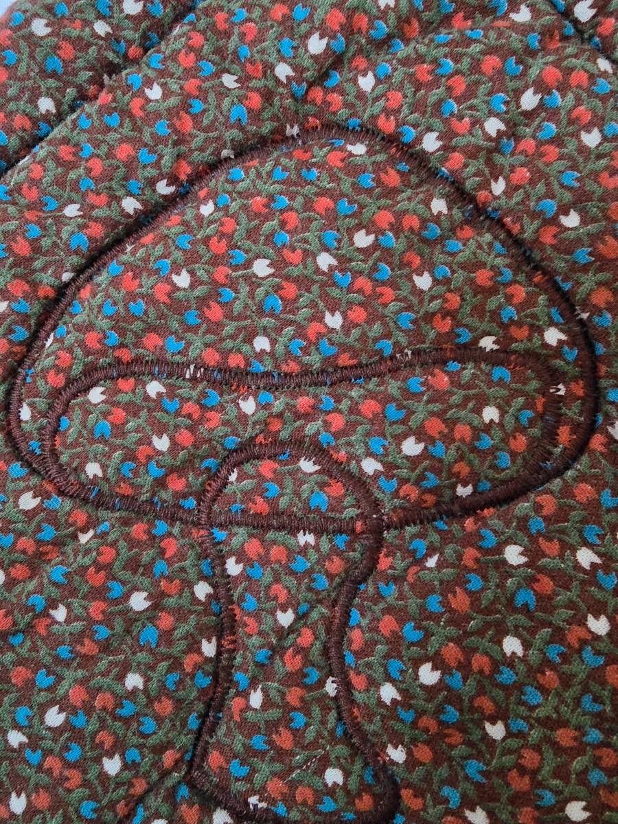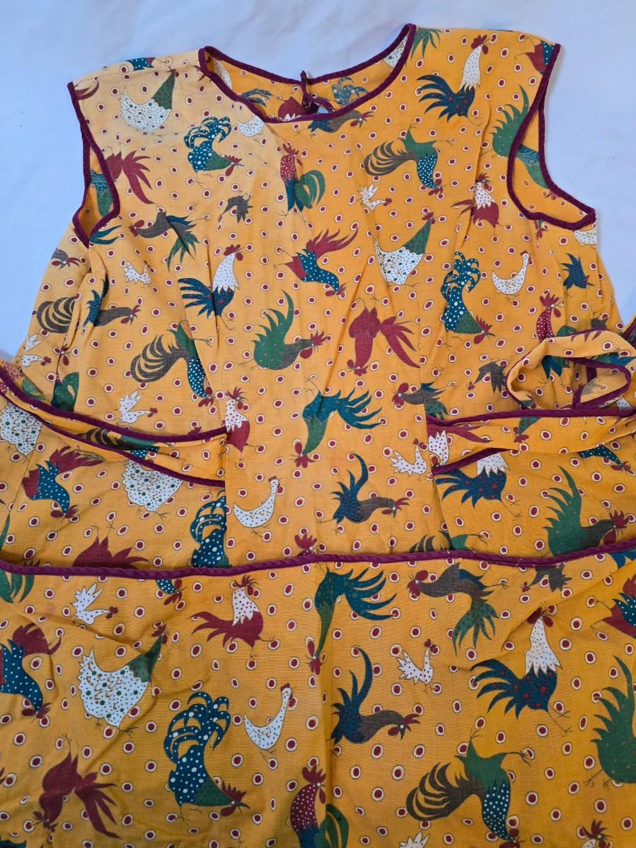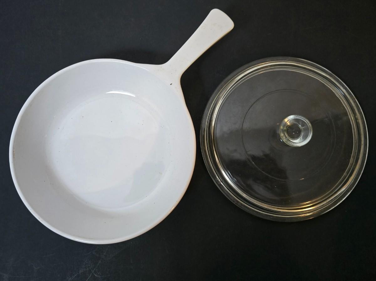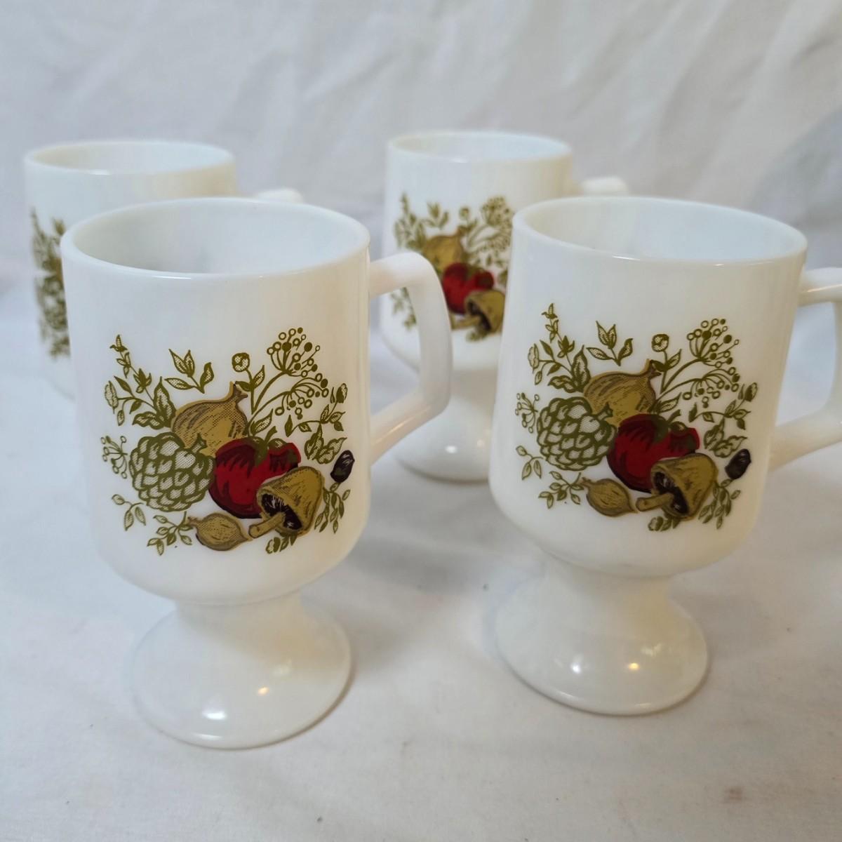 LOT 121: Retro Mushroom Decor with Corning Ware, Pyrex and Milk Glass Mugs, and Aprons