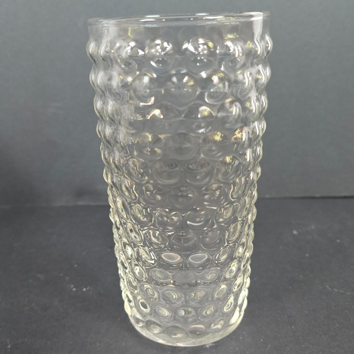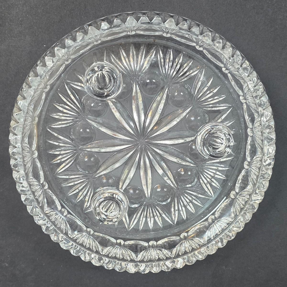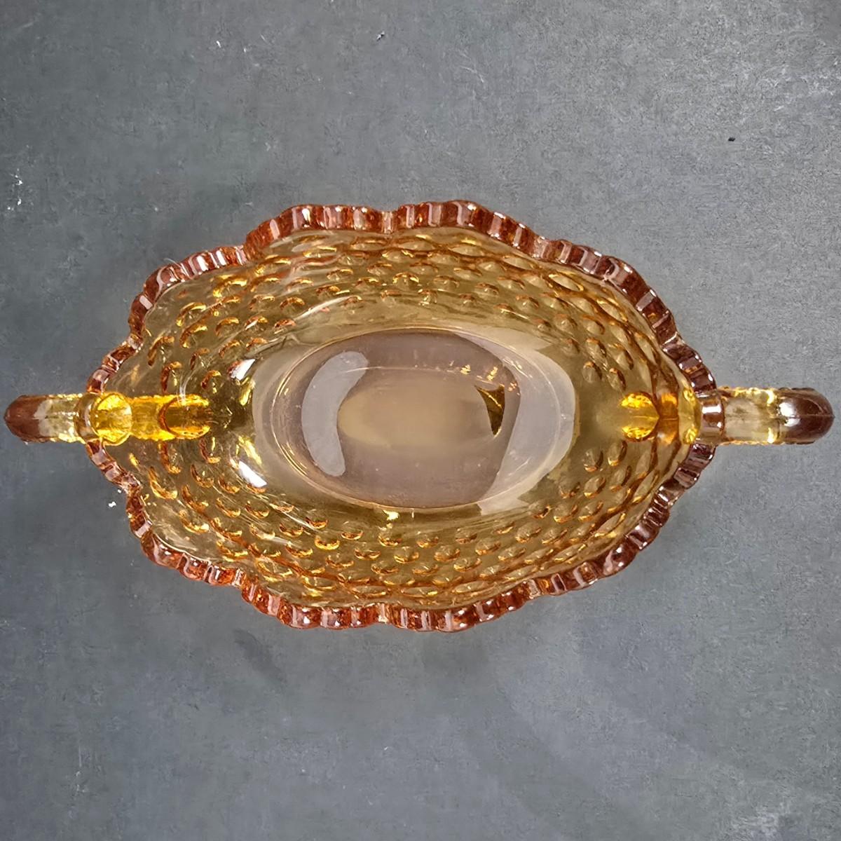 LOT 133: Vintage Hobnail Duncan Miller Footed Clear Glass Ball Vases, Amber Hobnail Candy Dish and Crystal 3 Taper Candle Holder