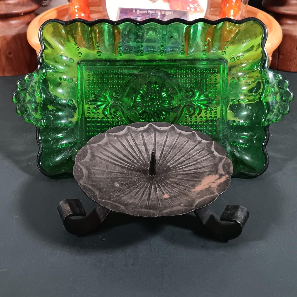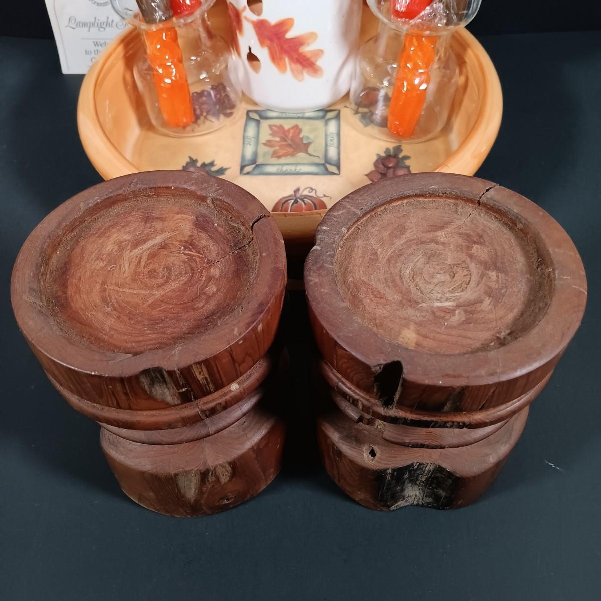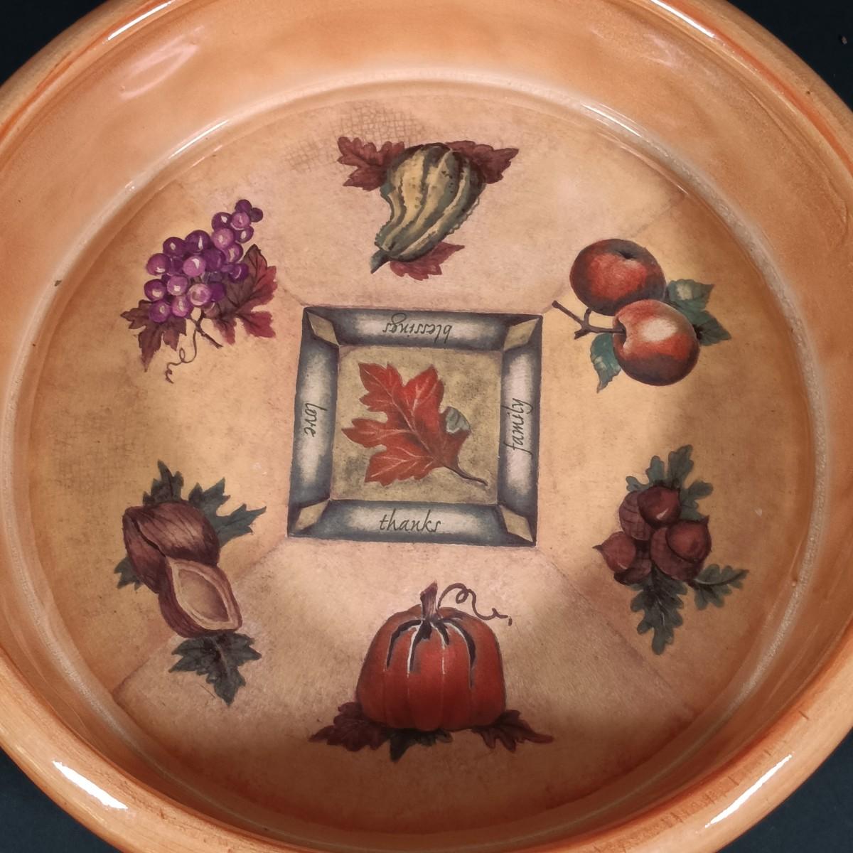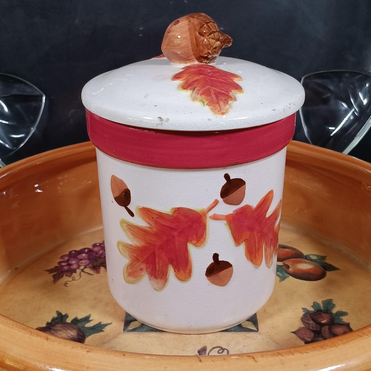 LOT 140: Fall Decor and More with Candles, Candle Holders, Ceramic Serving Bowl, Glass "leaf" Platter