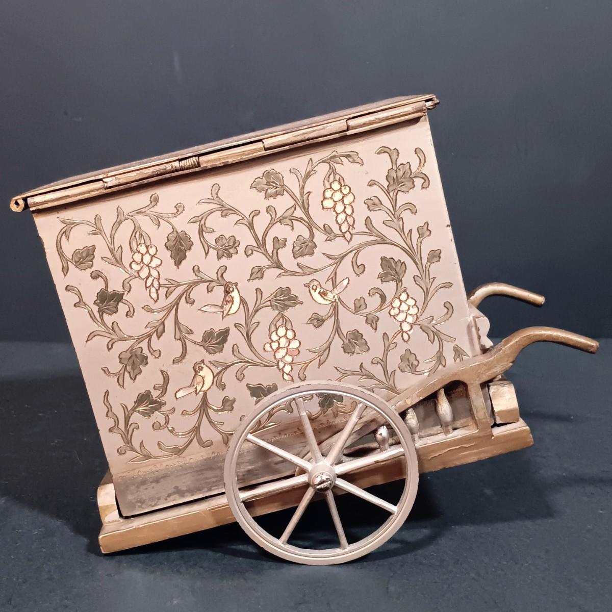 LOT 156: Thorens Swiss Engraved Metal Organ Grinder Music Box