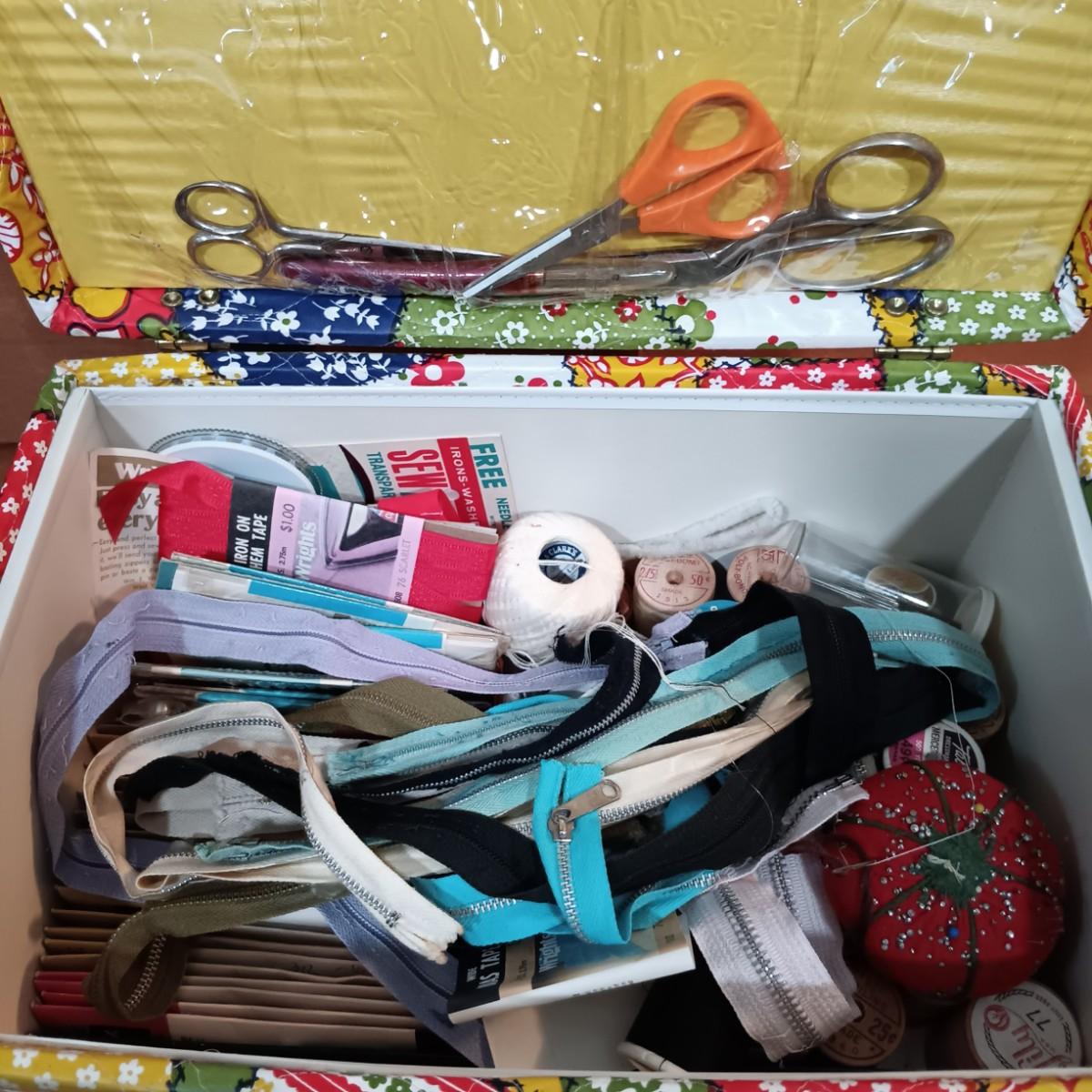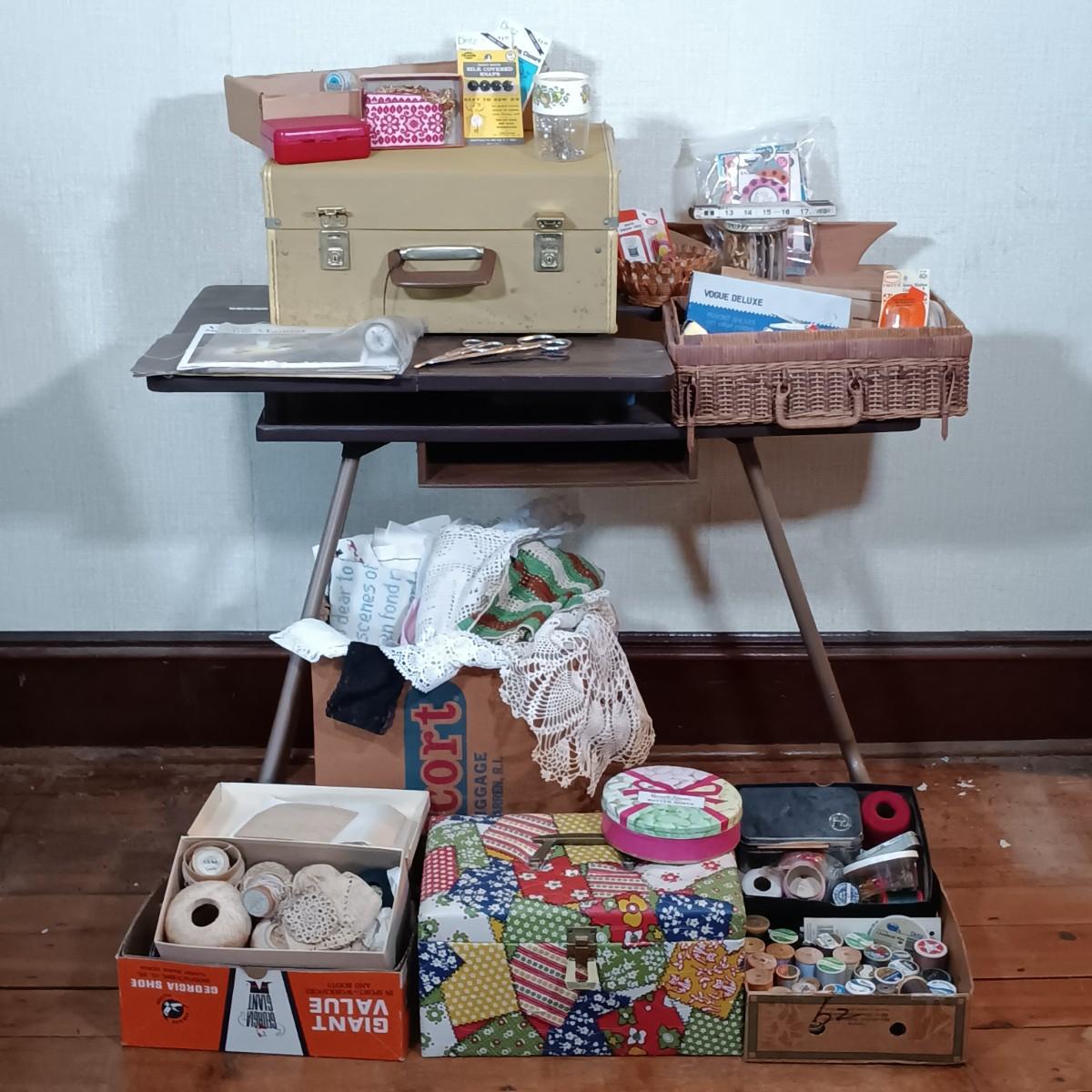 LOT 160: Vintage Husqvarna Viking Sewing Machine, Sewing Table, Sewing Notions & More