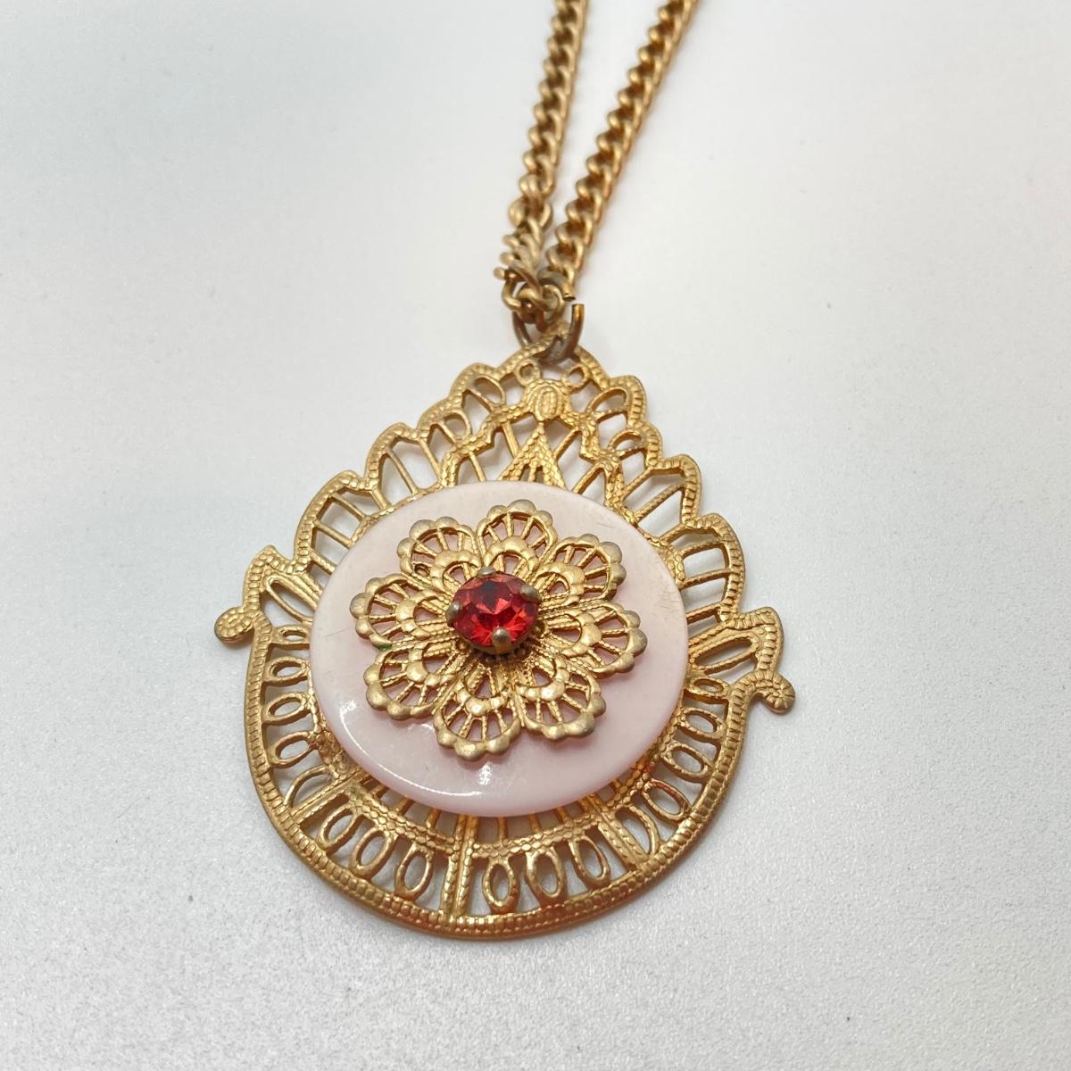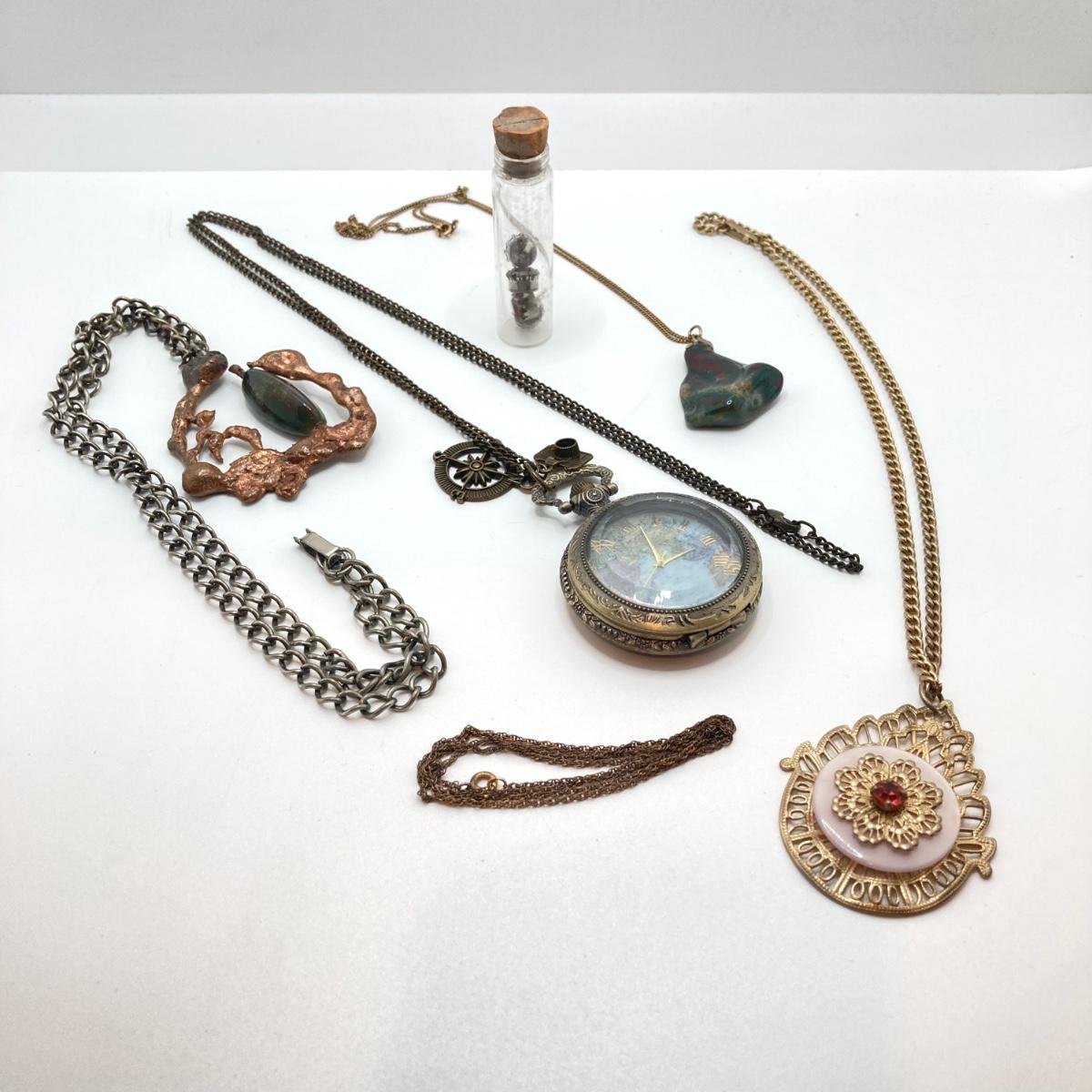 LOT 164: Pendant Watch and Necklaces, Gold Filled Chain and Vintage Red Stone Buttons