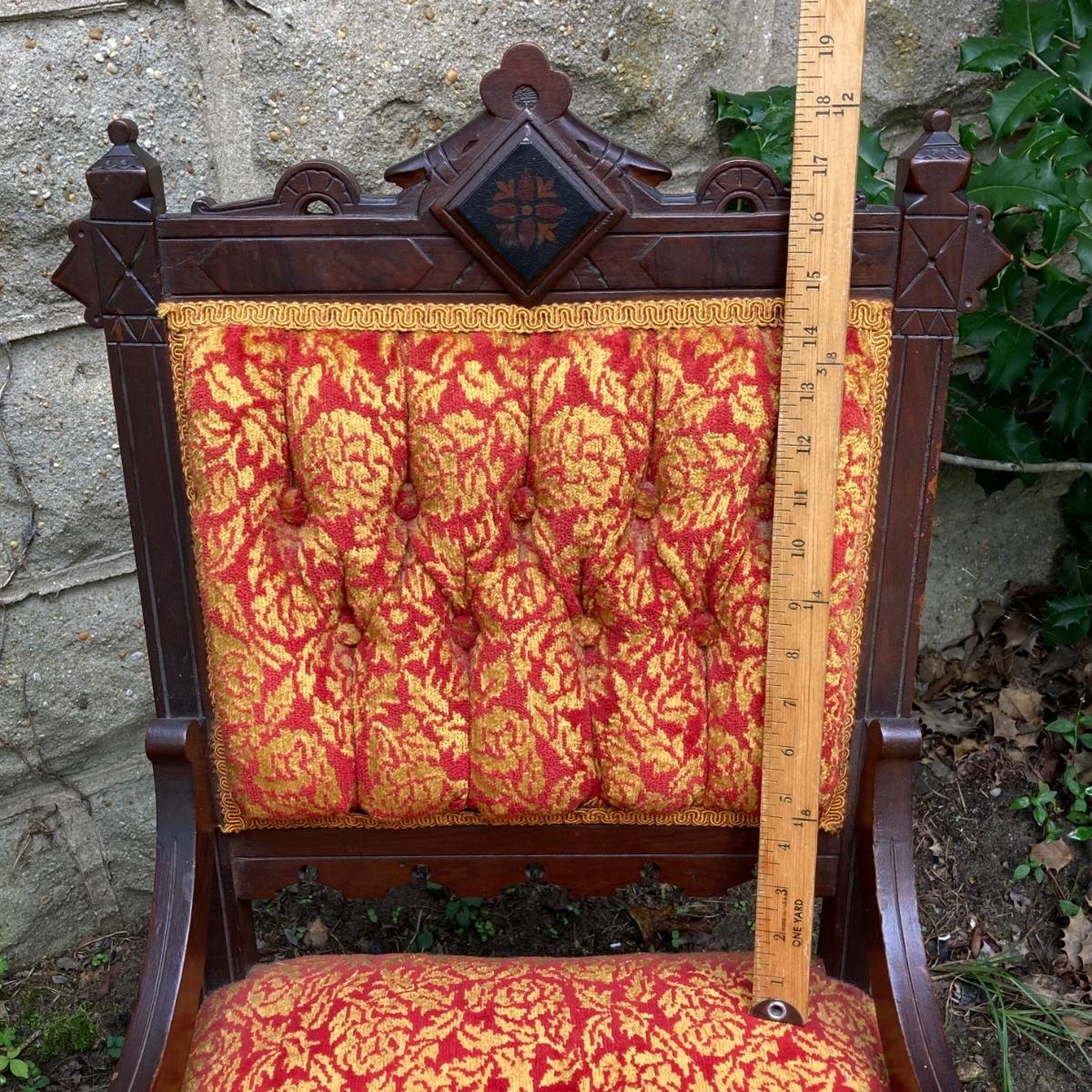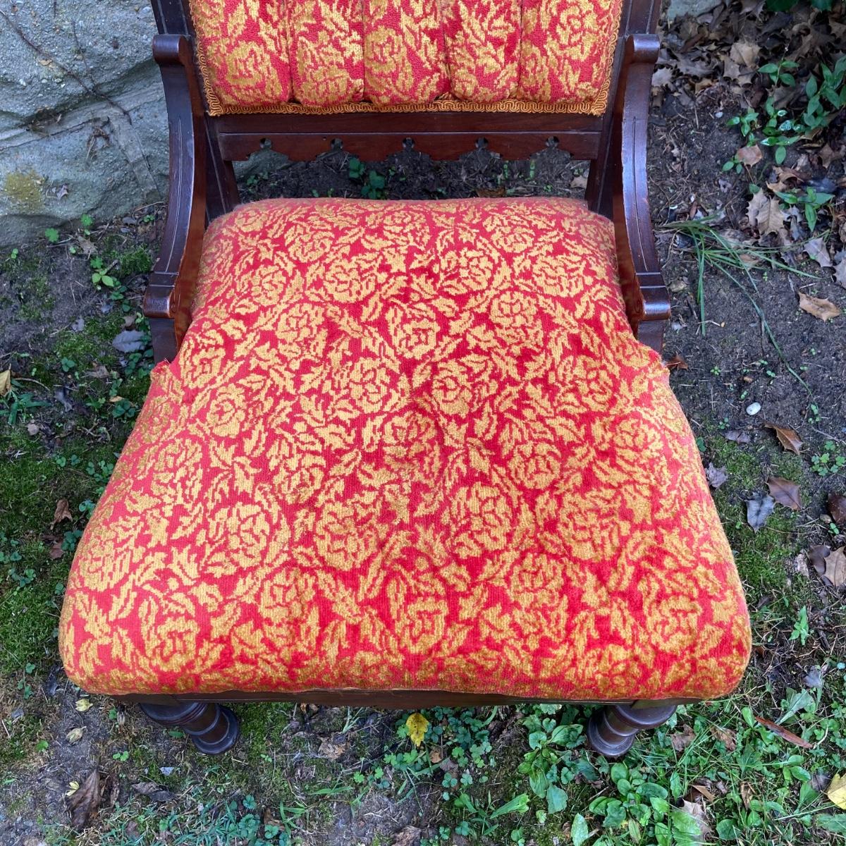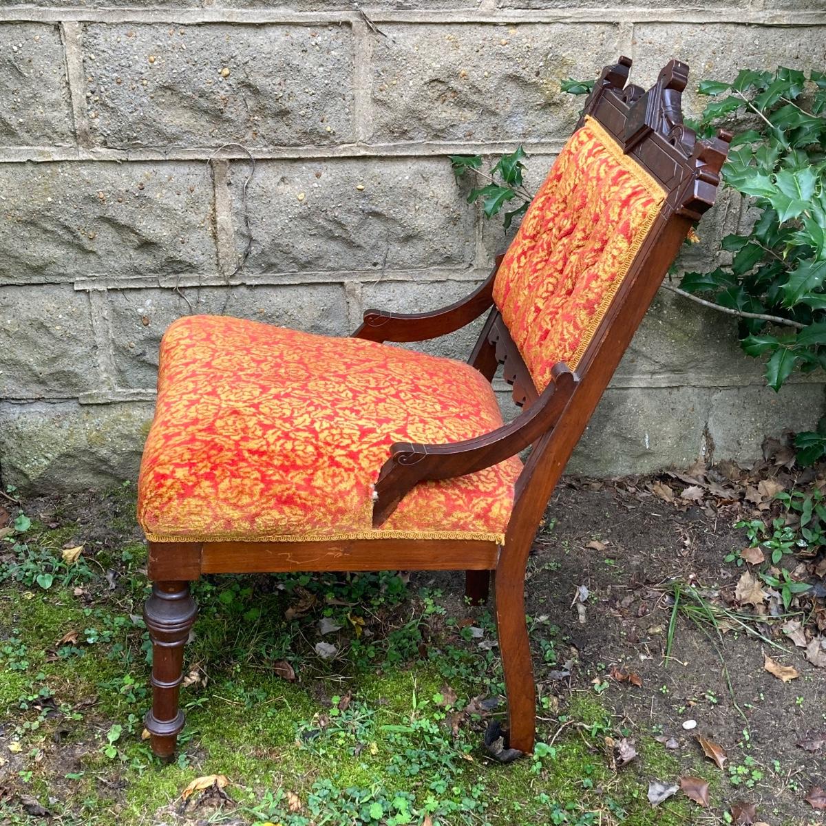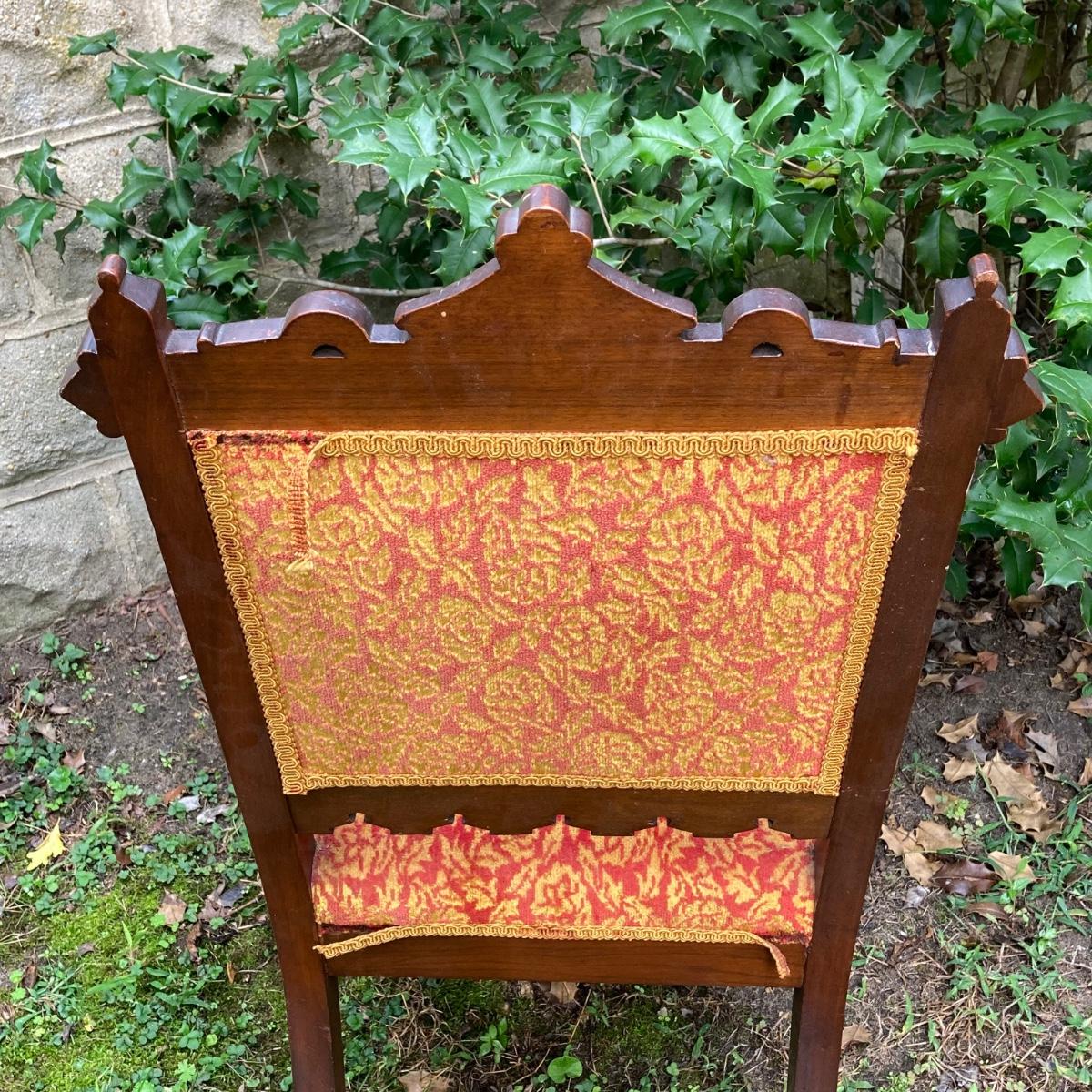 LOT 170: Carved and Upholstered Victorian Chair with Mirrored / Wood Corner Shelf