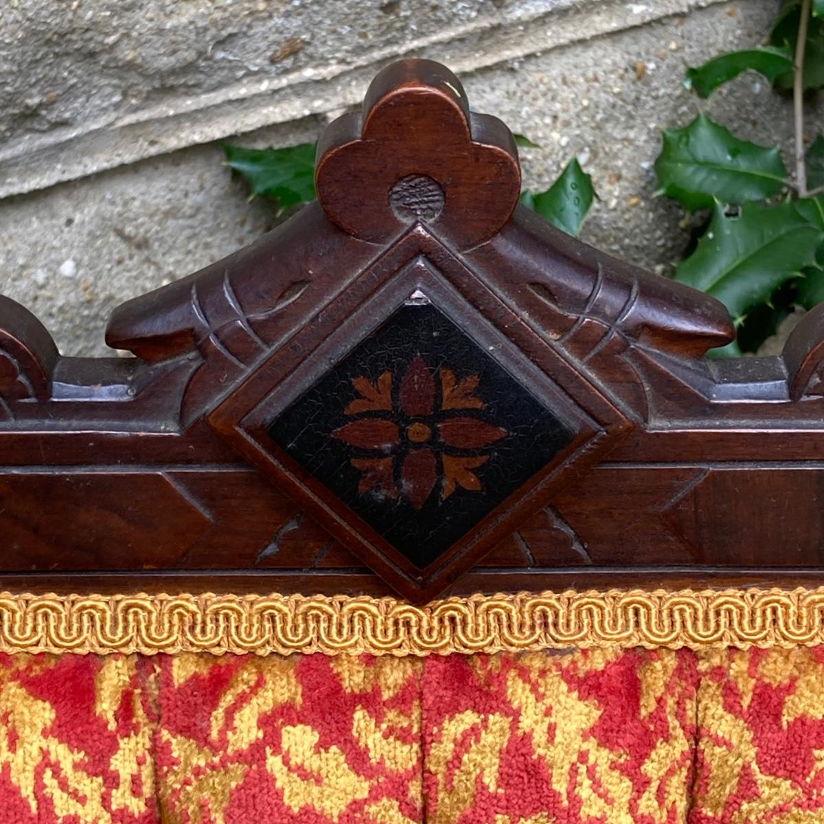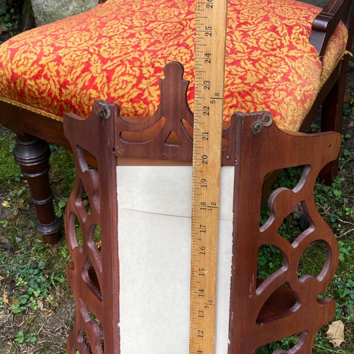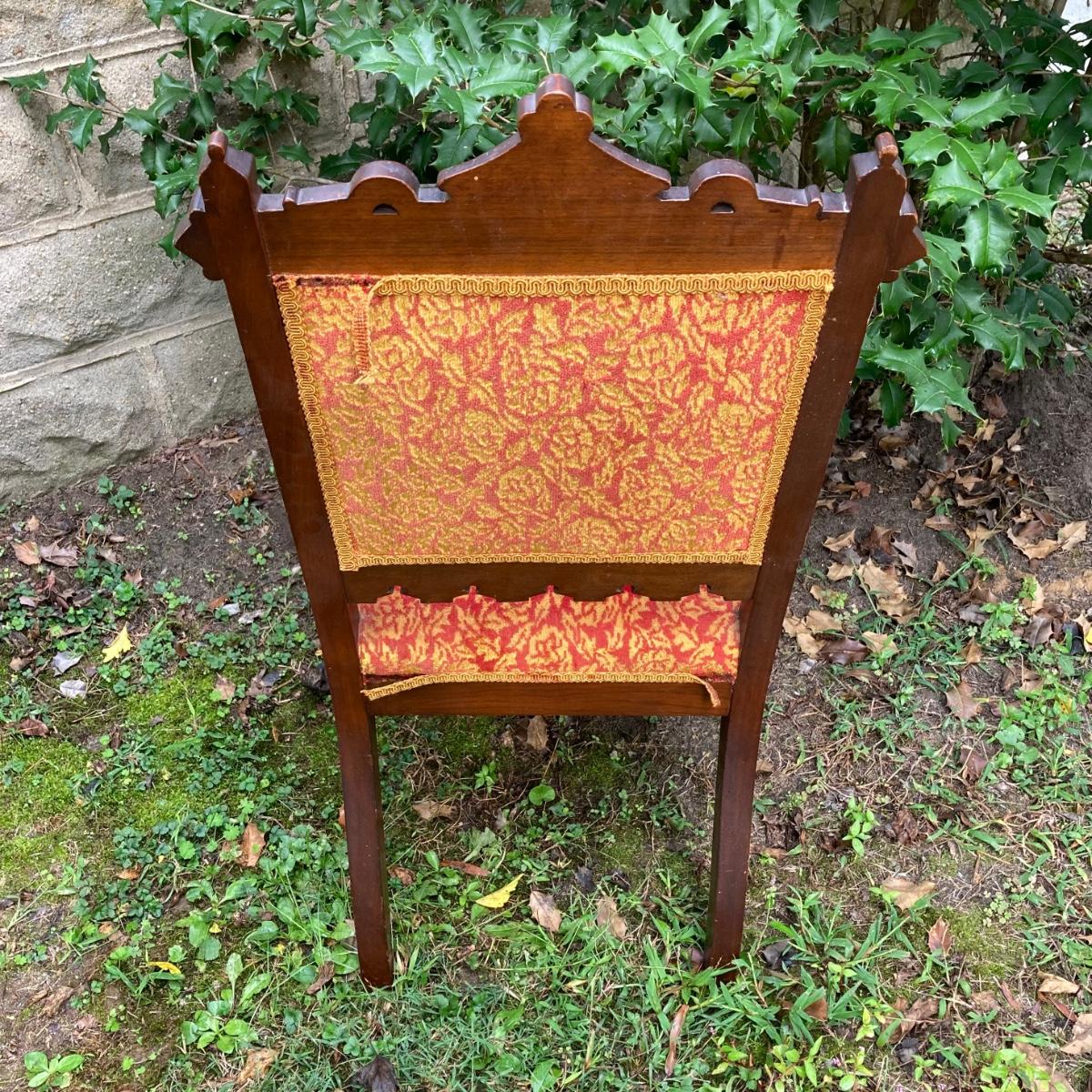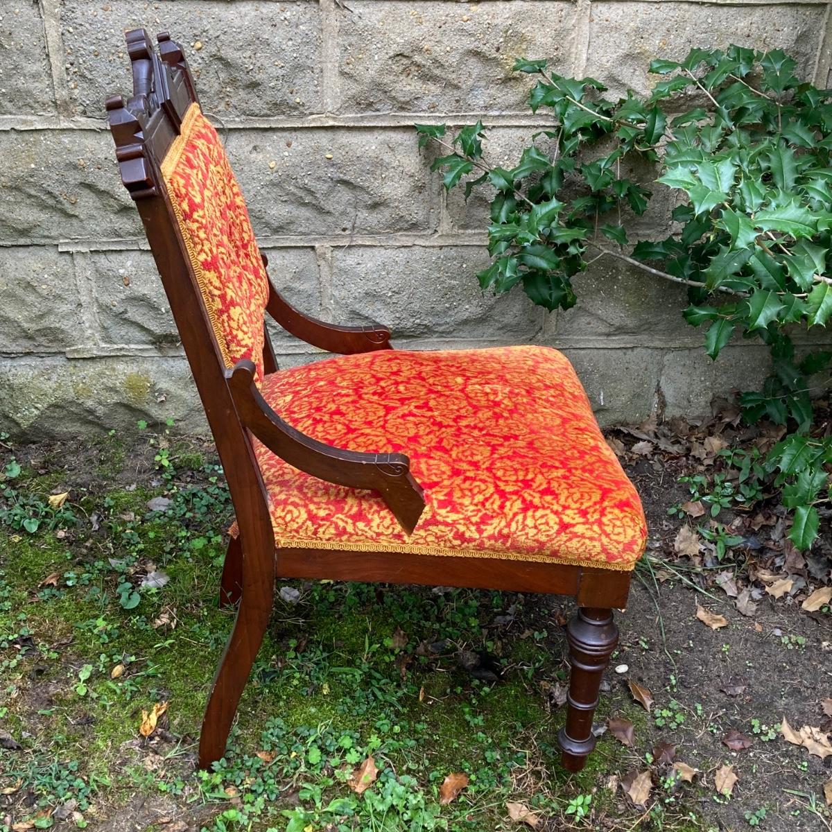LOT 170: Carved and Upholstered Victorian Chair with Mirrored / Wood Corner Shelf