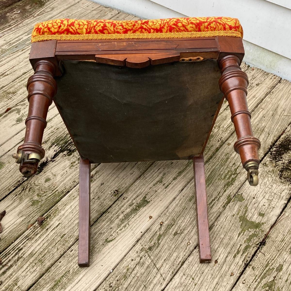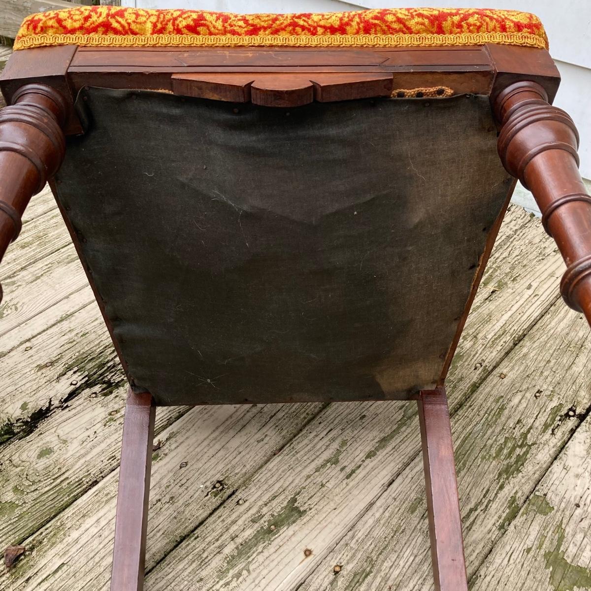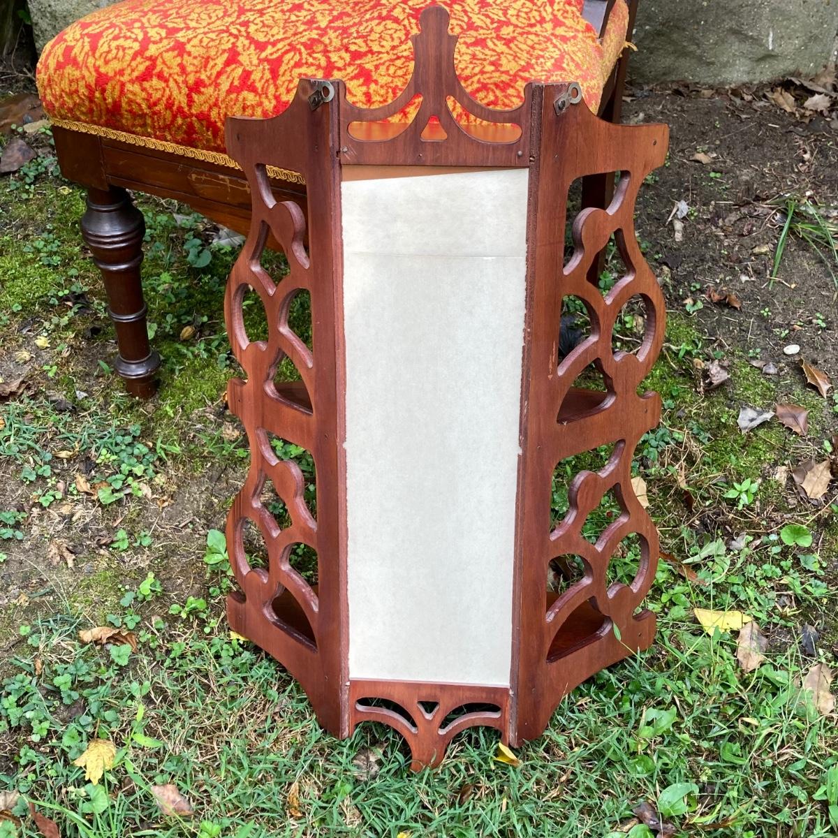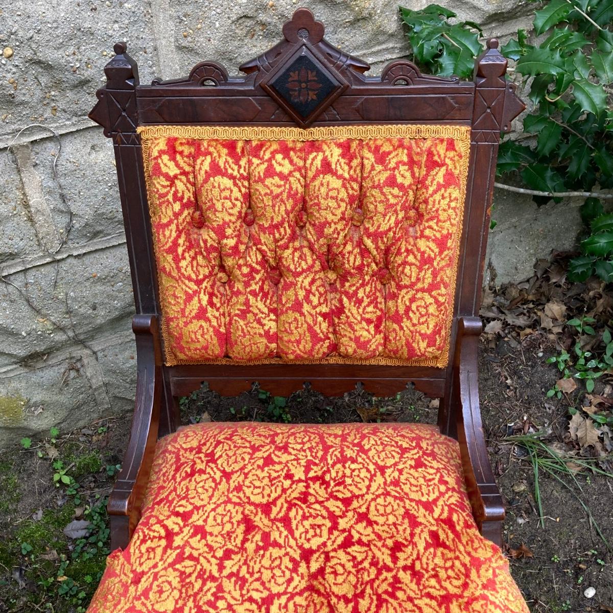 LOT 170: Carved and Upholstered Victorian Chair with Mirrored / Wood Corner Shelf