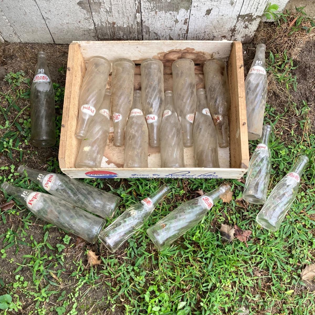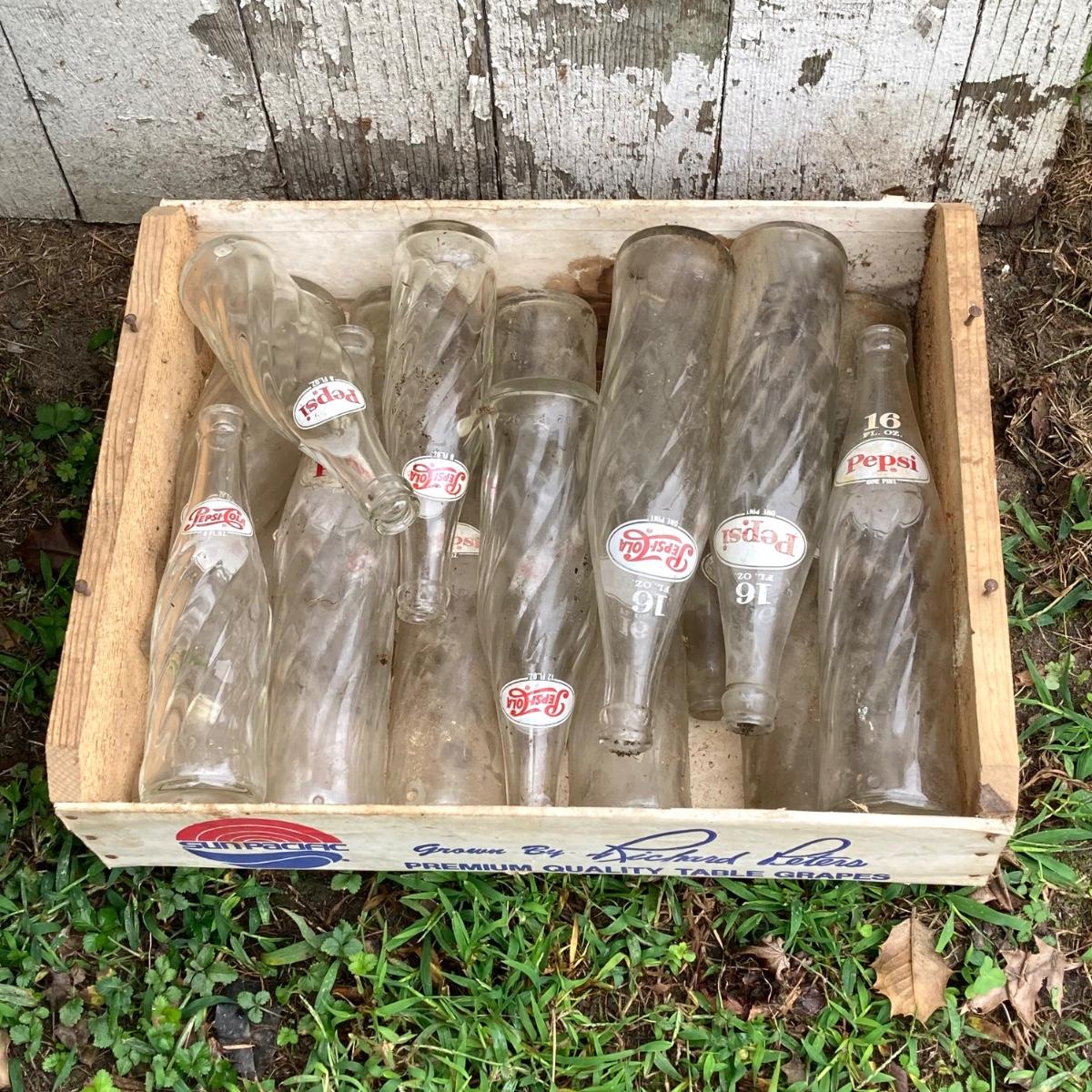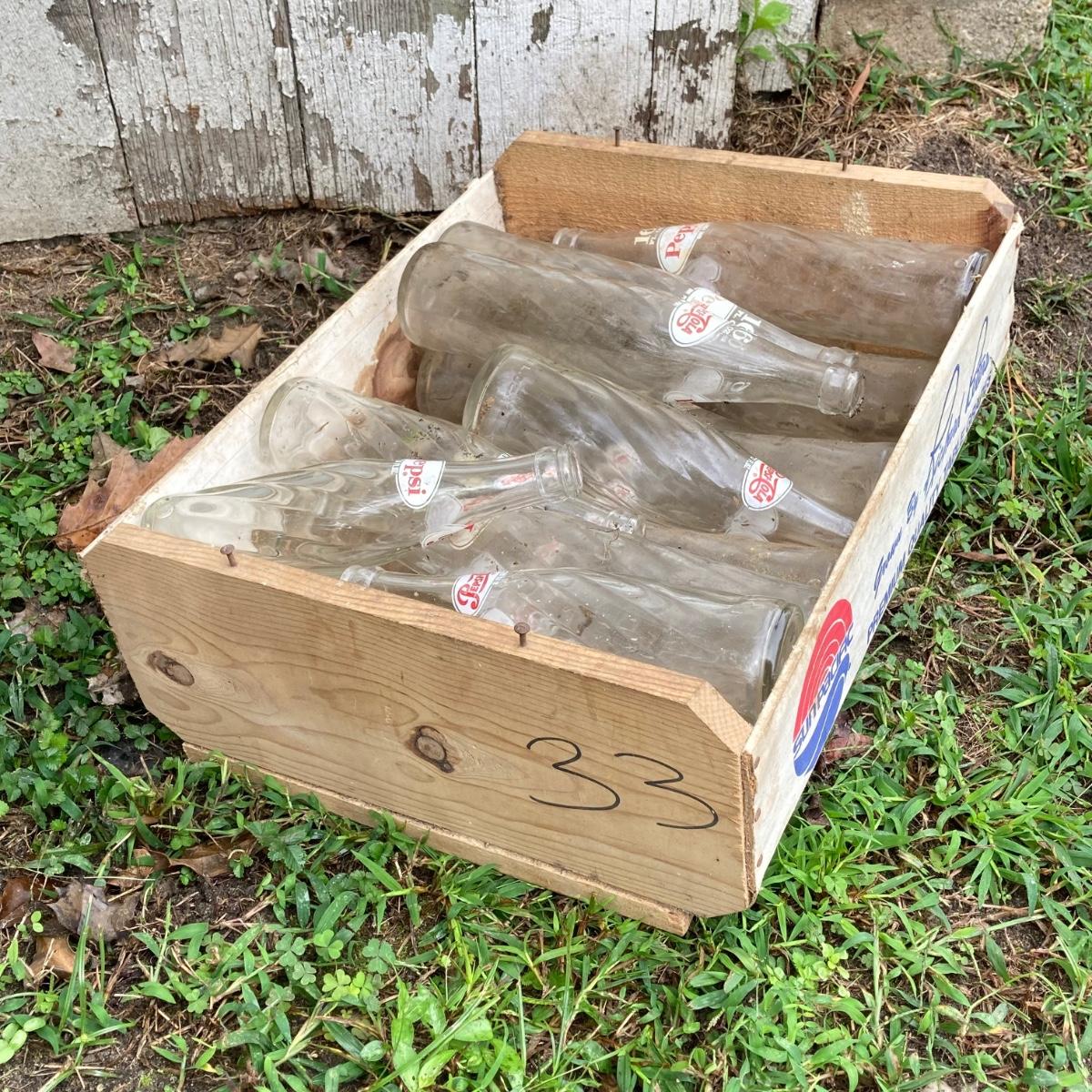 LOT 171: Wood Crate with Collection of Vintage Glass Pepsi Bottles