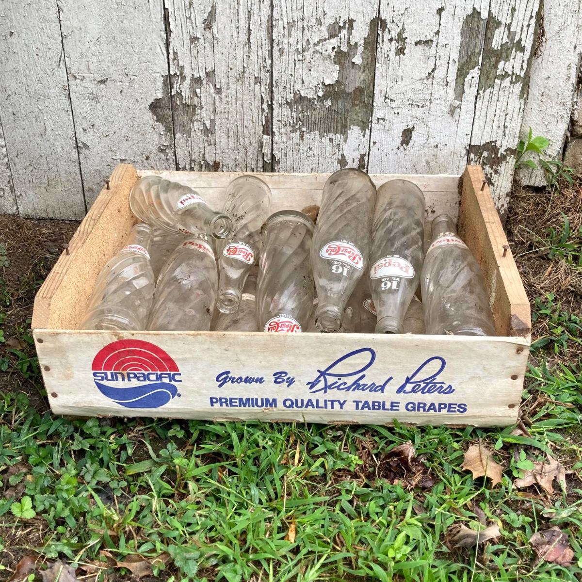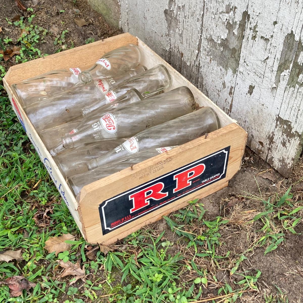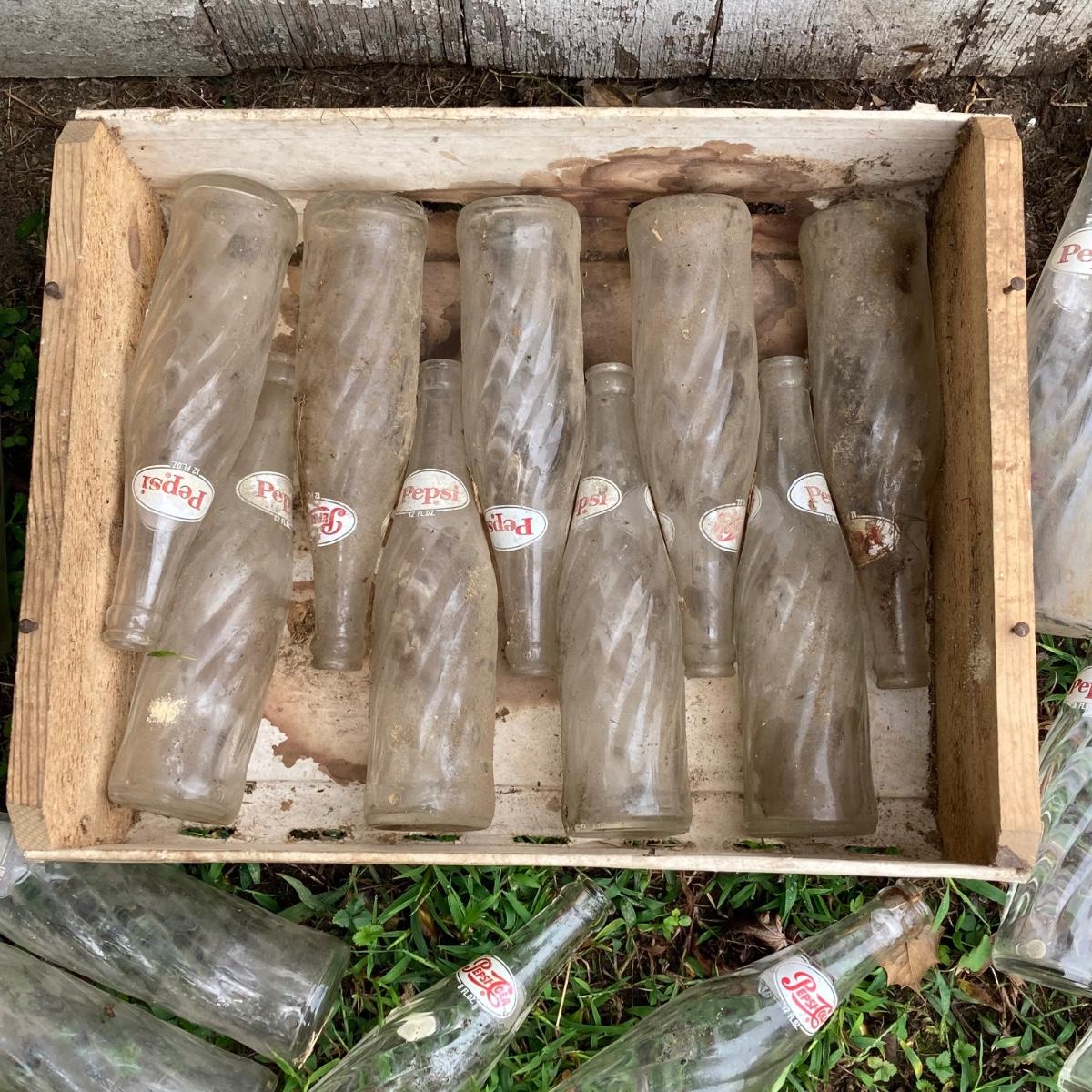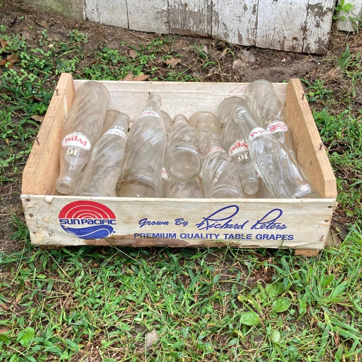 LOT 171: Wood Crate with Collection of Vintage Glass Pepsi Bottles