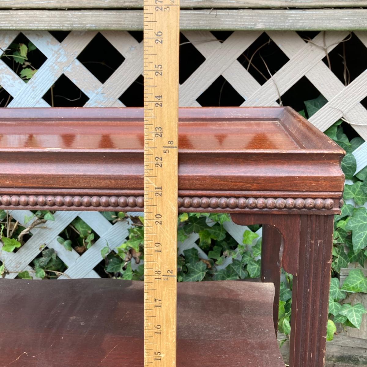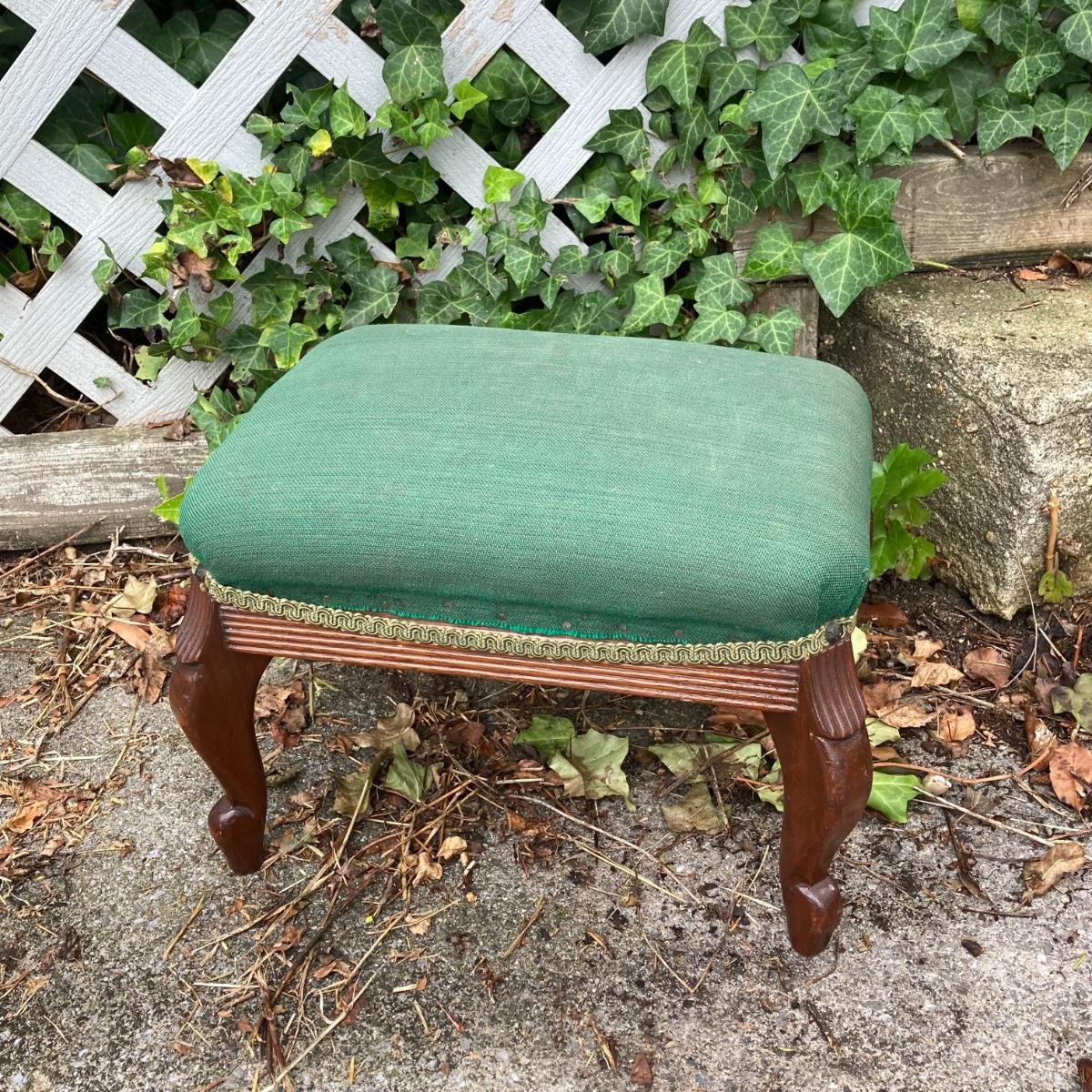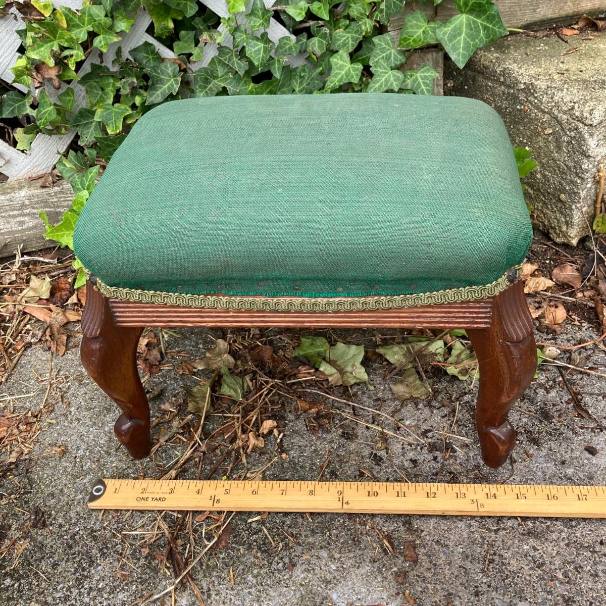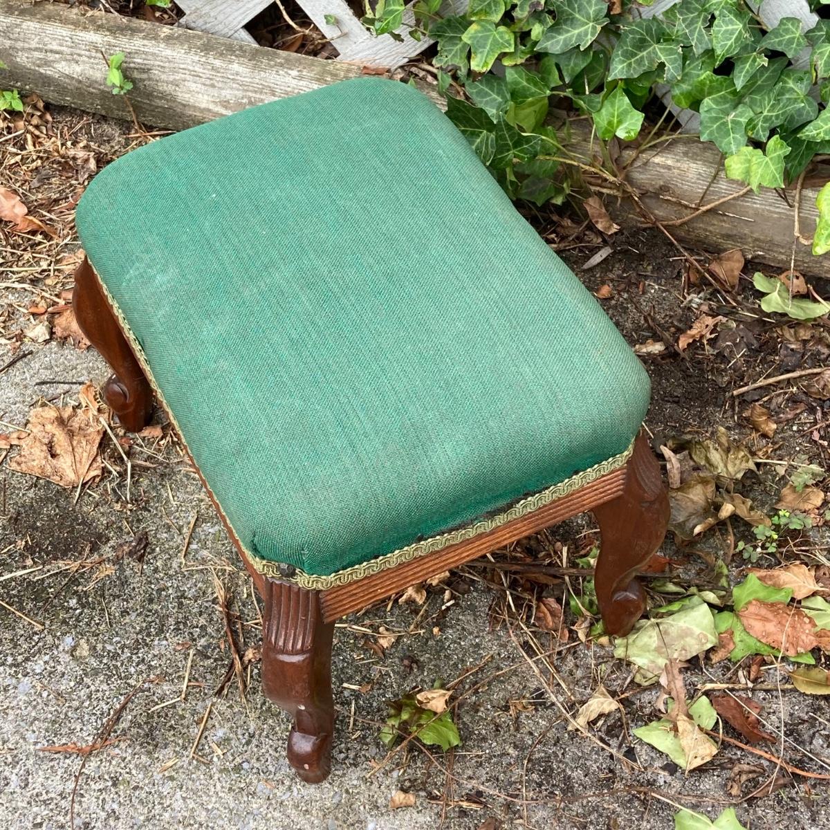 LOT 173: Vintage Ornate Wood Table with Foot Stool and Accent Pillow