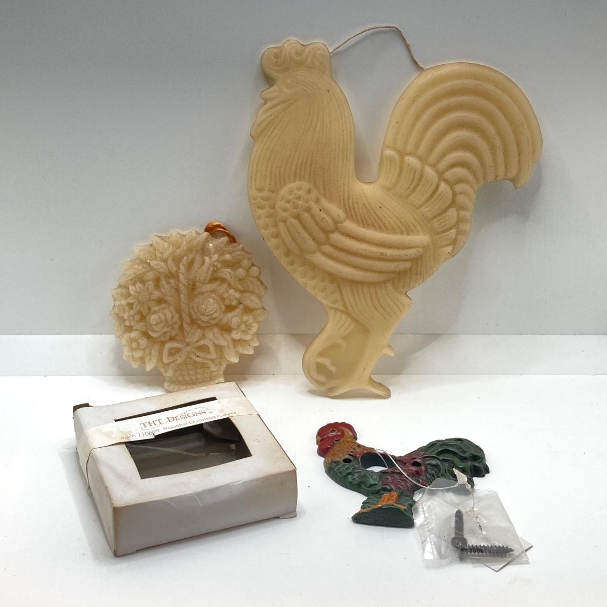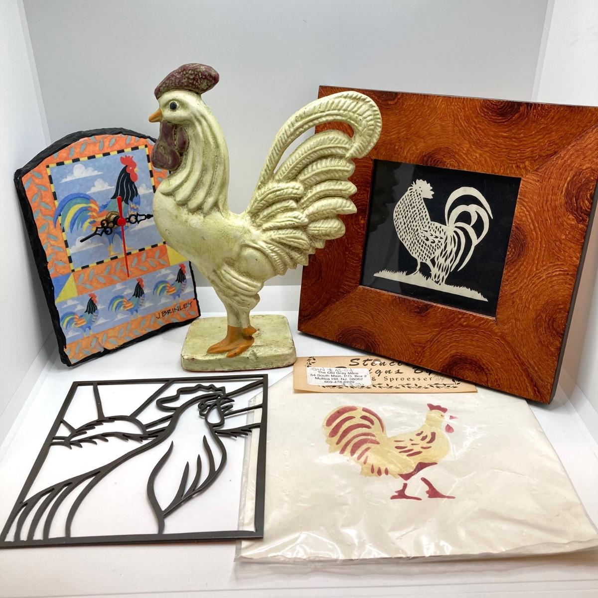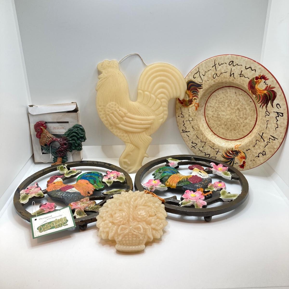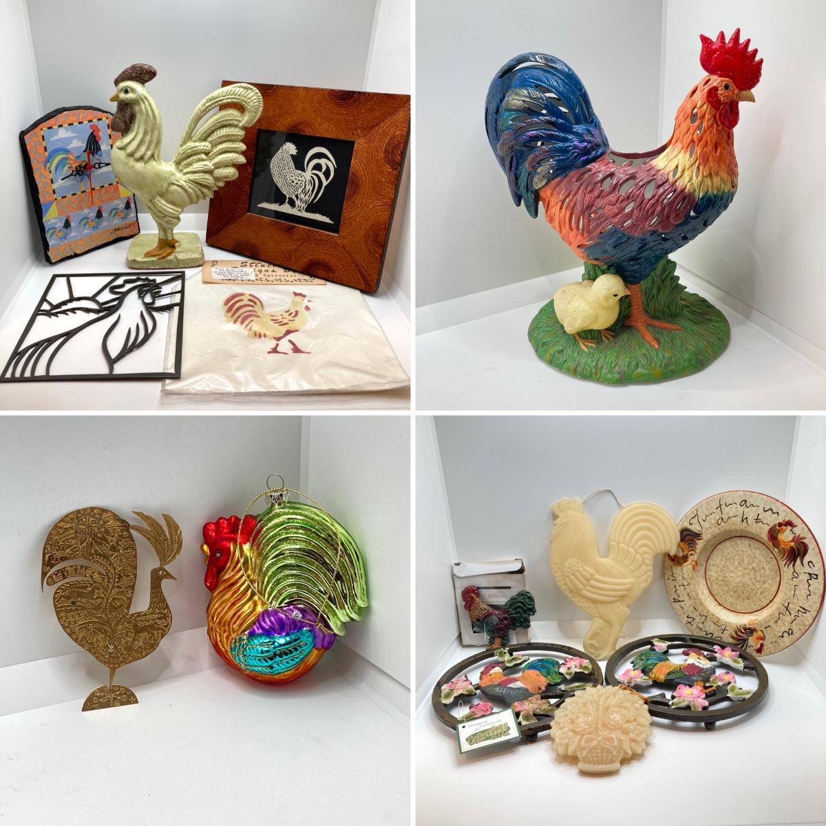 LOT 182: Large Decorative Rooster / Hen Collection - Cast Iron, Party-Lite and More