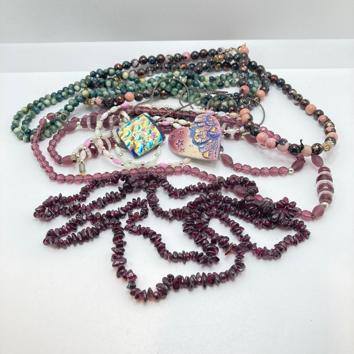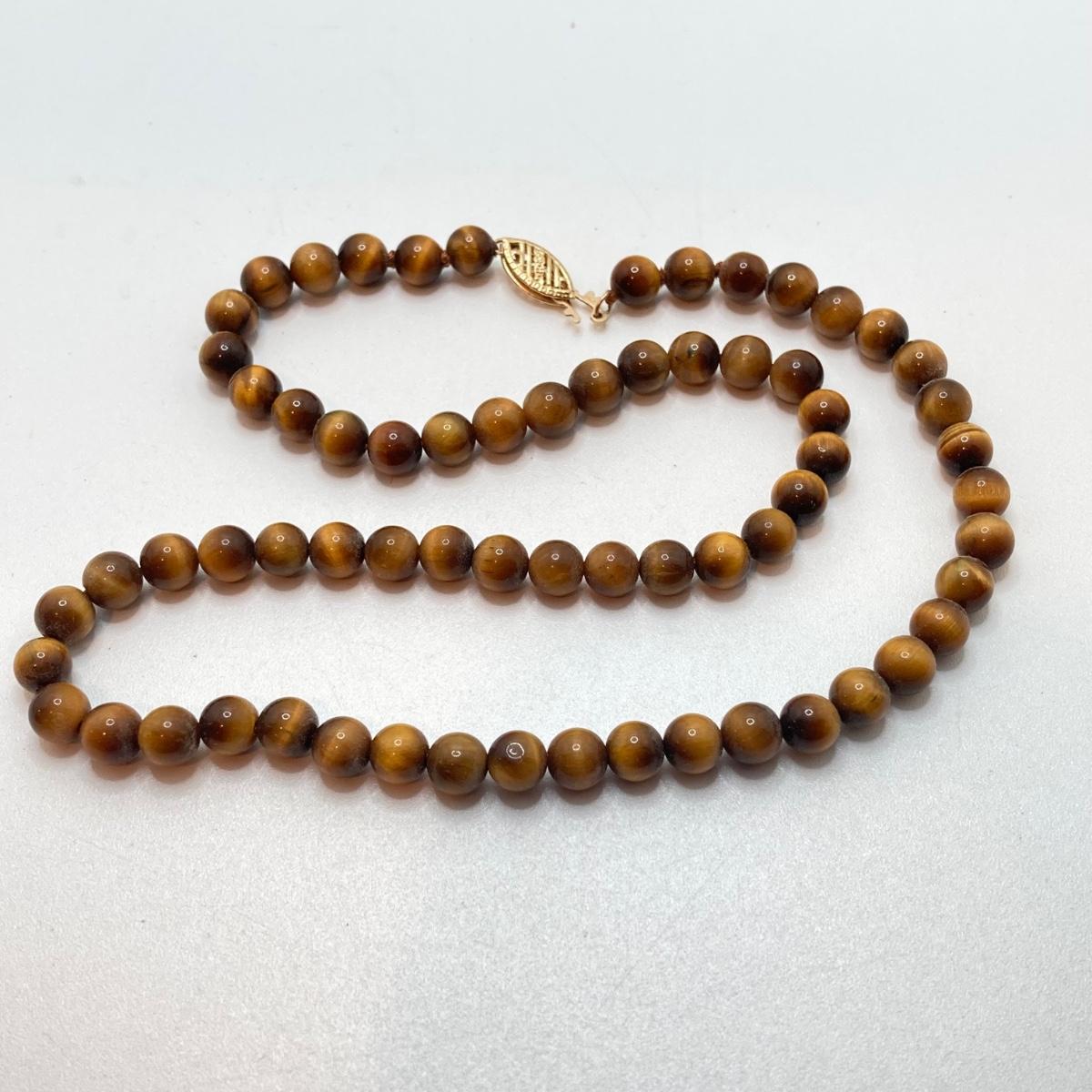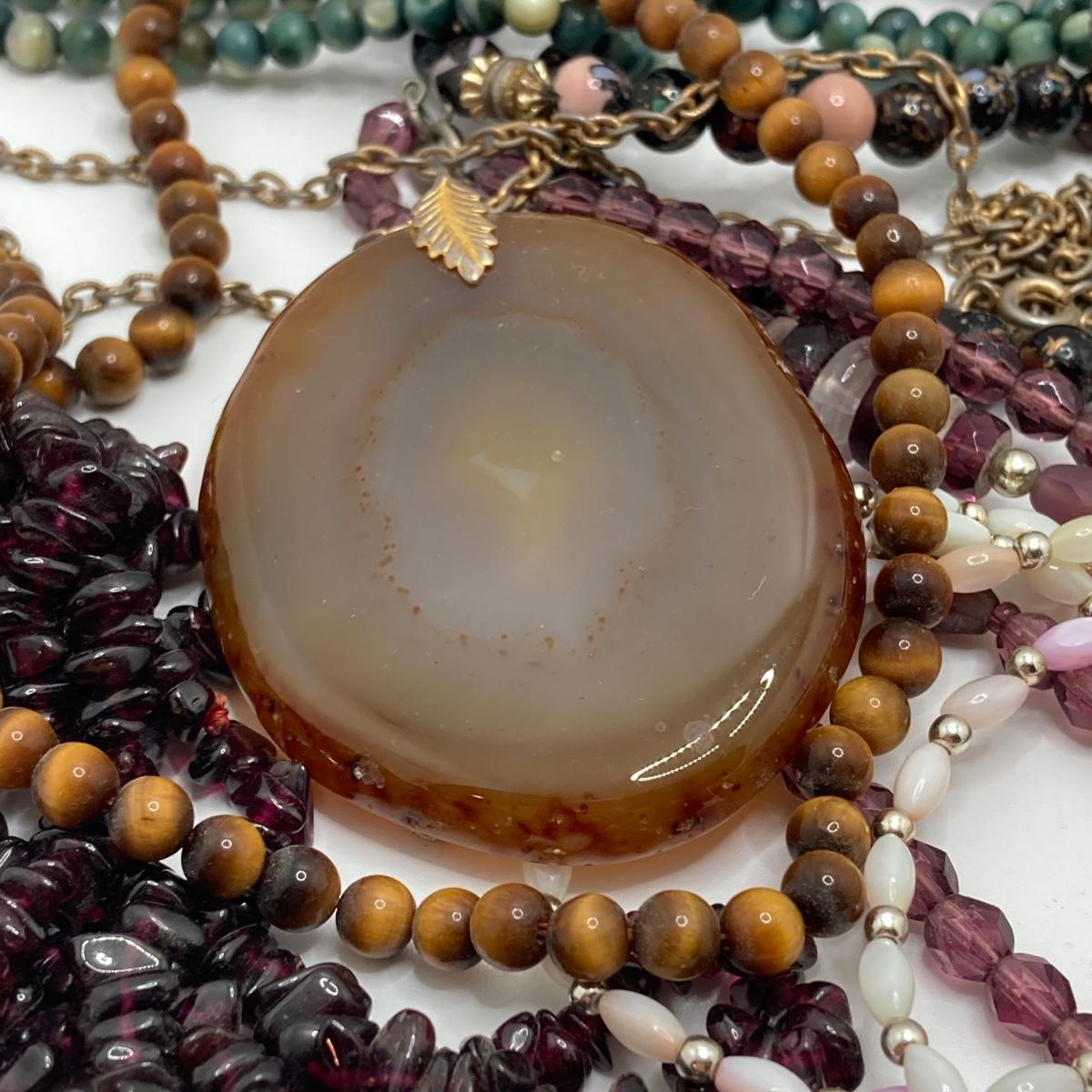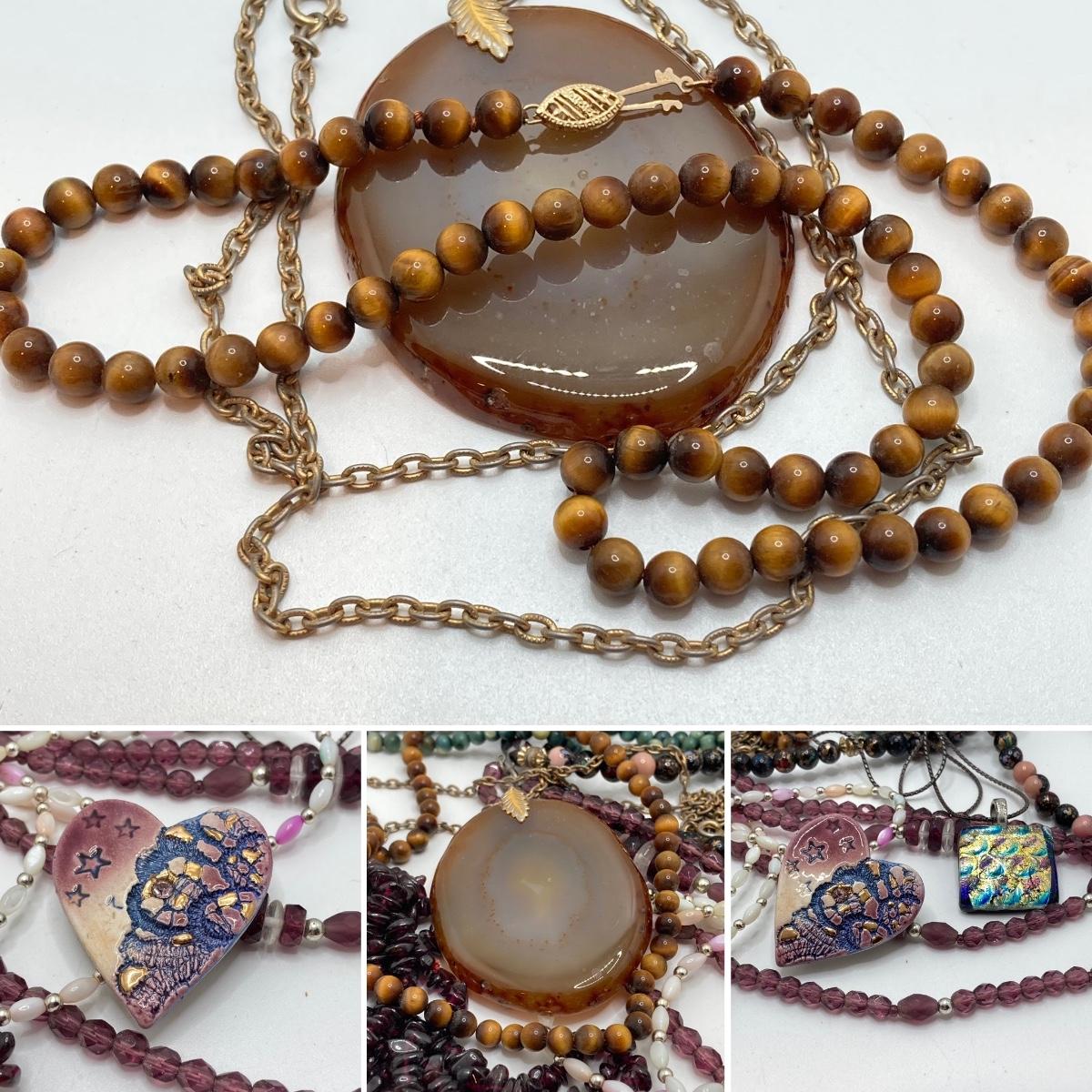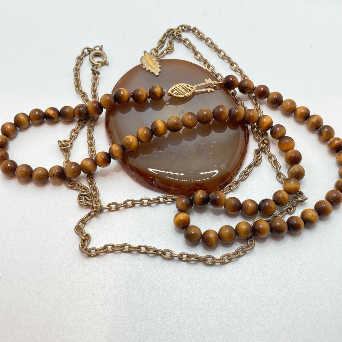 LOT 186: Vintage Pendant and Beaded Jewelry - Tiger's Eye Necklace with 14KT Clasp and 925 Sterling Included