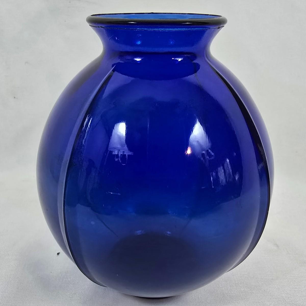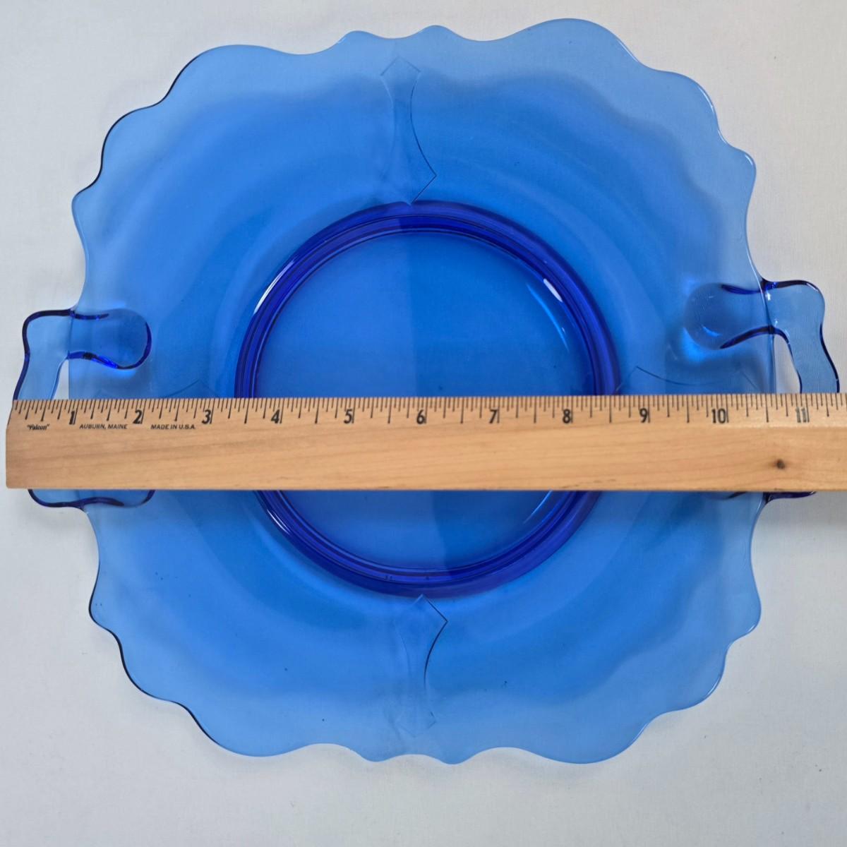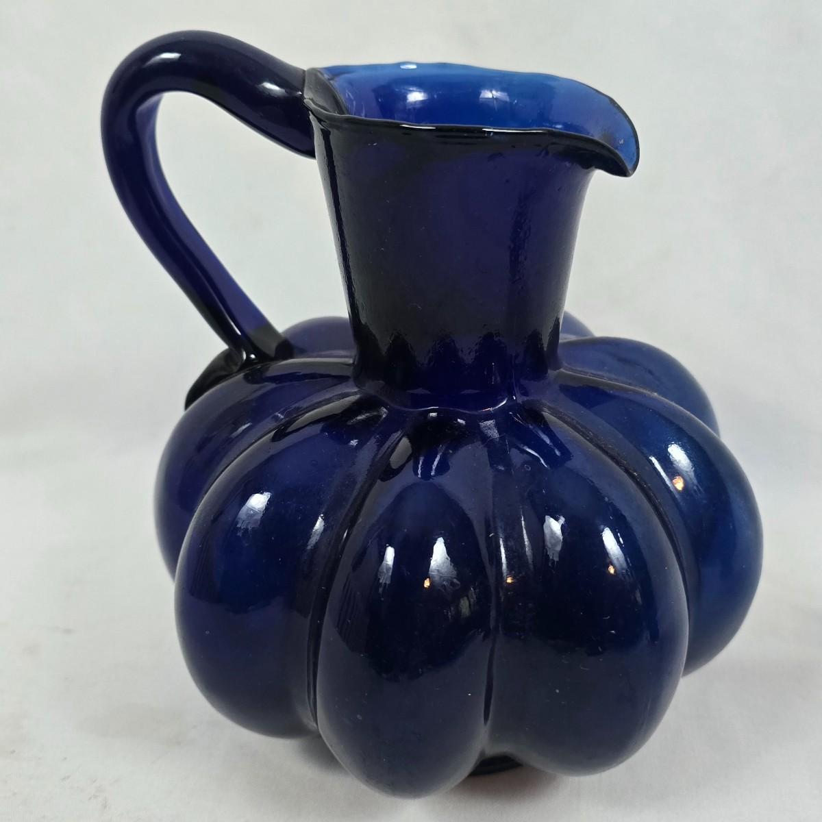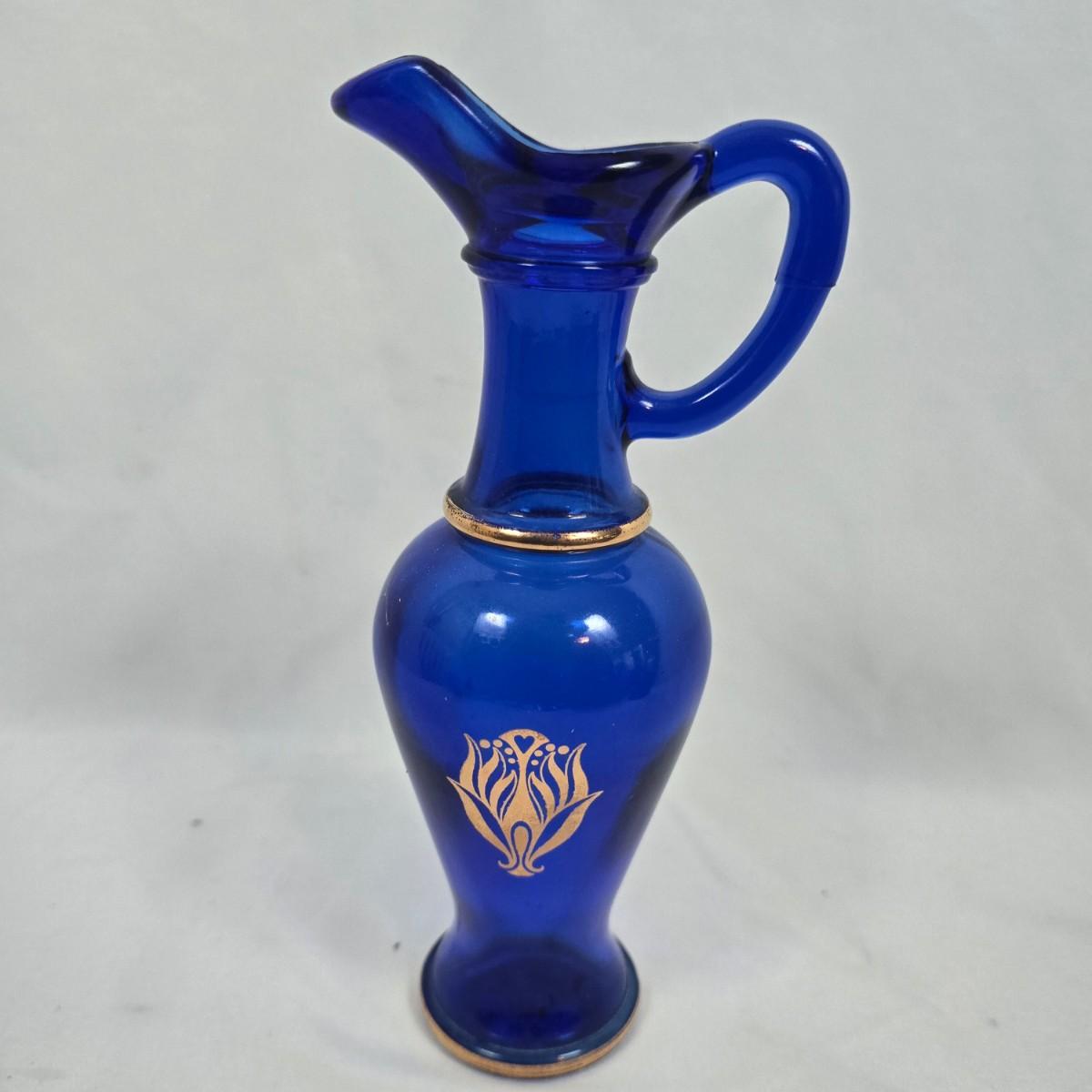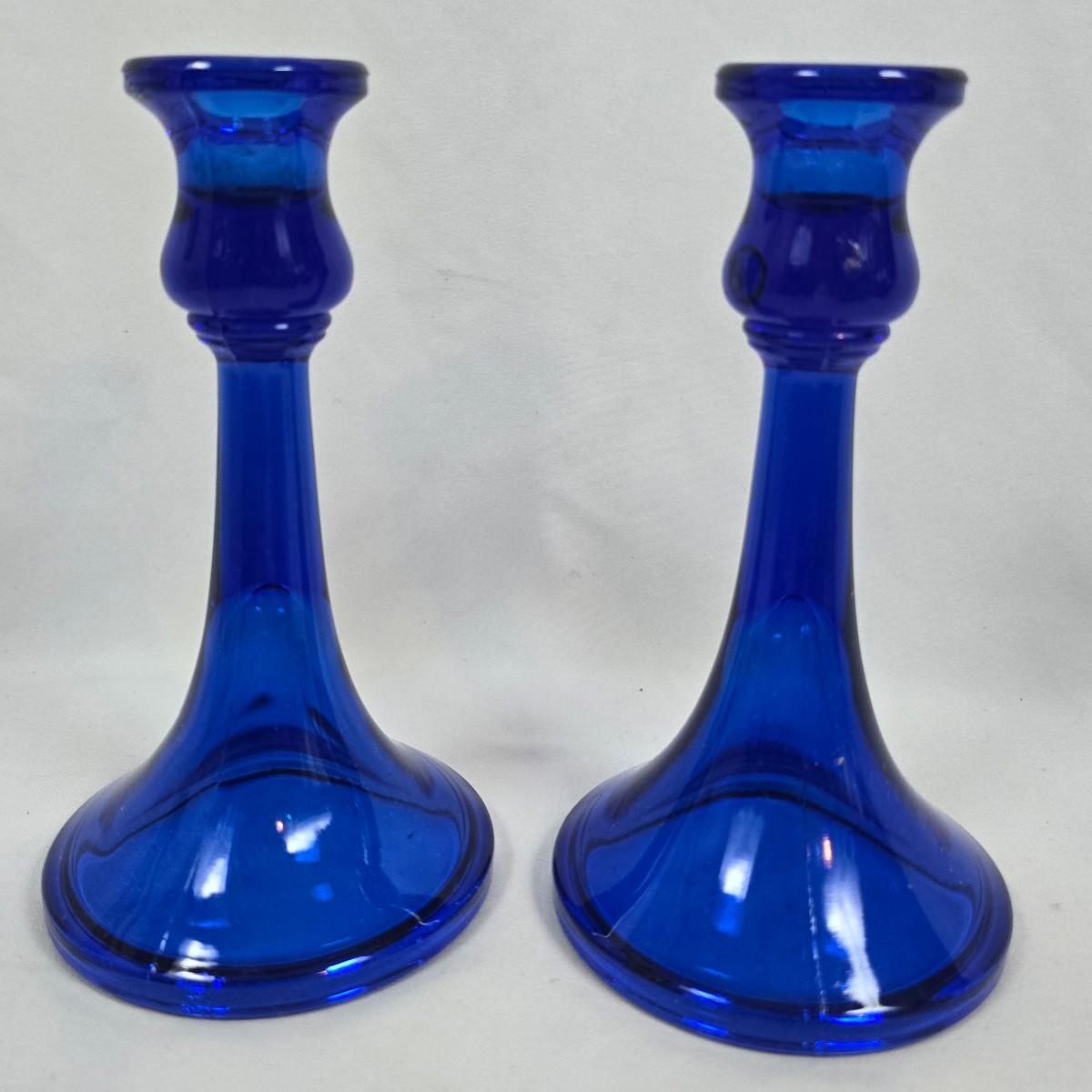 LOT 191: Colbalt Blue Glass Collection: Pitcher, Candlesticks, Plate and Vases