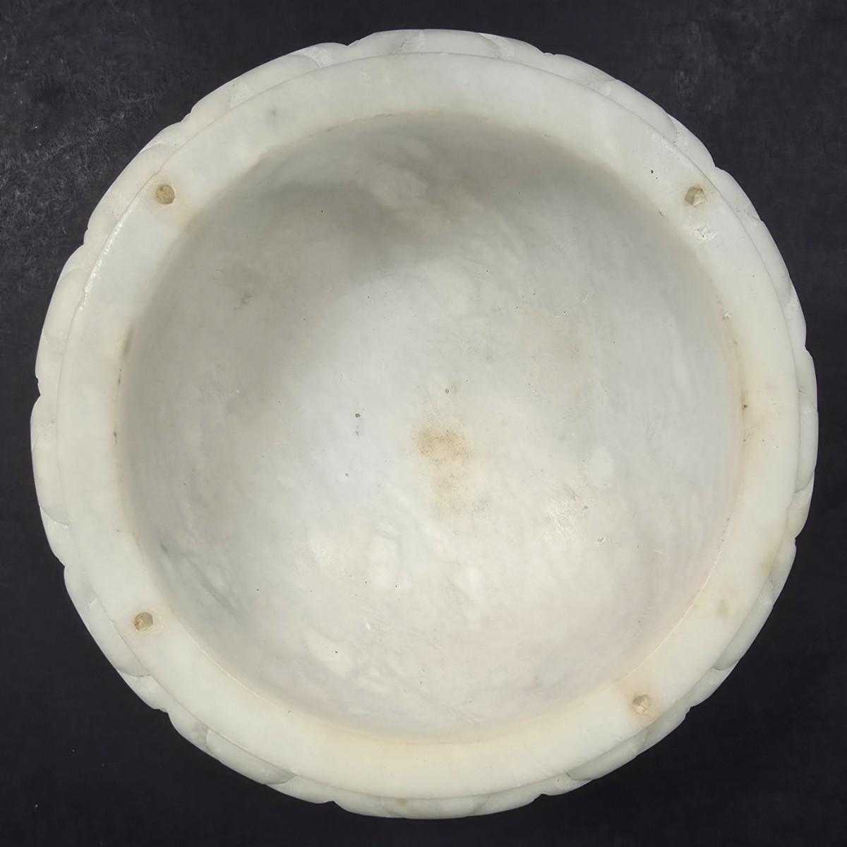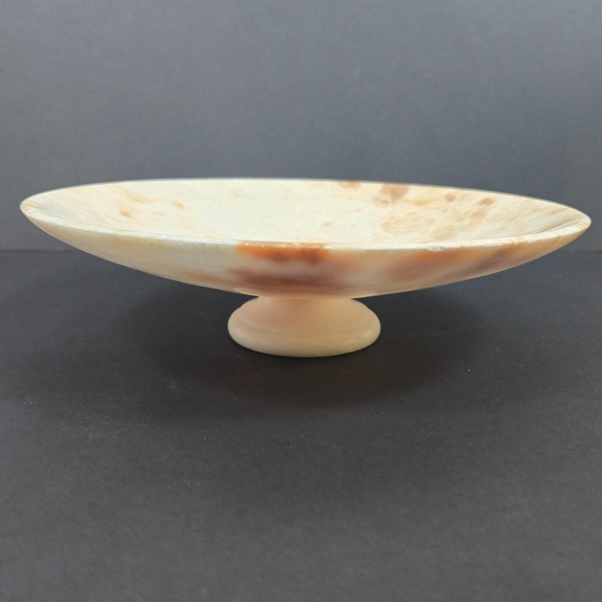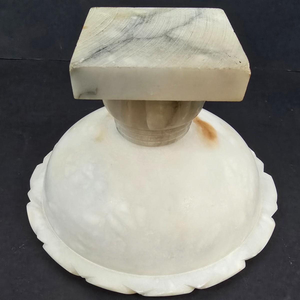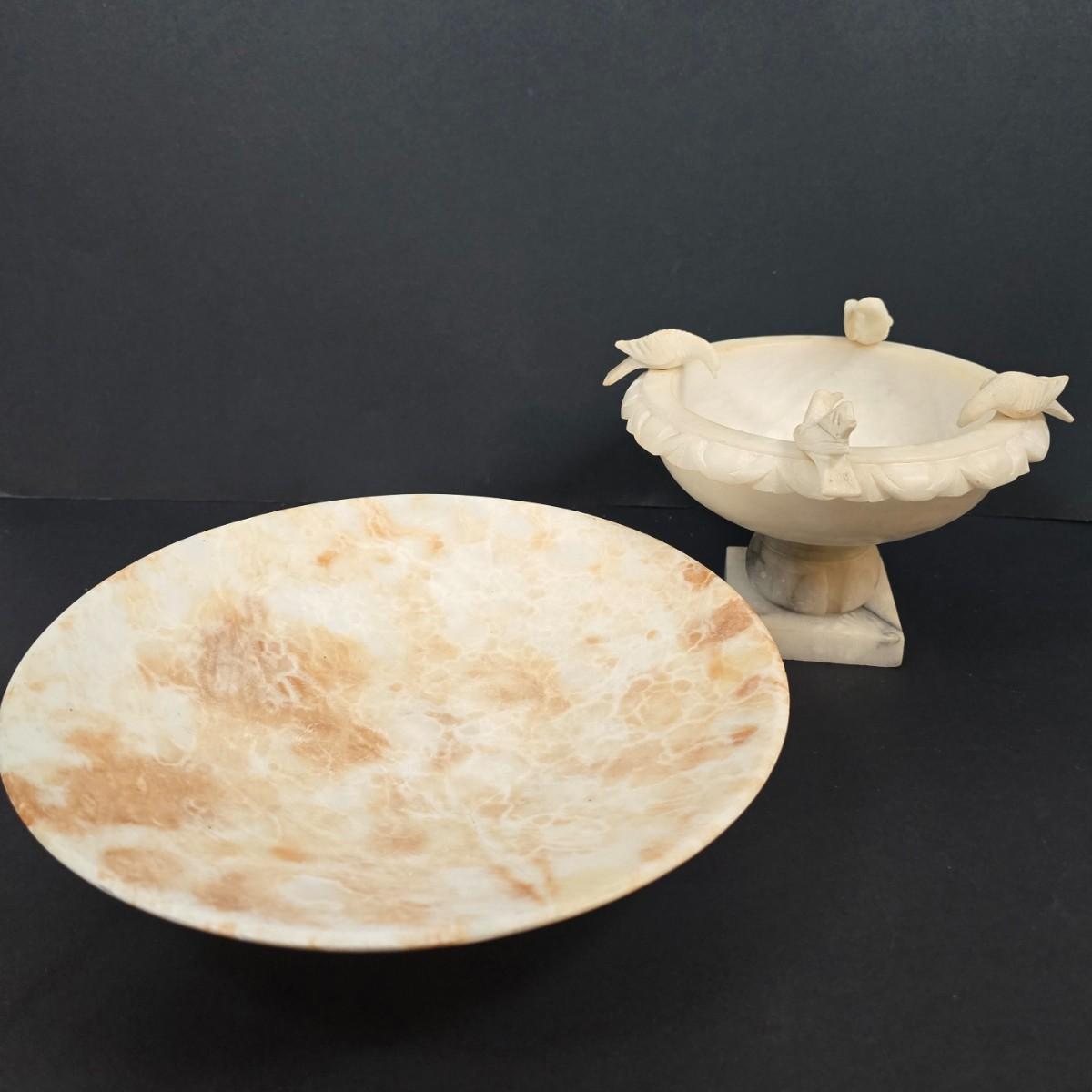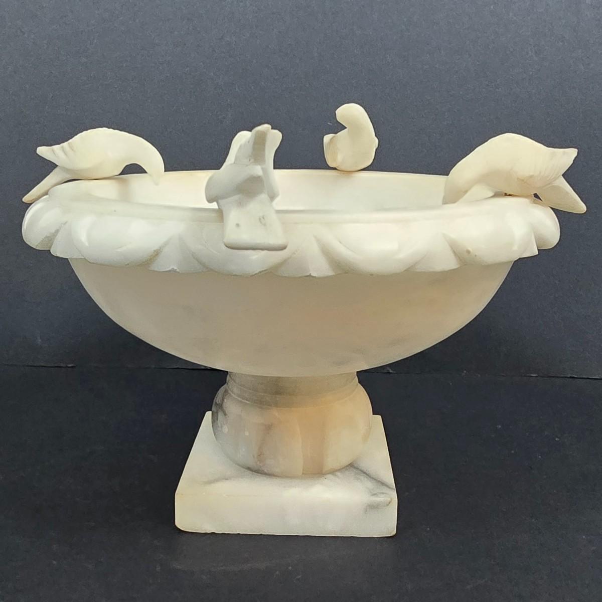 LOT 193: Vintage Alabaster Bird Bath/Holy Water Bowl and Alabaster Compote