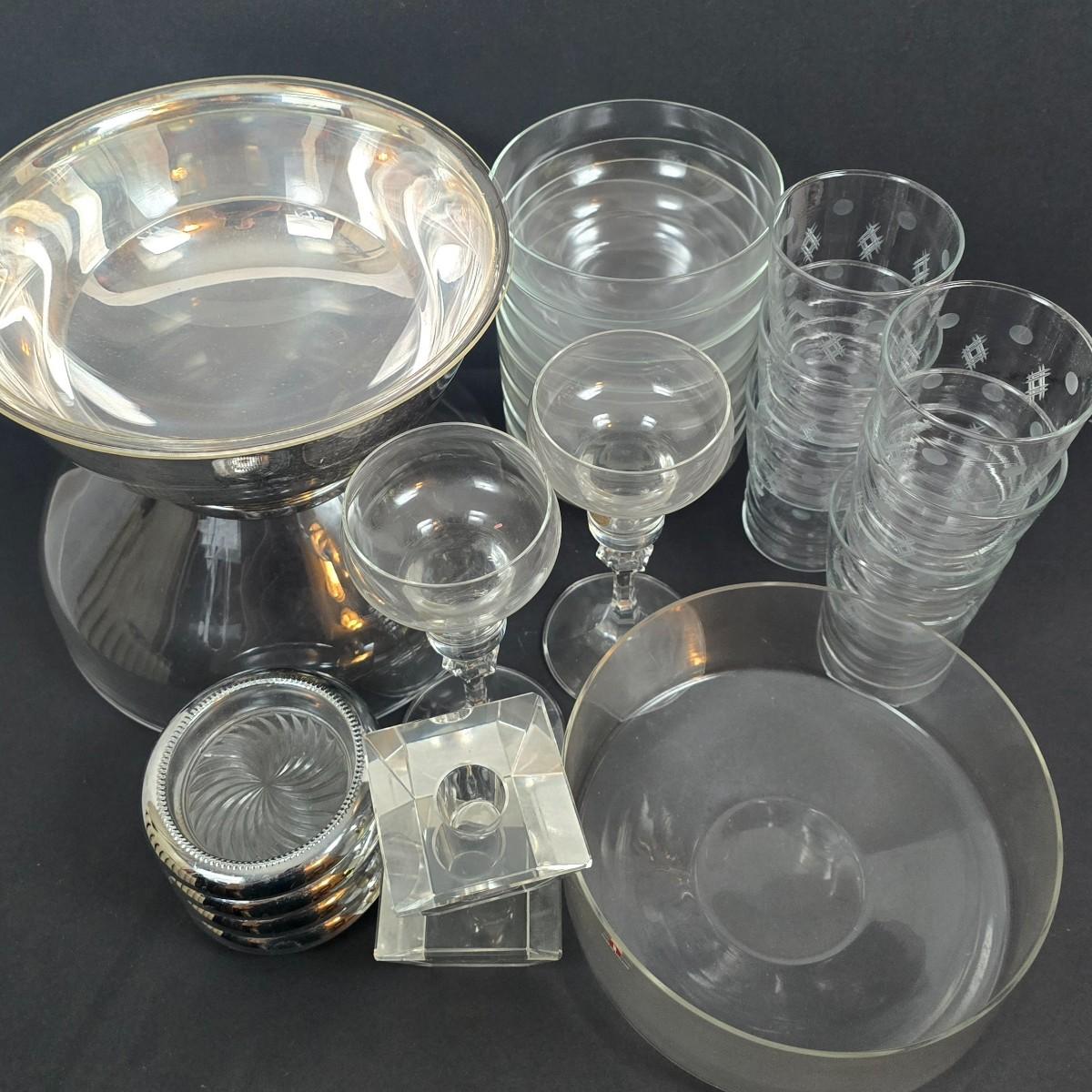LOT 194: Newport by Gorham Silver Plate Bowl, German Crystal Candlesticks, Cut Crystal Candle Holders & More