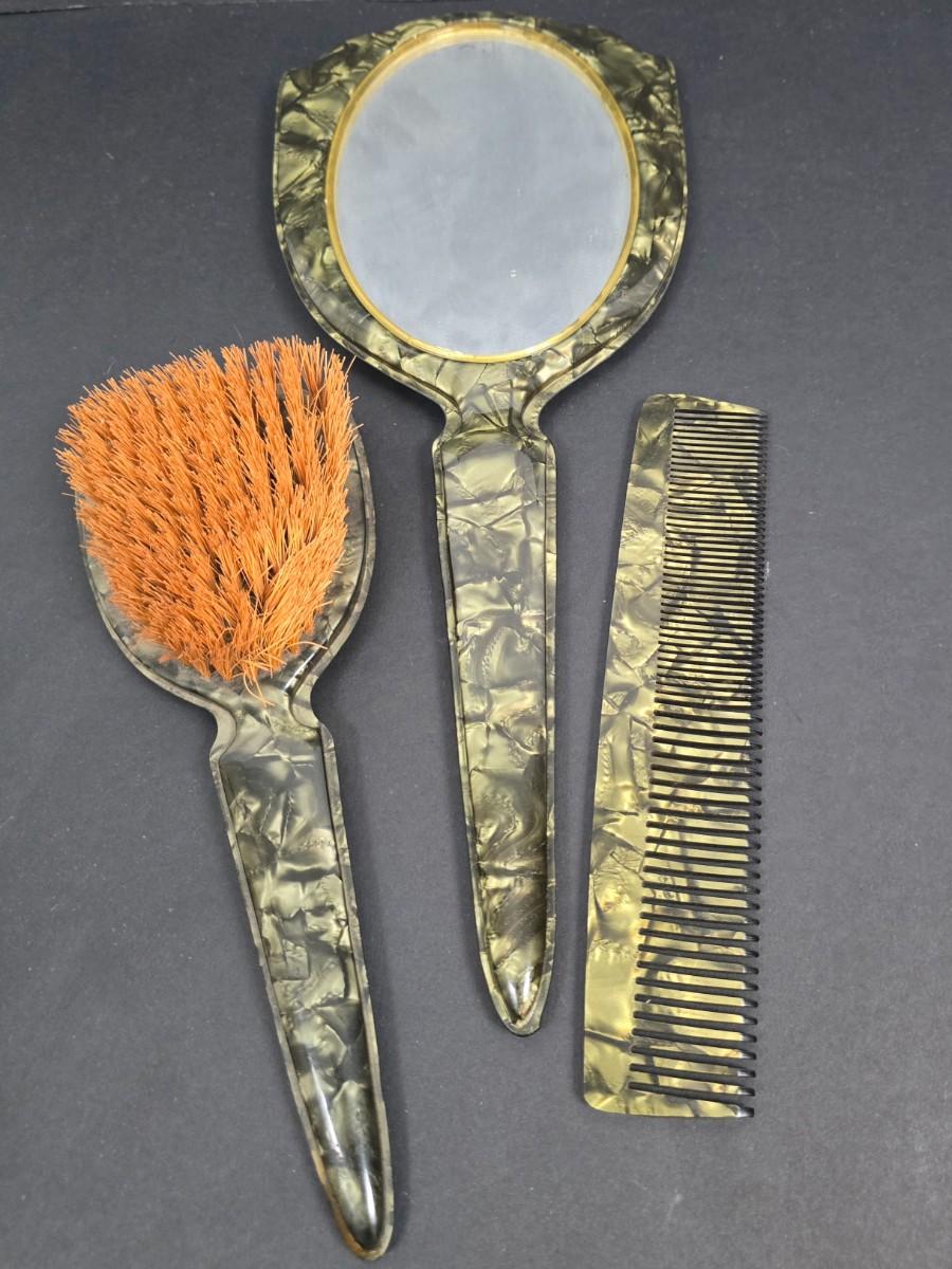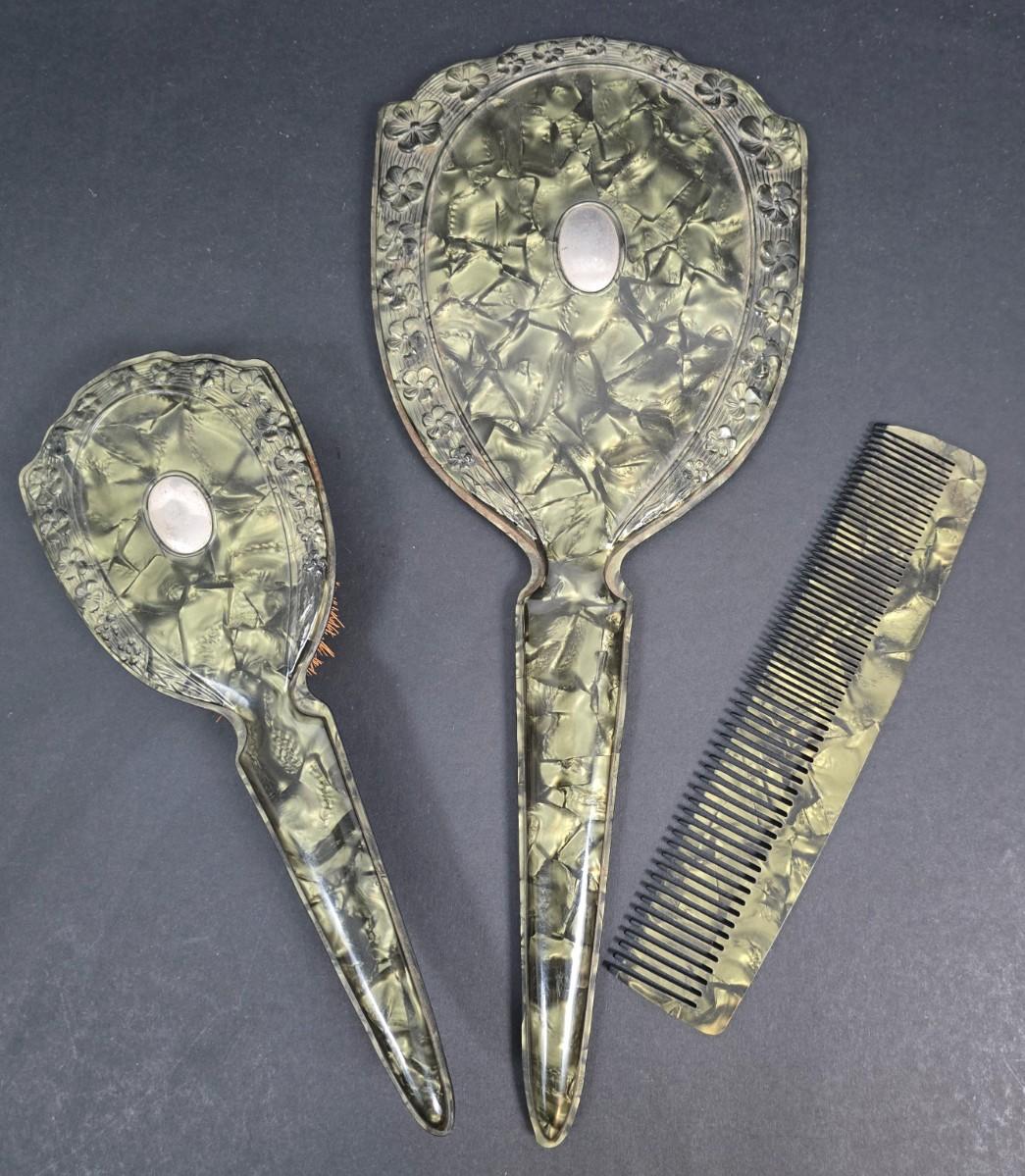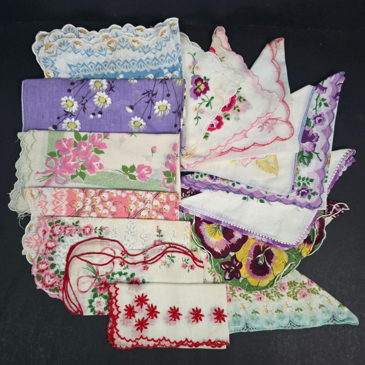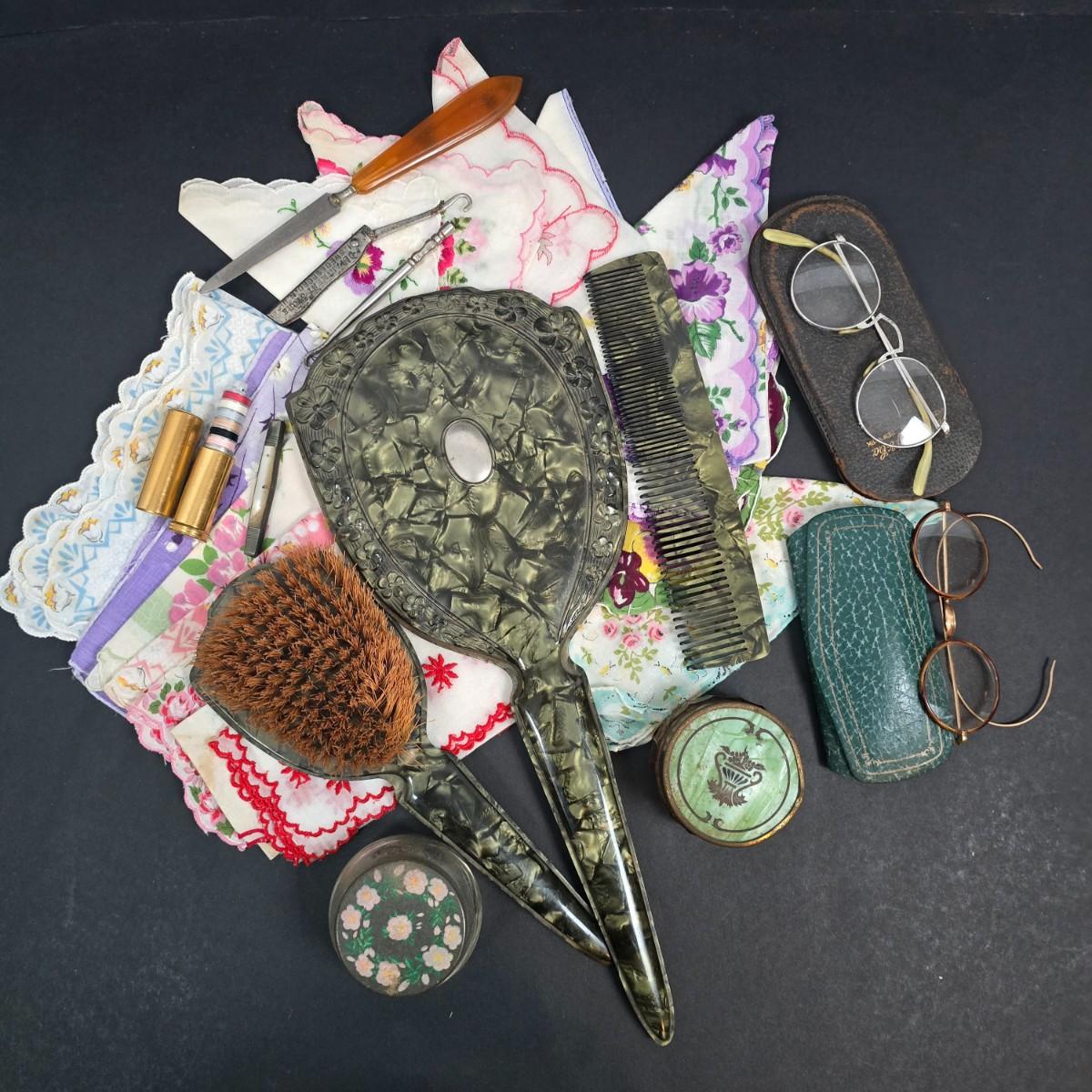 LOT 199: Ladies' Vanity Set with Vintage Handkerchiefs