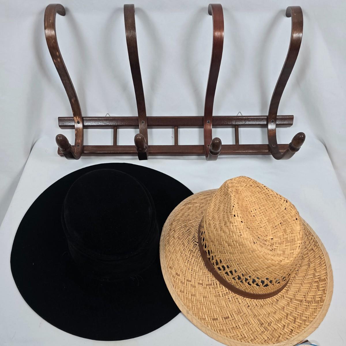 LOT 201: Hat Rack with Black Velvet and Straw Hats
